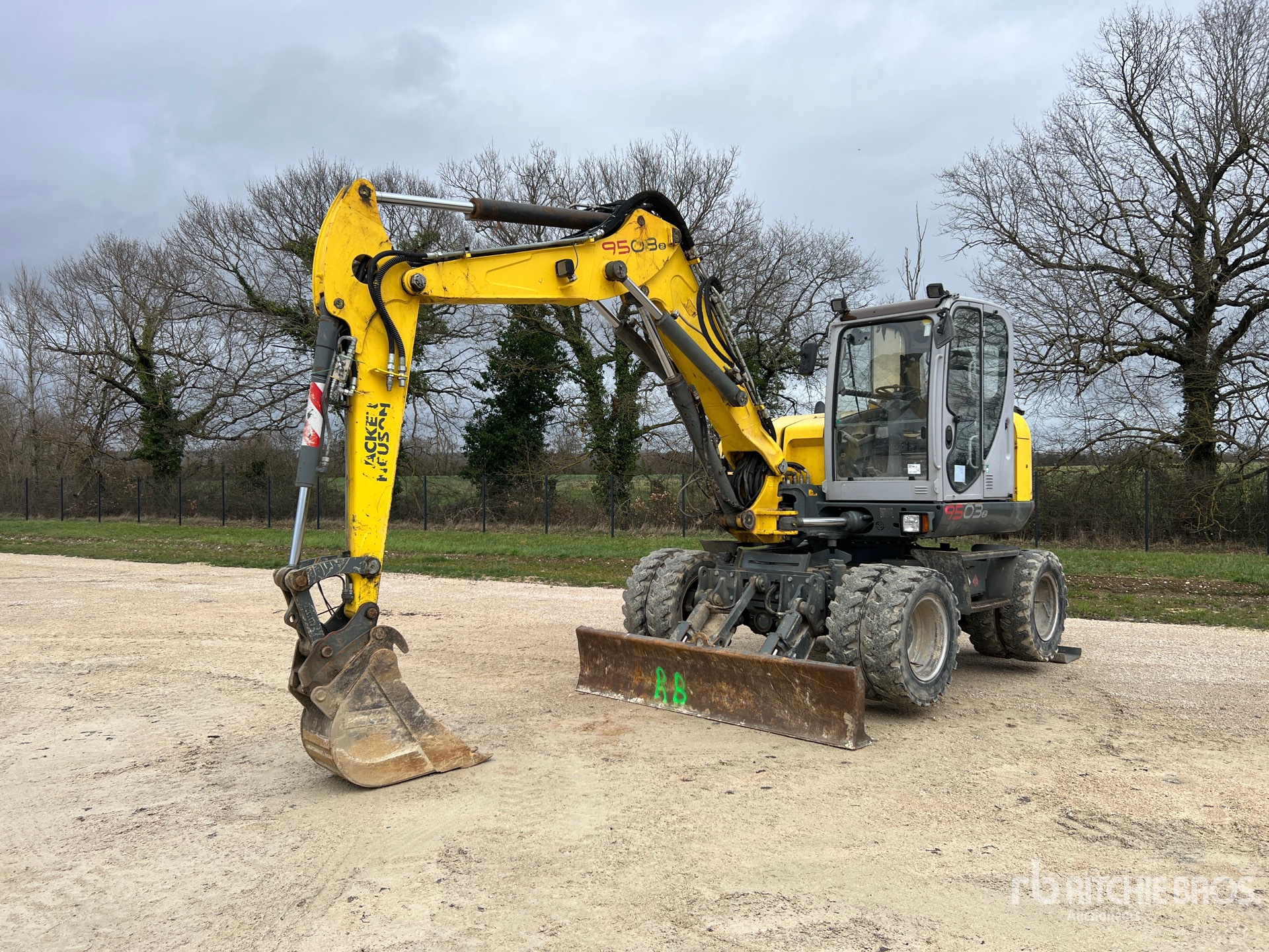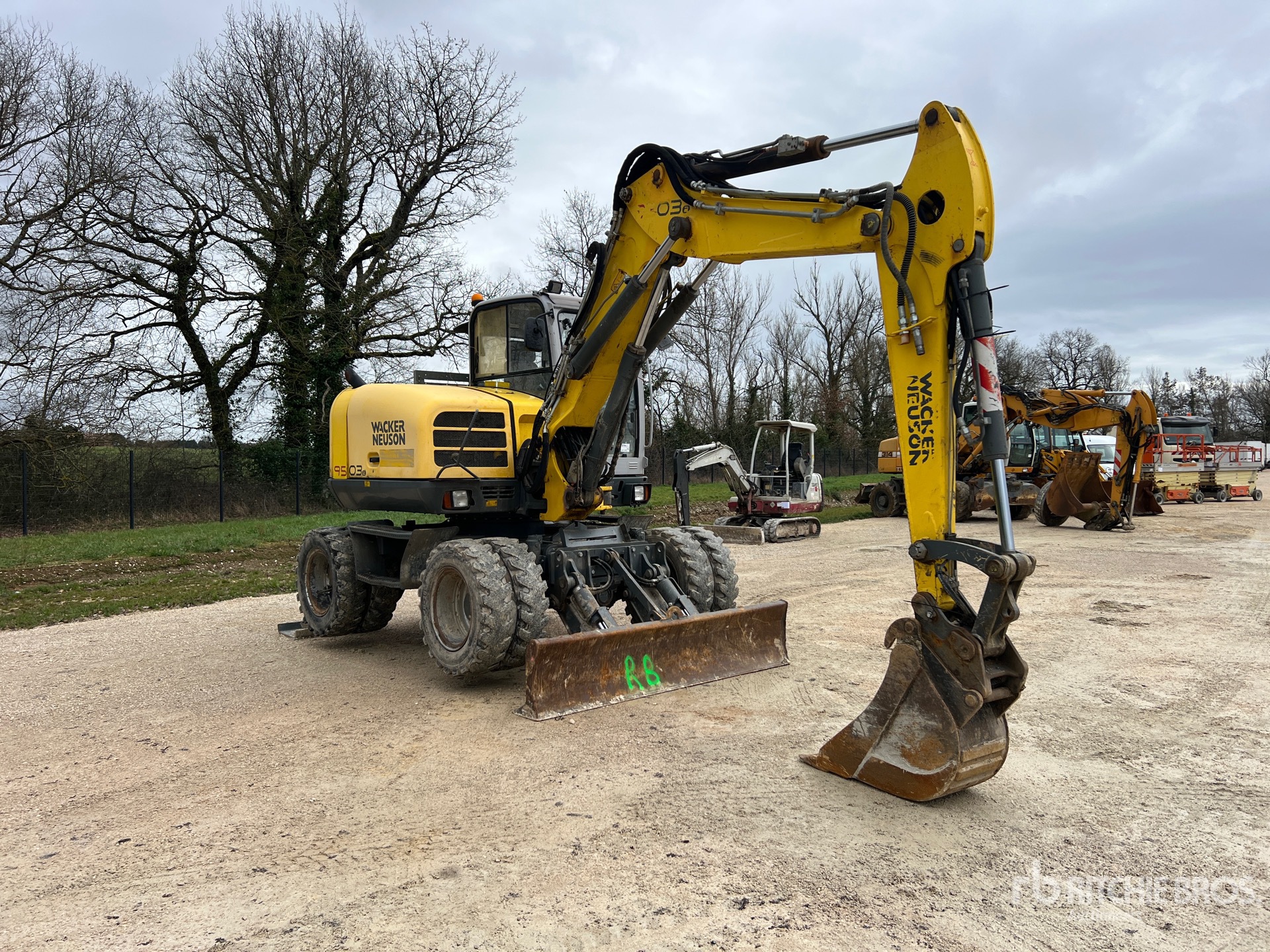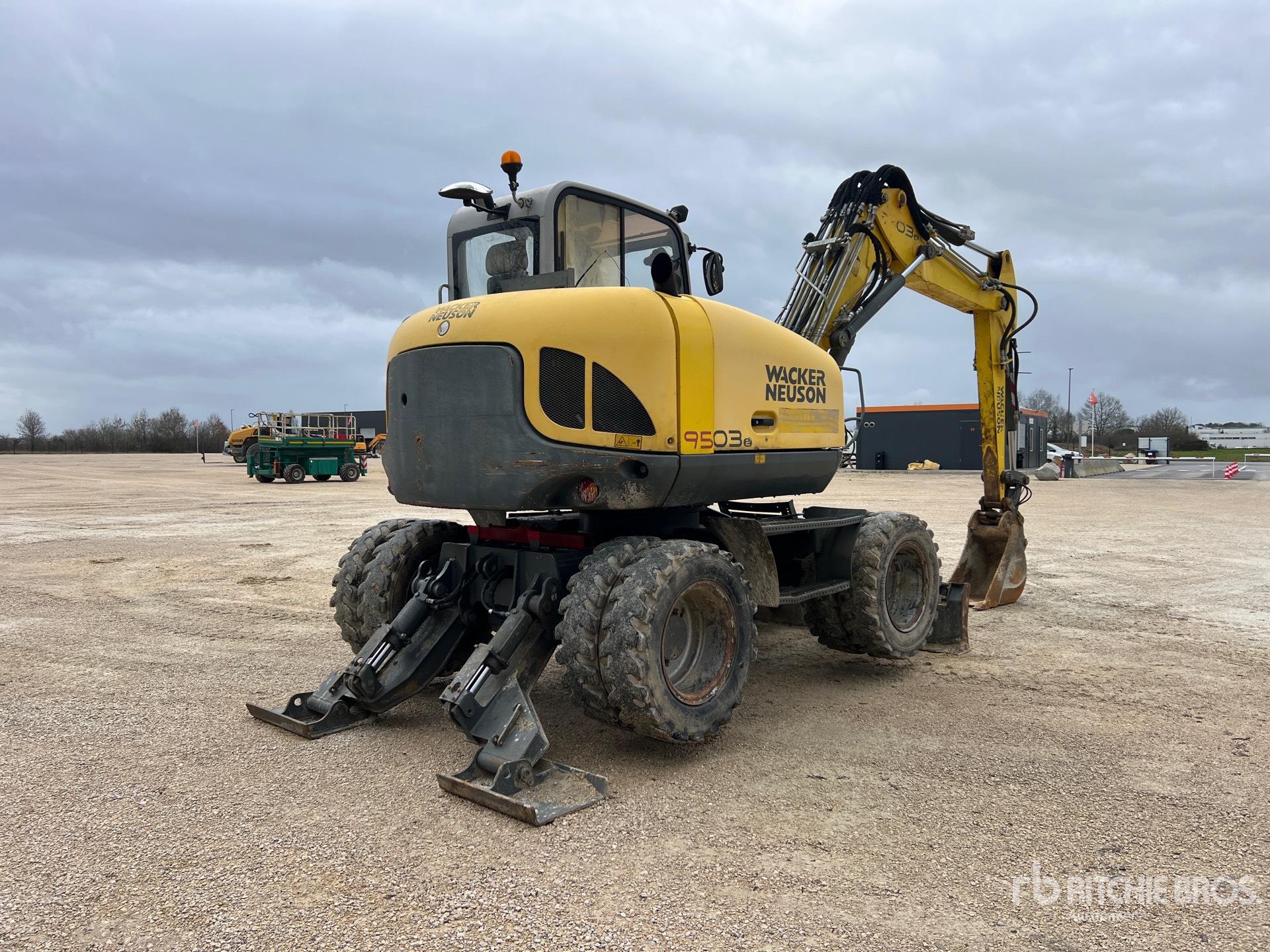 Variable Angle Swing Boom, 1850 mm Stick, Auxiliary Hydraulic Plumbing, Stick Check Valve, Boom Check Valves, Backfill Blade, Stabilizers, 8.25x20 Tires, Hydraulic Quick Coupler, 370 mm Digging Bucket