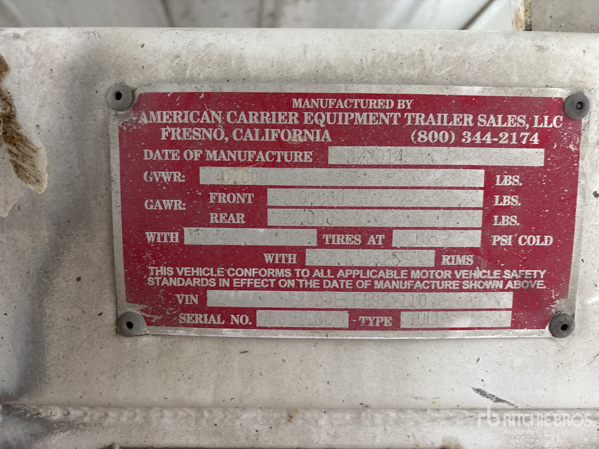 A qualified Ritchie Bros. employee collected detailed equipment information and performed functional tests on the key components of this asset. You, or a proxy, may also inspect any items on site prior to bidding on auction day.