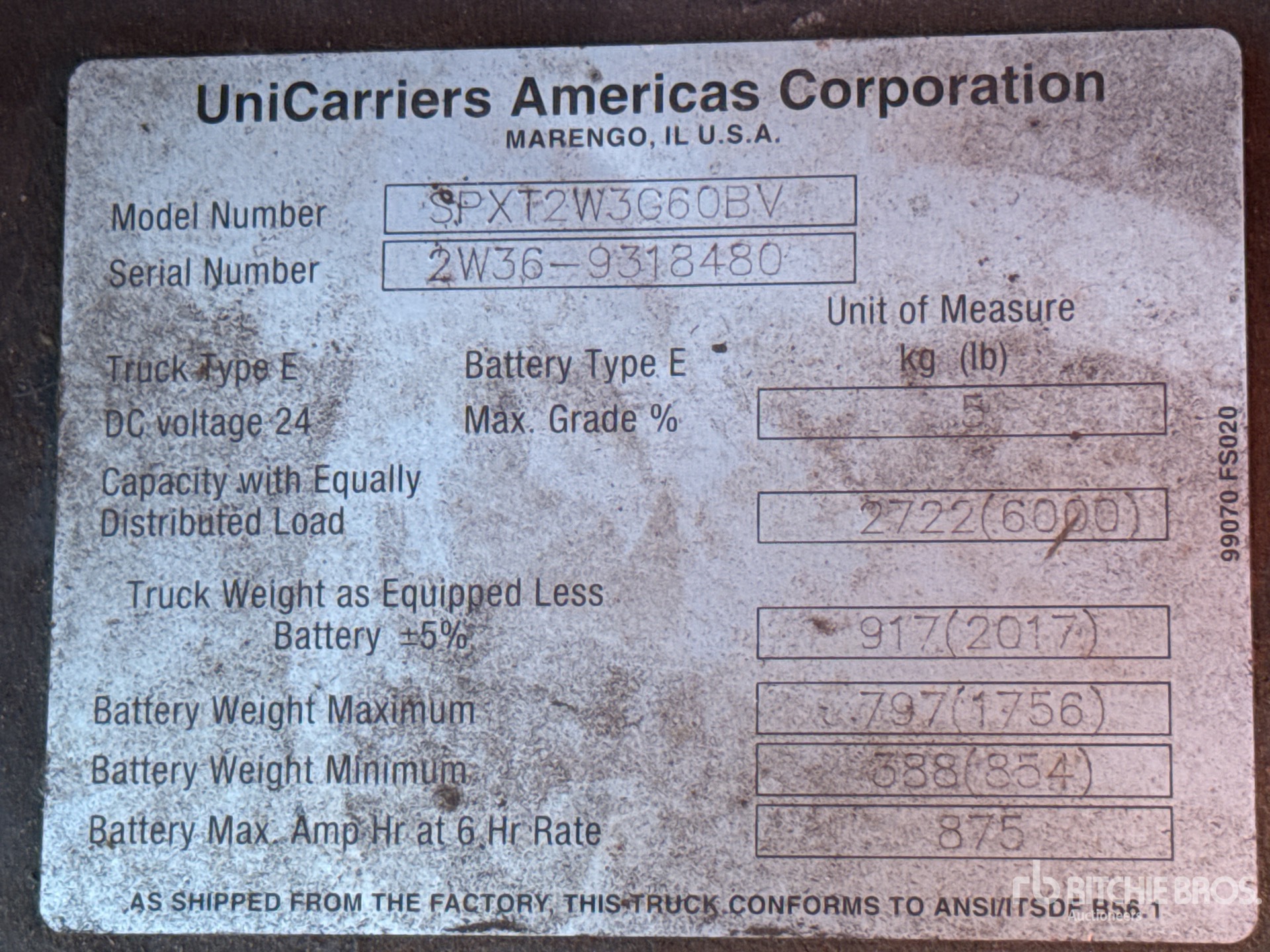 The detailed equipment information is limited in scope, and Ritchie Bros. Auctioneers has not inspected any aspects or components of the equipment other than those expressly set forth herein. Unless expressly stated, we make no representations or warranties, express or implied, concerning the equipment or its components, including without limitation any representations or warranties concerning functionality, conformity or compliance with any safety standard or requirement of any applicable authority or regulatory body, fitness for any particular purpose, or merchantability. You are strongly advised to perform your own detailed inspection of the equipment prior to bidding.