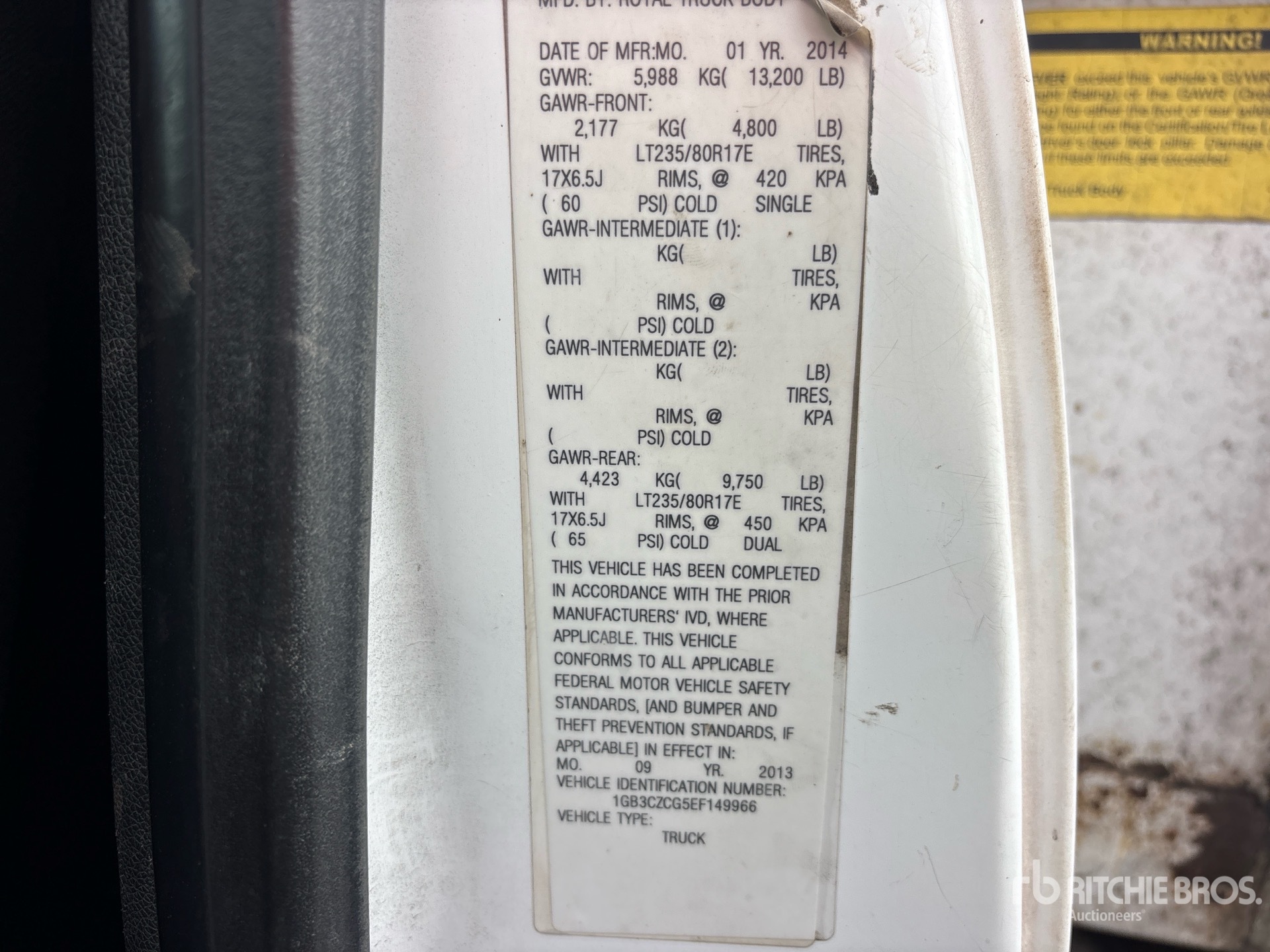 GM V8 6.0 L Gasoline Engine, Automatic Transmission, 4800 lb Front Axle, 9750 lb Rears, 13200 lb GVWR, 235/80R17 Front Tires, 235/80R17 Rear Tires, Spring Suspension, 162 in Wheelbase, 2014 Royal 12 ft Body