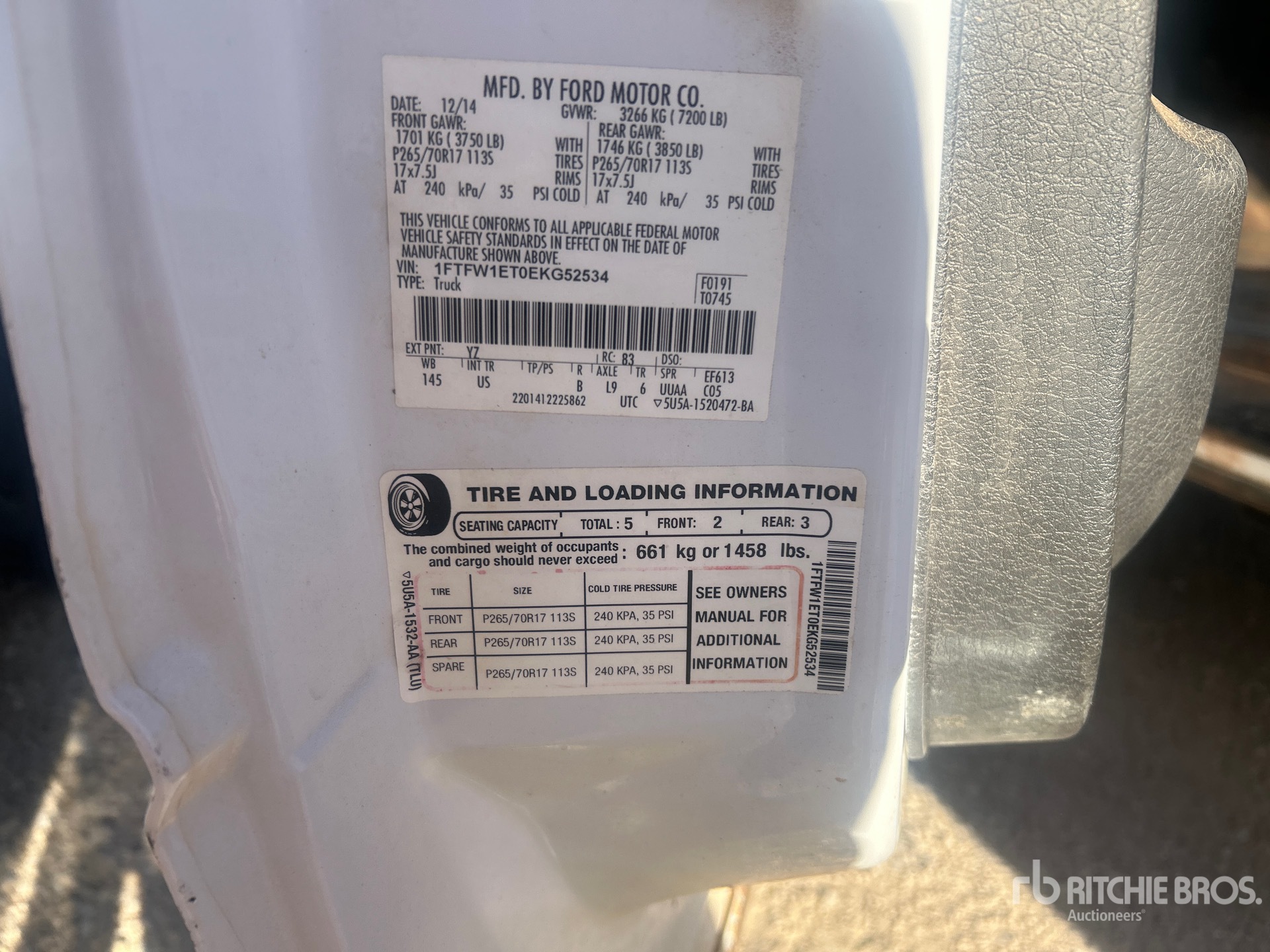 3.5 L V6 Gasoline Engine, 2014 US EPA Label, Automatic Transmission, Air Conditioner, 7200 lb GVWR, 265/70R17 Tires, 5 ft 6 in Bed