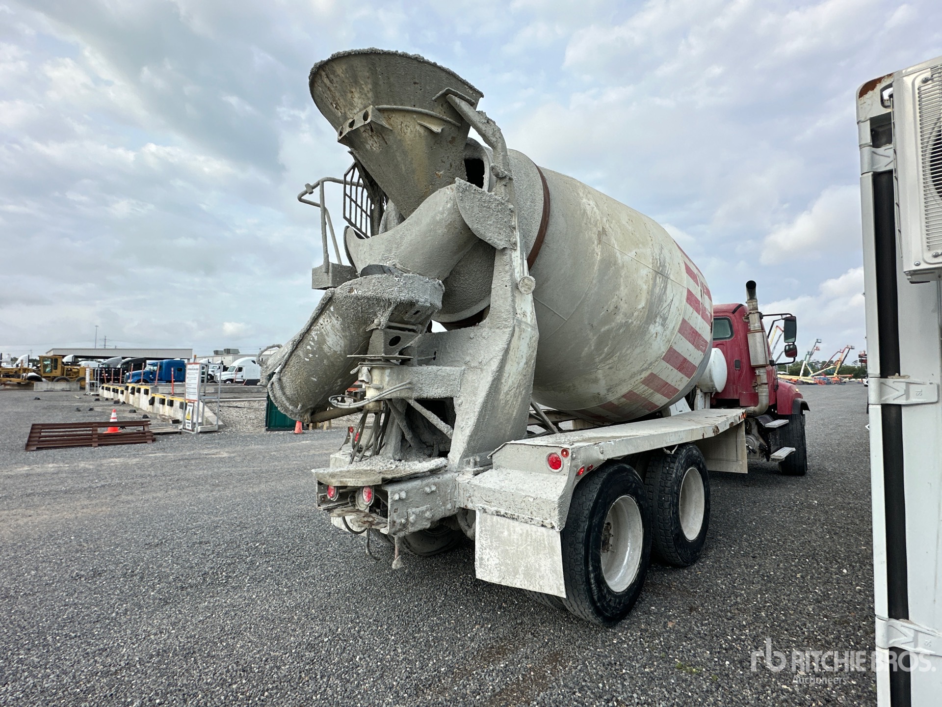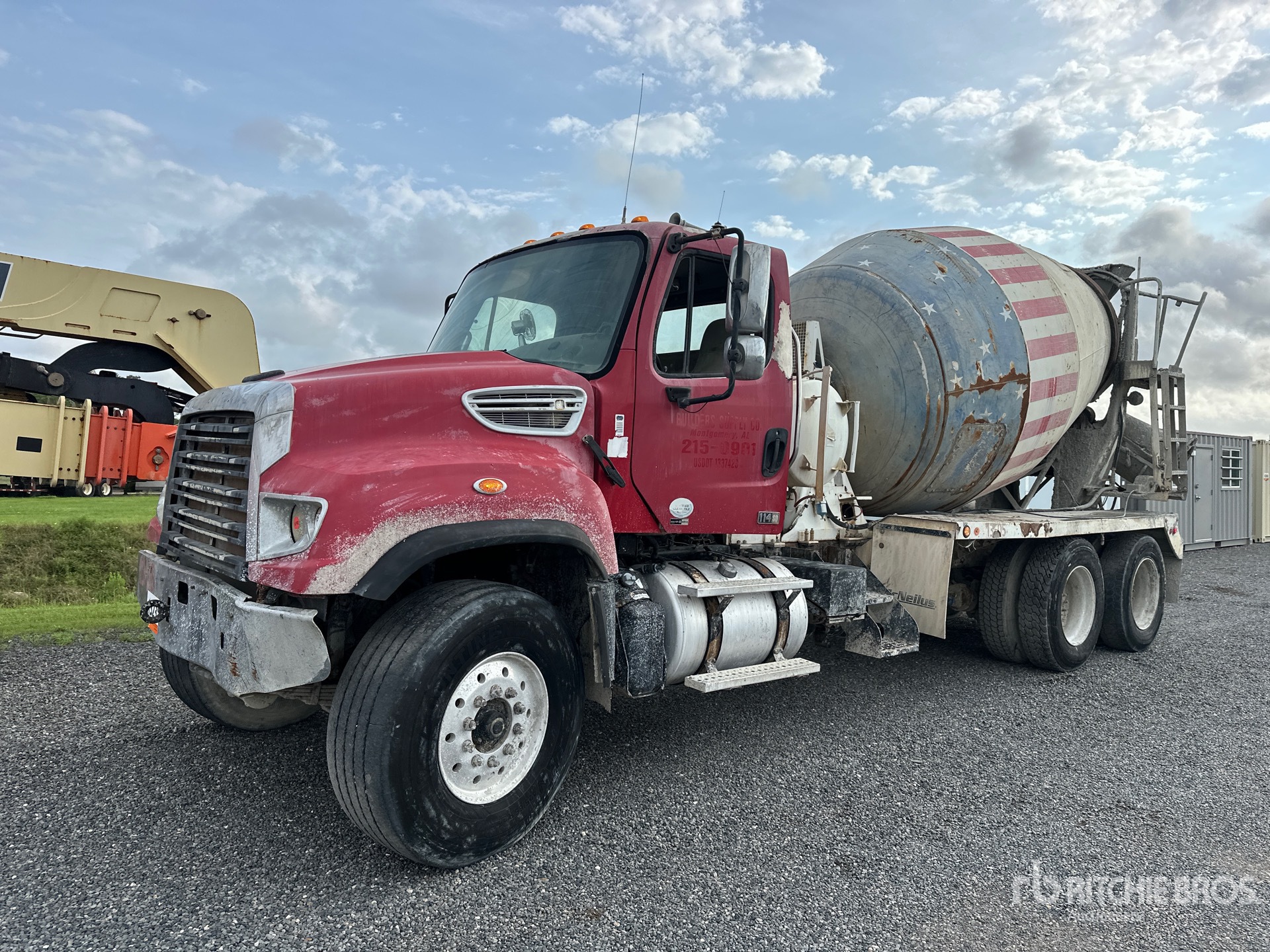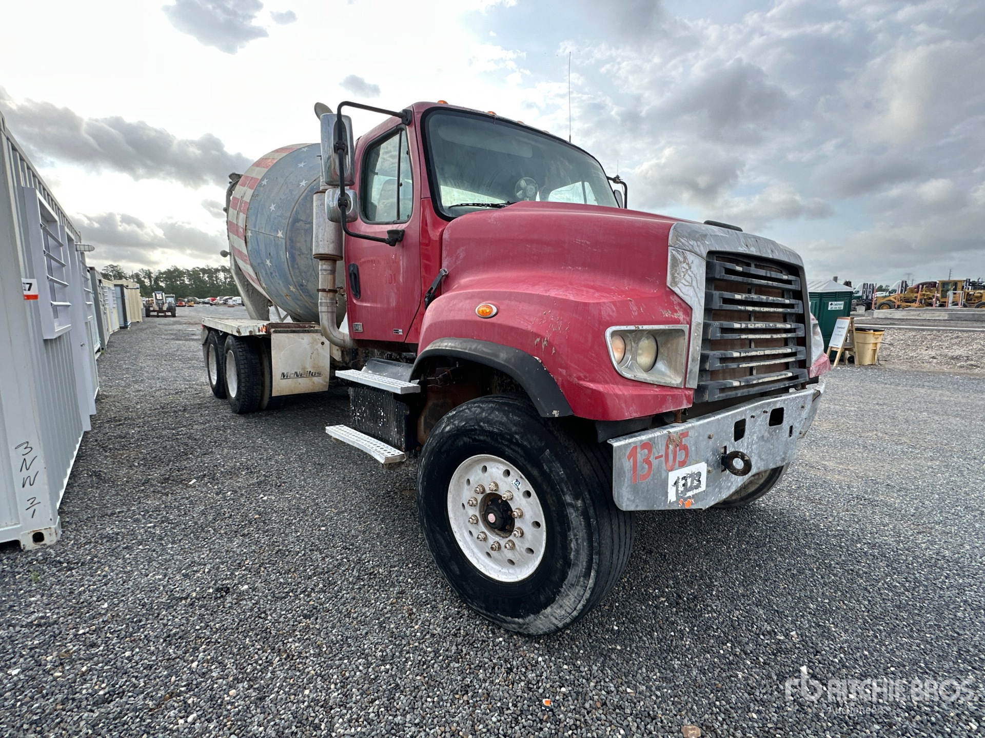 Detroit DD13 6 Cylinder Diesel 450 hp Engine, Engine Brake, Allison Automatic Transmission, 22000 lb Front Axle, 44000 lb Rears, 81200 lb GVWR, 425/65R22.5 Front Tires, 11R24.5 Rear Tires, Dual Steering Boxes, Double Frame, Hendrickson Haulmaax Suspension, 245 in Wheelbase, PTO, McNeilus Mixer Unit, Remote Control w/Cord