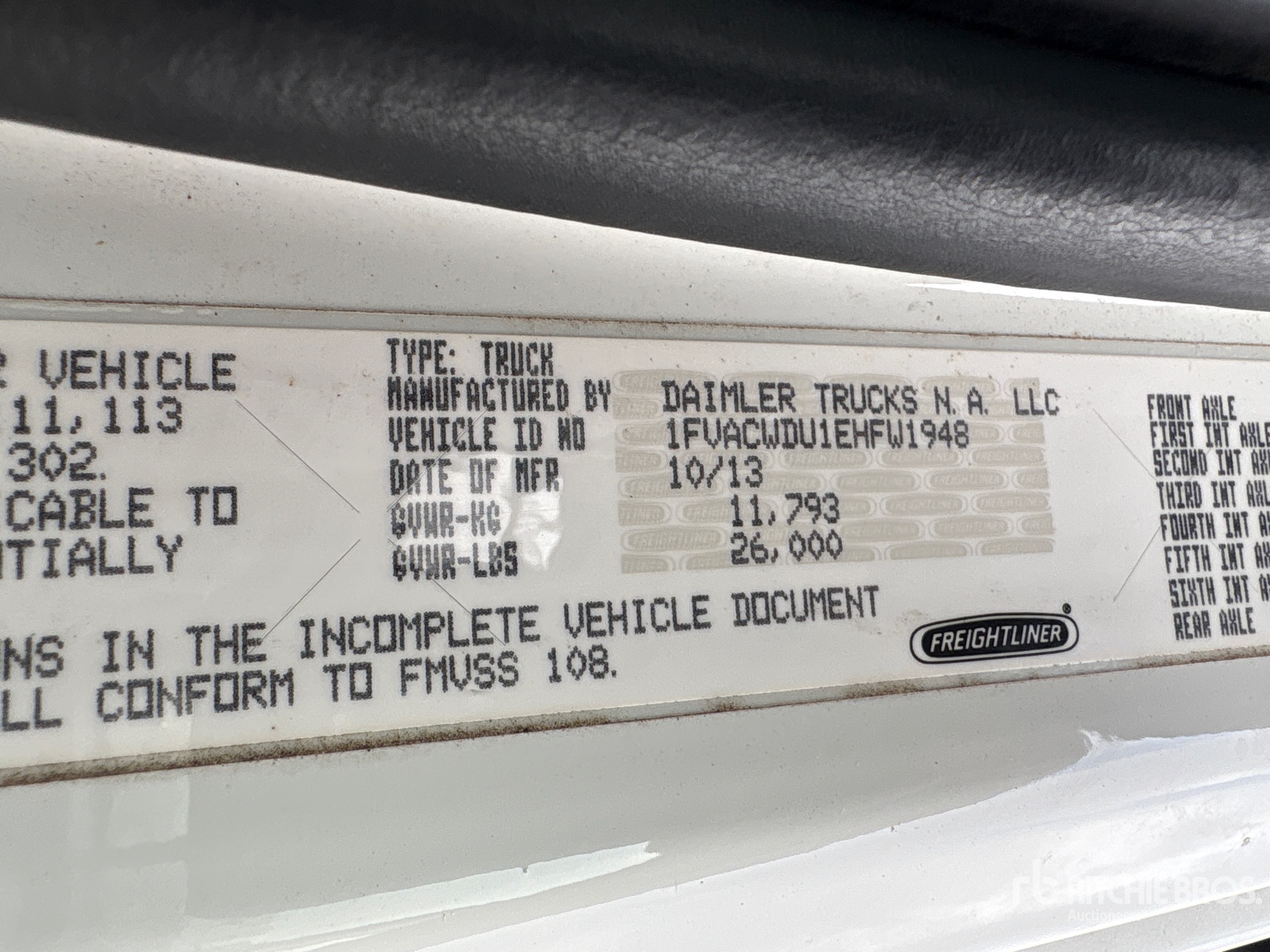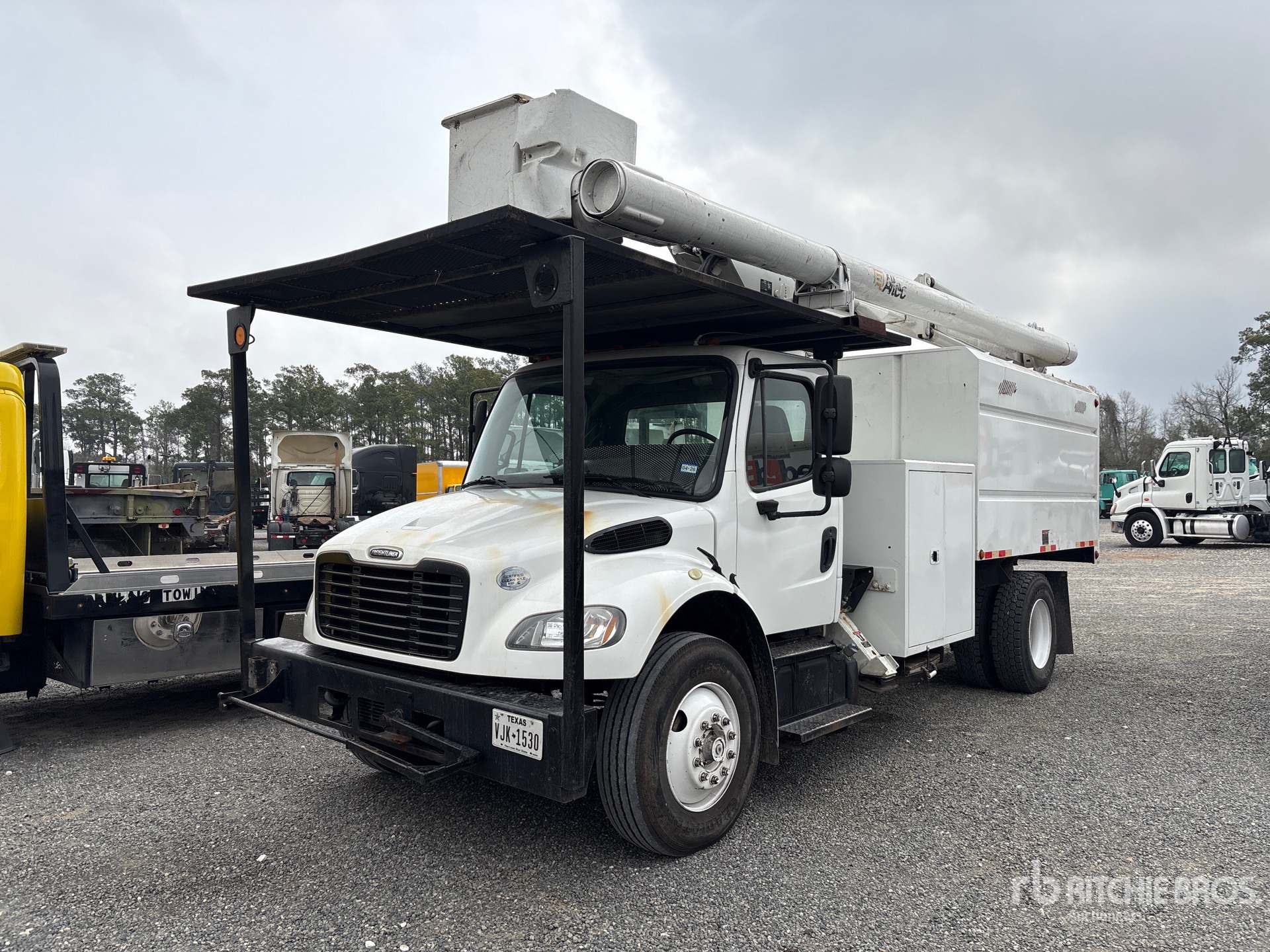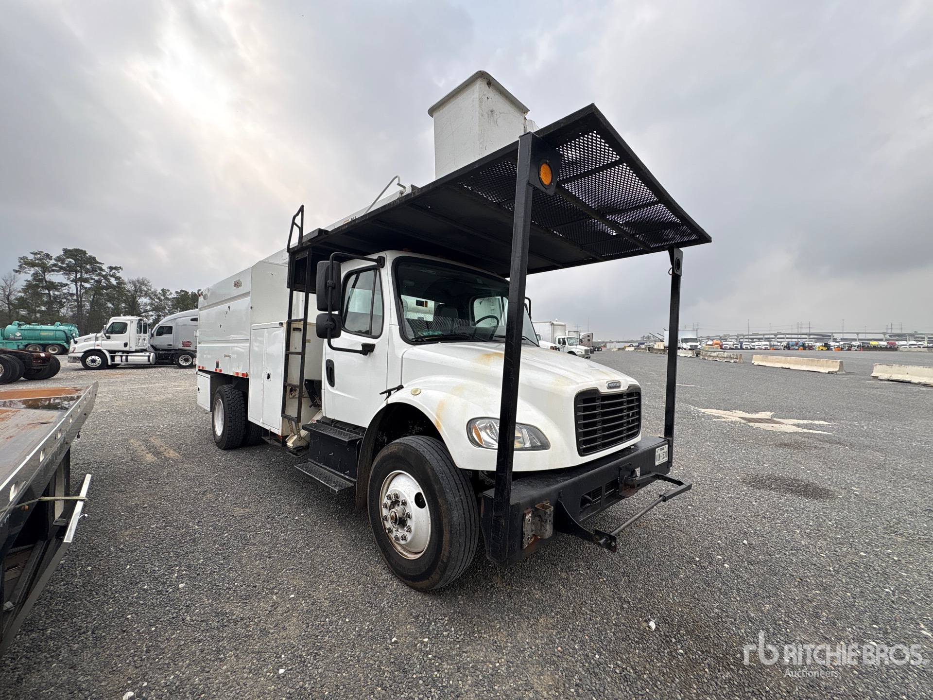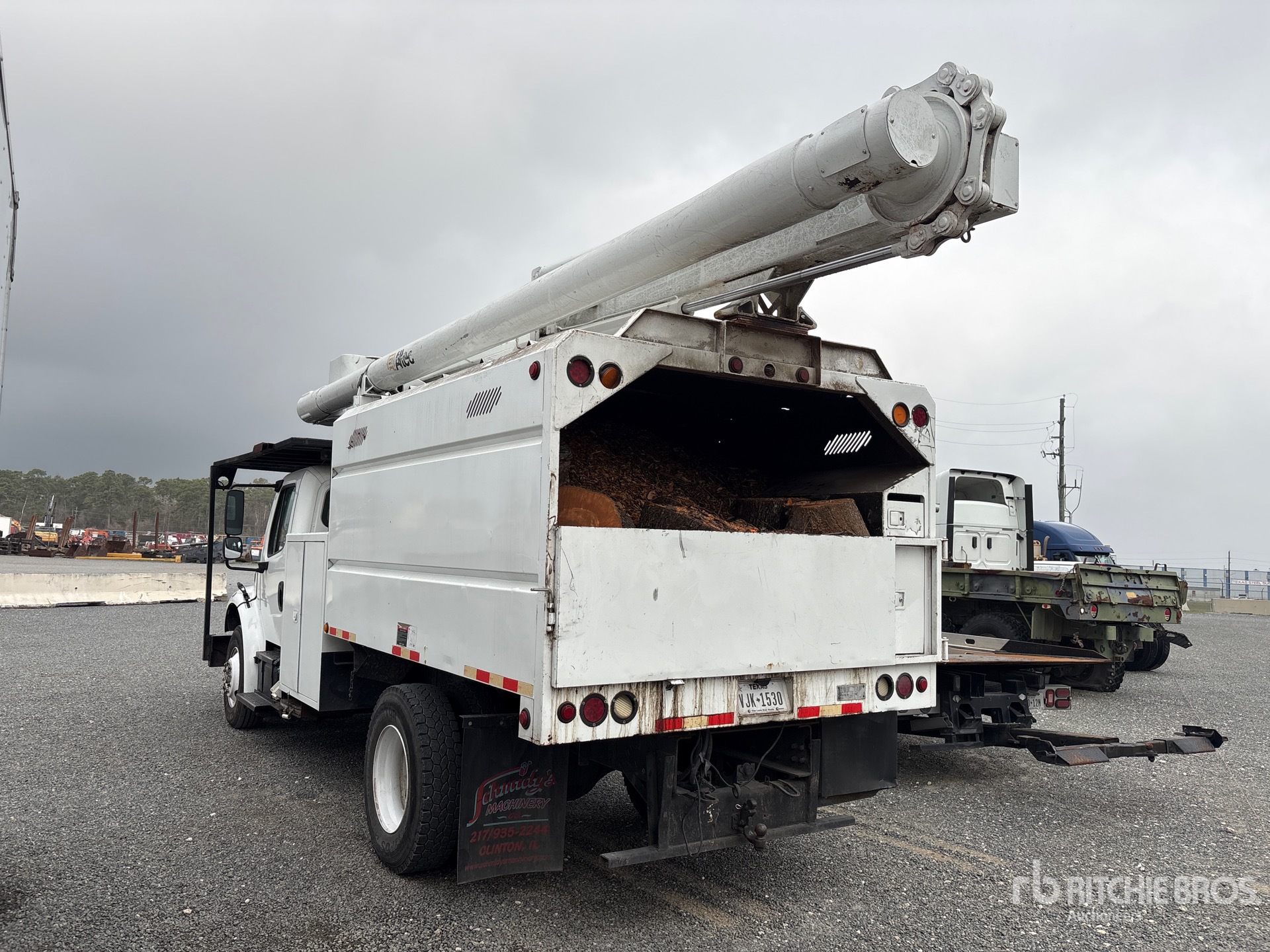 Cummins Diesel Engine, 2015 US EPA Label, 7529 Engine hrs, Manual Transmission, 12000 lb Front Axle, 17500 lb Rears, 26000 lb GVWR, 11R22.5, Spring Suspension, 186 in Wheelbase, ALTEC 14 ft 1 in Long x 5 ft 6 in High Steel Body, Pintle Hitch