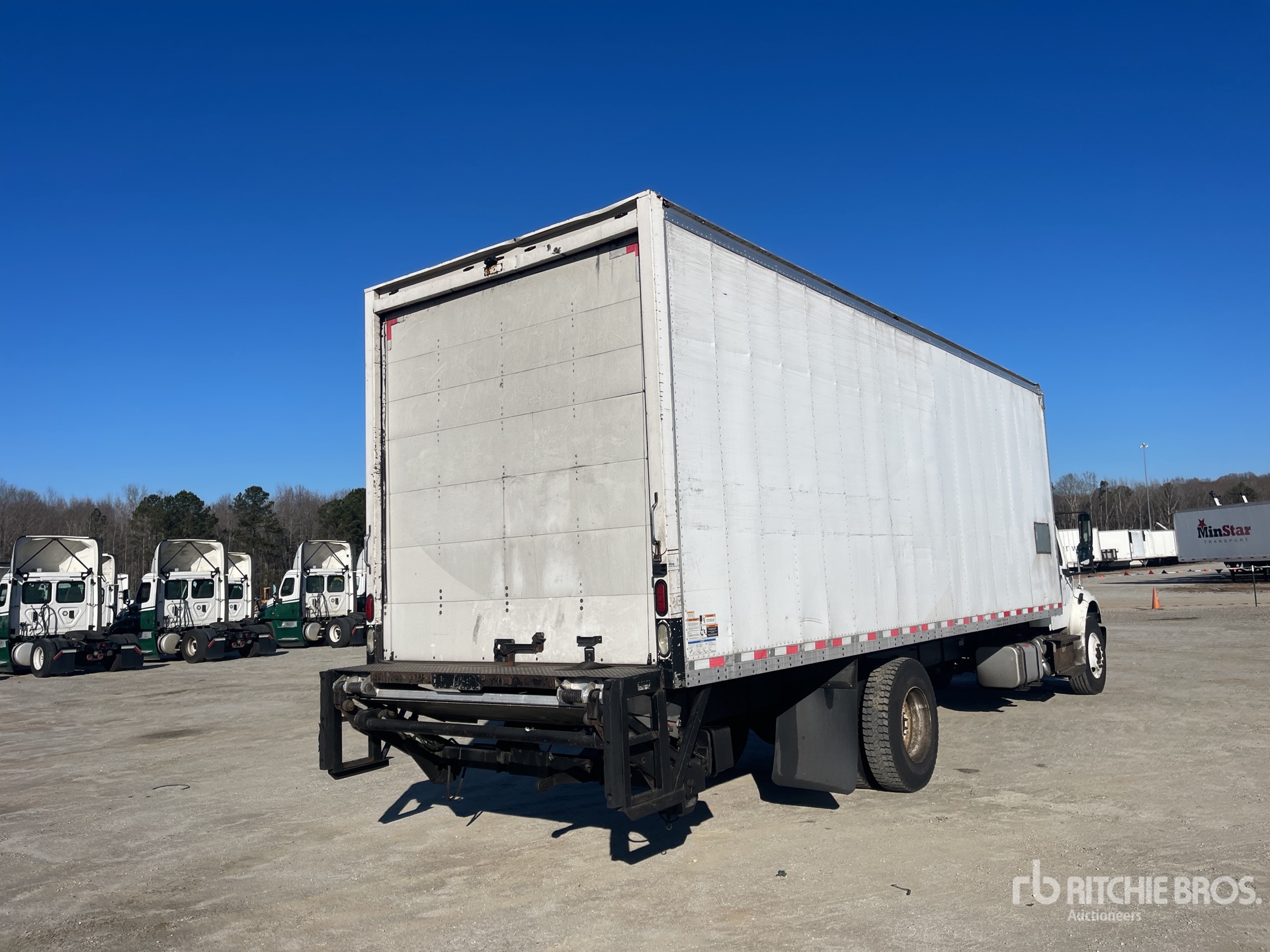 Cummins ISB 6 Cylinder 6.7 L Diesel 220 hp Engine, 2012 US EPA Label, Requires Diesel Exhaust Fluid, 19668.9 Engine hrs, Allison 2100 Automatic Transmission, 10000 lb Front Axle, 19000 lb Rears, Detroit DA-RS-19.0-4 Drive Axles, 5.88:1 Axle Ratio, 26000 lb GVWR, 11R22.5, Spring Suspension, 257 in Wheelbase, AMH 26 ft x 96 in Wide x 106 in High Body, Liftgate