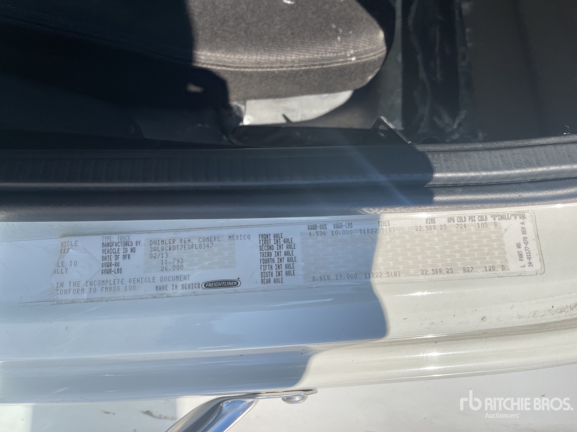The detailed equipment information is limited in scope, and Ritchie Bros. Auctioneers has not inspected any aspects or components of the equipment other than those expressly set forth herein. Unless expressly stated, we make no representations or warranties, express or implied, concerning the equipment or its components, including without limitation any representations or warranties concerning functionality, conformity or compliance with any safety standard or requirement of any applicable authority or regulatory body, fitness for any particular purpose, or merchantability. You are strongly advised to perform your own detailed inspection of the equipment prior to bidding.