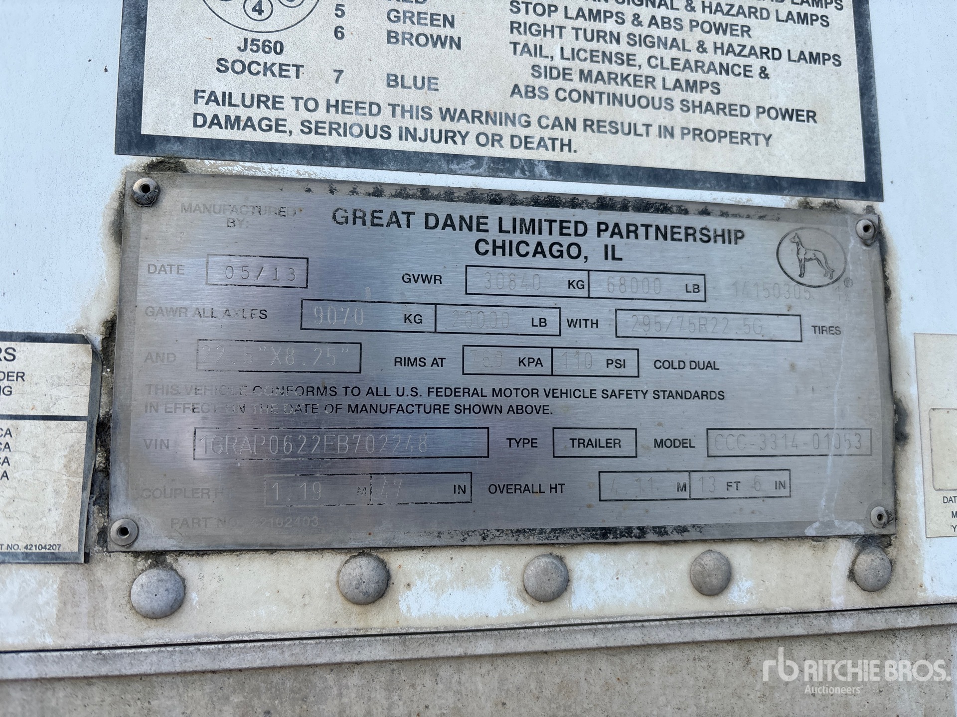 Air Ride Sliding Suspension, Hardwood Floor, Swing Door, 295/75R22.5 Tires 68000 lb GVWR