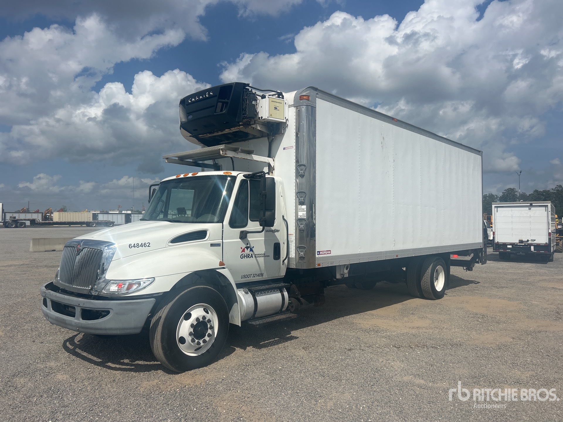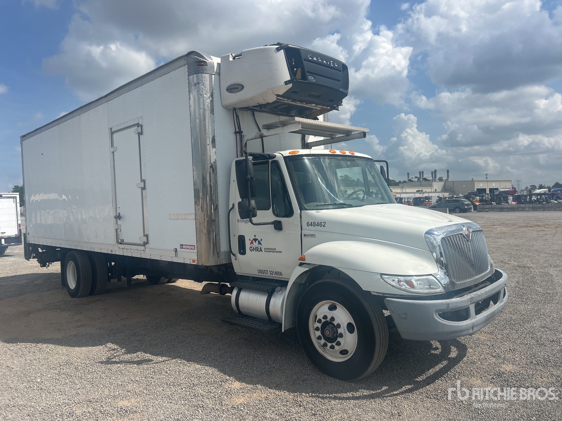 6 Cylinder Diesel Engine, Automatic Transmission, 10000 lb Front Axle, 19000 lb Rears, 25999 lb GVWR, 295/75R22.5, Air Ride Suspension, 271 in Wheelbase, Carrier Reefer Unit, MORGAN 26 ft x 102 in Wide x 103 in High Body, Curbside Door, Liftgate