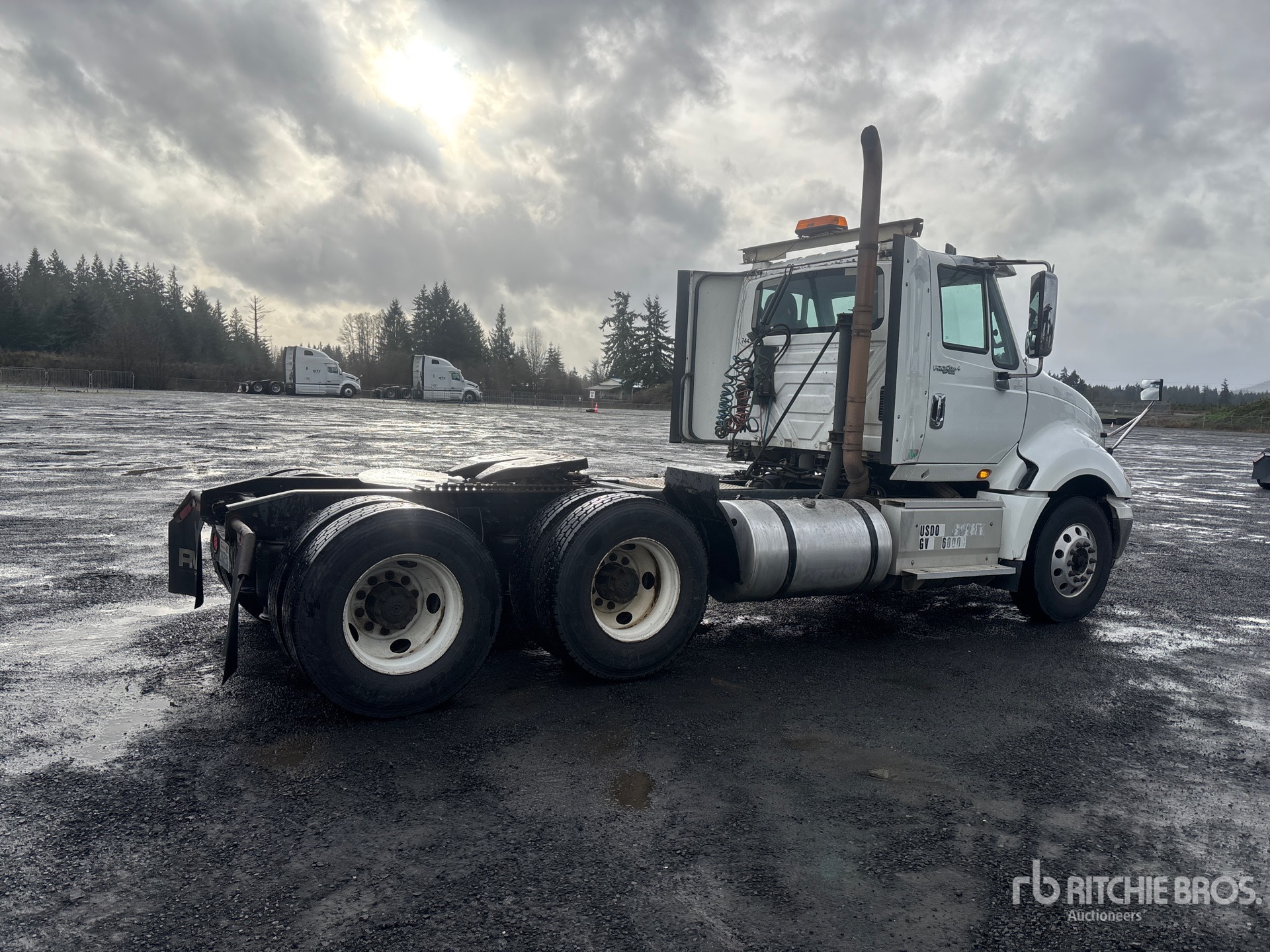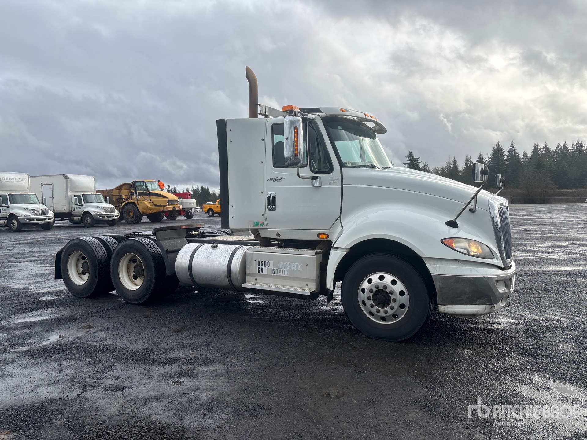 Navistar N13 475 hp Engine, 2013 US EPA Label, Eaton Fuller 9-Speed Manual Transmission, 12350 lb Front Axle, 40000 lb Rears, 52350 lb GVWR, Engine Brake, 188 in Wheelbase, Air Suspension, Aluminum Front Wheels, 11R22.5, Air Sliding 5th Wheel, Dual Fuel Tanks