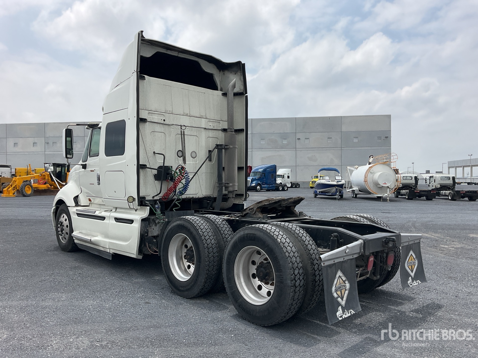 Cummins ISX 450 hp Engine, 4739 Engine hrs, Eaton Fuller 18-Speed Manual Transmission, 13200 lb Front Axle, Meritor Drive Axles, 4.30:1 Axle Ratio, 46000 lb Rears, Engine Brake, 51 in Mid Roof Sleeper Cab, 206 in Wheelbase, Air Suspension, Aluminum Outer Wheels, 11R24.5, Dual Fuel Tanks