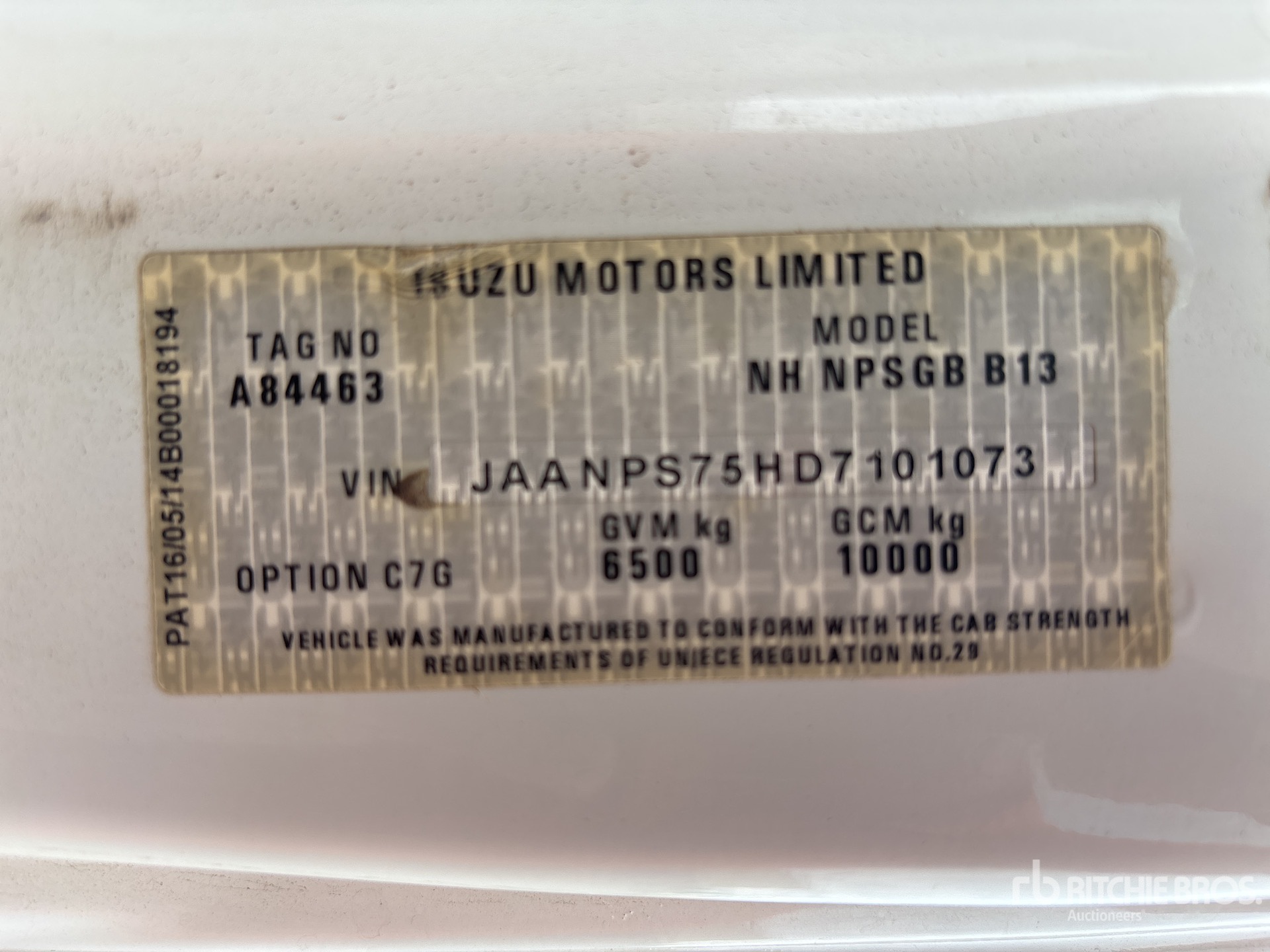 The detailed equipment information is limited in scope, and Ritchie Bros. Auctioneers has not inspected any aspects or components of the equipment other than those expressly set forth herein. Unless expressly stated, we make no representations or warranties, express or implied, concerning the equipment or its components, including without limitation any representations or warranties concerning functionality, conformity or compliance with any safety standard or requirement of any applicable authority or regulatory body, fitness for any particular purpose, or merchantability. You are strongly advised to perform your own detailed inspection of the equipment prior to bidding.