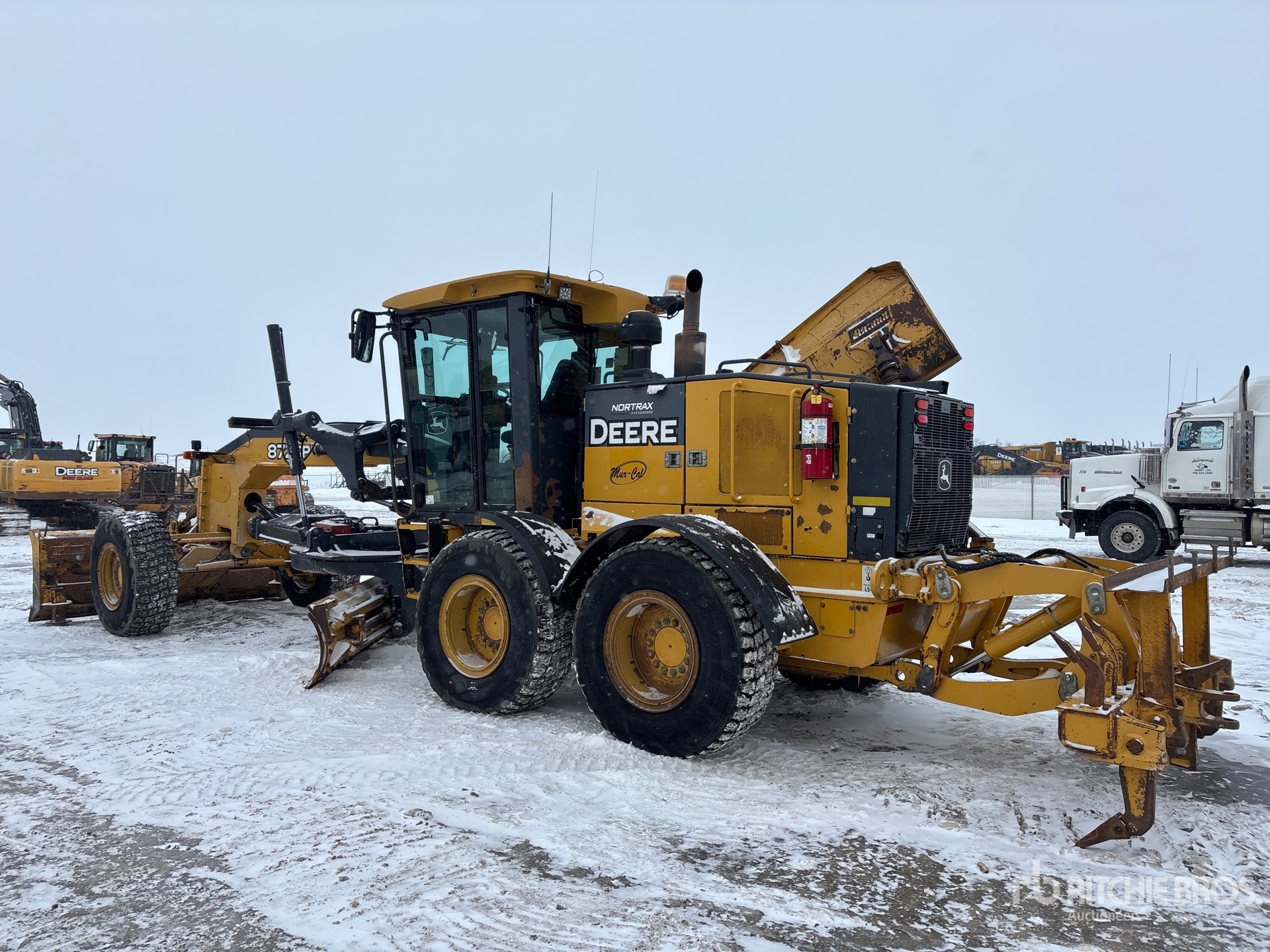 Enclosed Cab, Air Conditioner, Low Profile, Air Ride Seat, Rear View Camera, Differential Lock, Engine Coolant Heater, Positive Air Shutoff, 14 ft / 4.27 m Moldboard, Straight Front Blade, Snow Wing, Accumulators, Combination Ripper/Scarifier, 17.5R25 Tires, Complete-Retirement-Dispersal-for-Mur-Cal-Services-Ltd