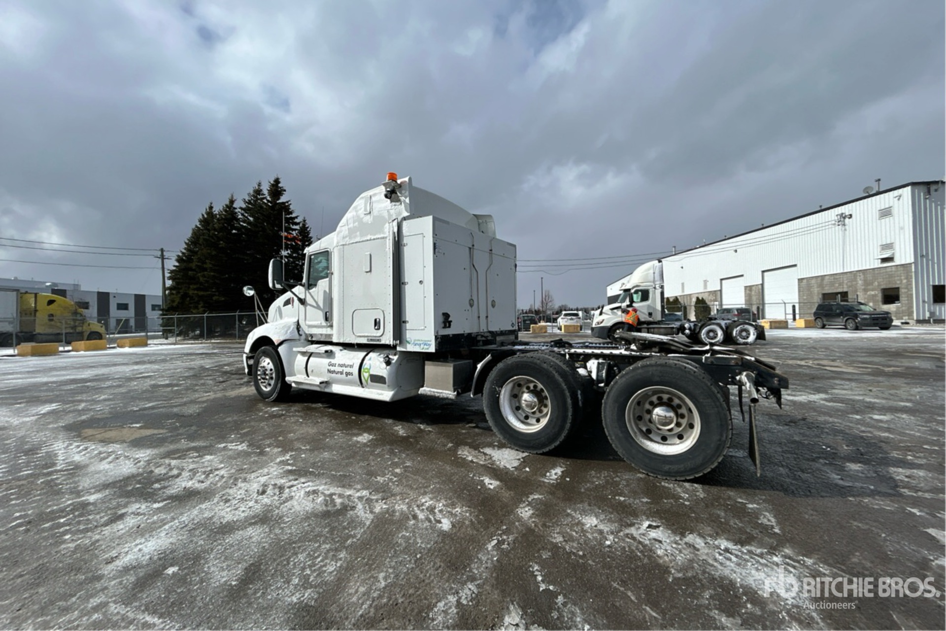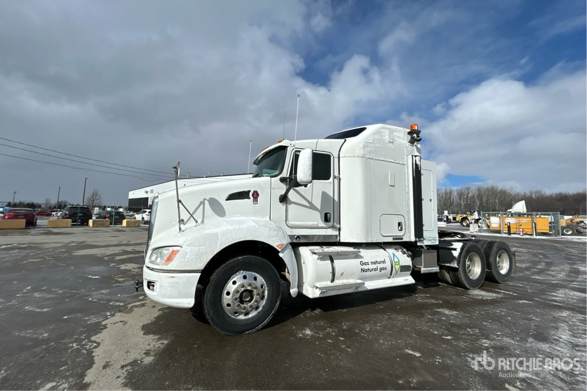 Cummins ISX12G 400 hp Engine, 2013 US EPA Label, 10796 Engine hrs, Eaton Fuller FRO-15210C 10-Speed Manual, 13200 lb Front Axle, 40000 lb Rears, 53200 lb GVWR, Engine Brake, 62 in High Rise Sleeper Cab, Bunk Beds, 230 in Wheelbase, Air Suspension, Aluminum Outer Wheels, 11R22.5, Air Sliding 5th Wheel, Dual Fuel Tanks