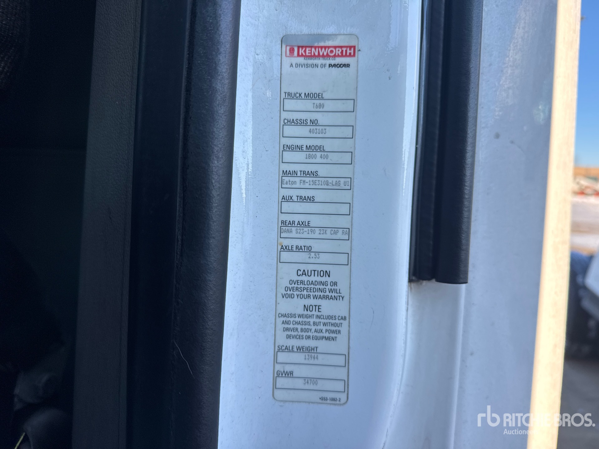 The detailed equipment information is limited in scope, and Ritchie Bros. Auctioneers has not inspected any aspects or components of the equipment other than those expressly set forth herein. Unless expressly stated, we make no representations or warranties, express or implied, concerning the equipment or its components, including without limitation any representations or warranties concerning functionality, conformity or compliance with any safety standard or requirement of any applicable authority or regulatory body, fitness for any particular purpose, or merchantability. You are strongly advised to perform your own detailed inspection of the equipment prior to bidding.