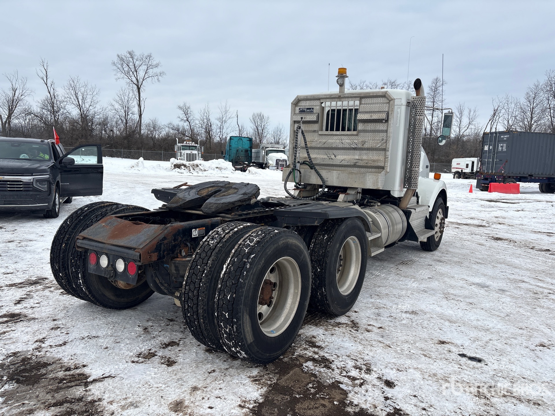 Cummins ISX 500 hp Engine, 2014 US EPA Label, 2084.0 Engine hrs, Eaton Fuller RTLO-18913A 13-Speed Manual, 14320 lb Front Axle, Dana D46-170 Drive Axles, 3.91:1 Axle Ratio, 46000 lb Rears, 60320 lb GVWR, Engine Brake, Double Differential Locks, 201 in Wheelbase, Air Suspension, Aluminum Wheels, 11R24.5, Air Sliding 5th Wheel, Dual Fuel Tanks, Headache Rack