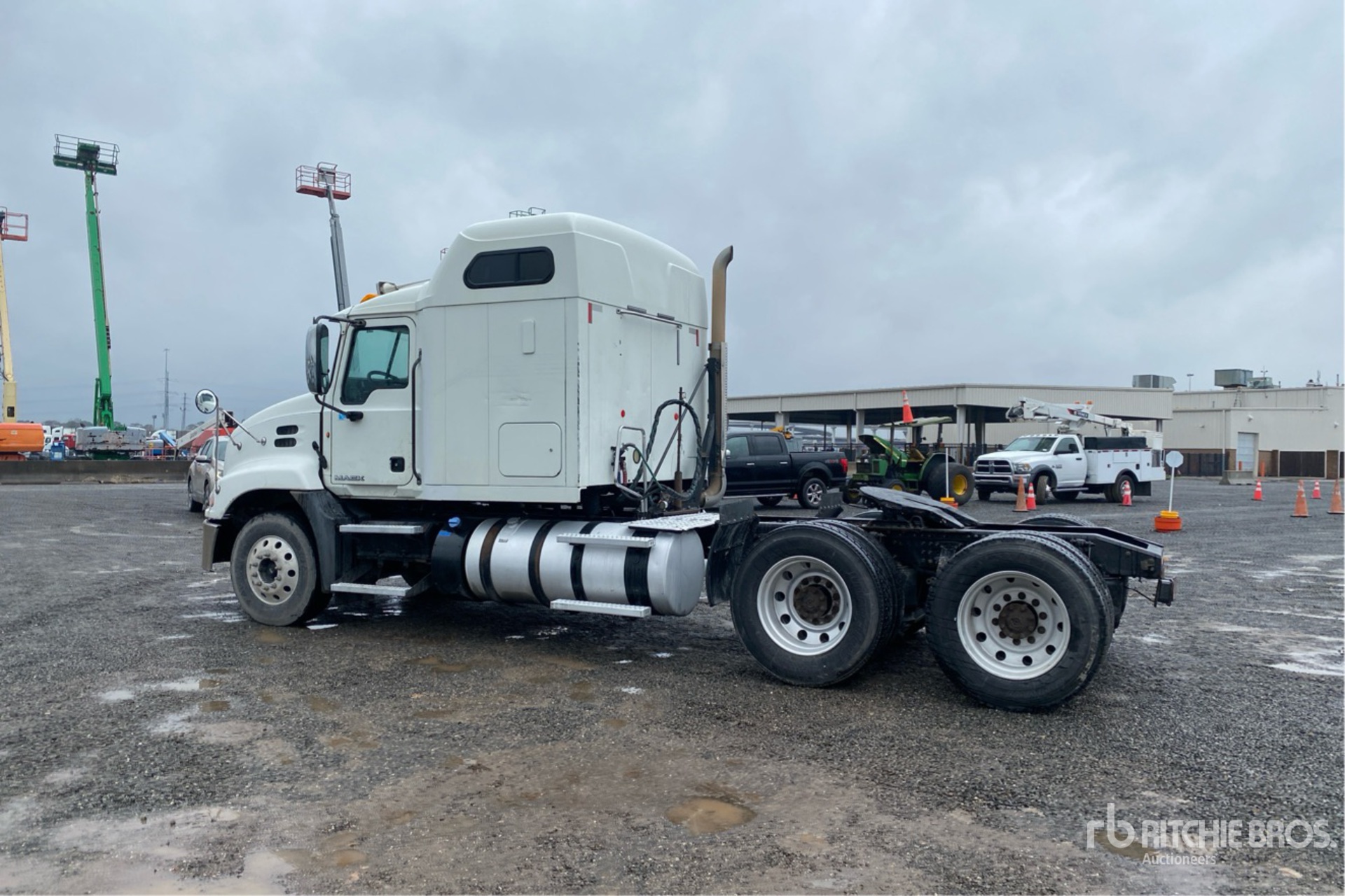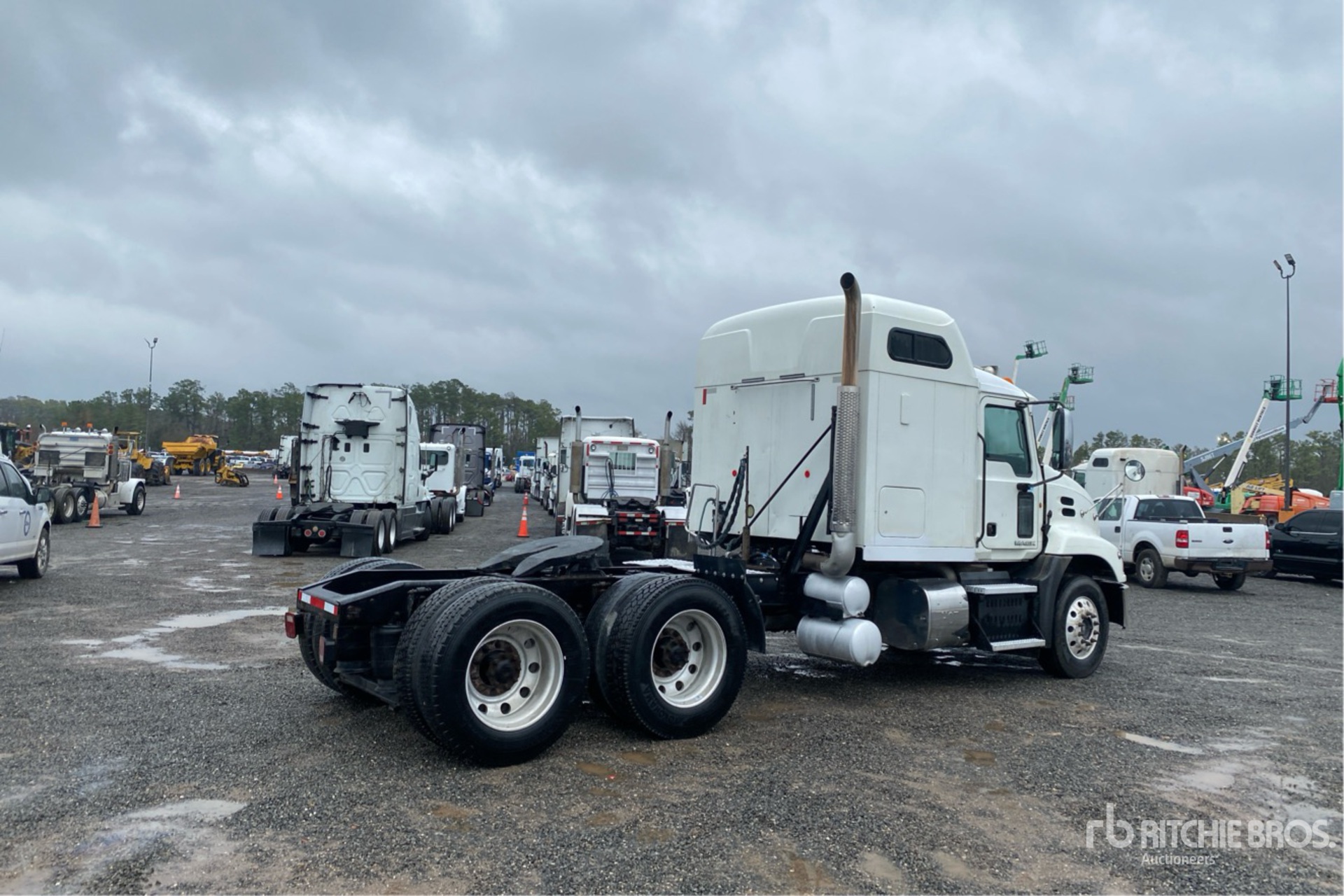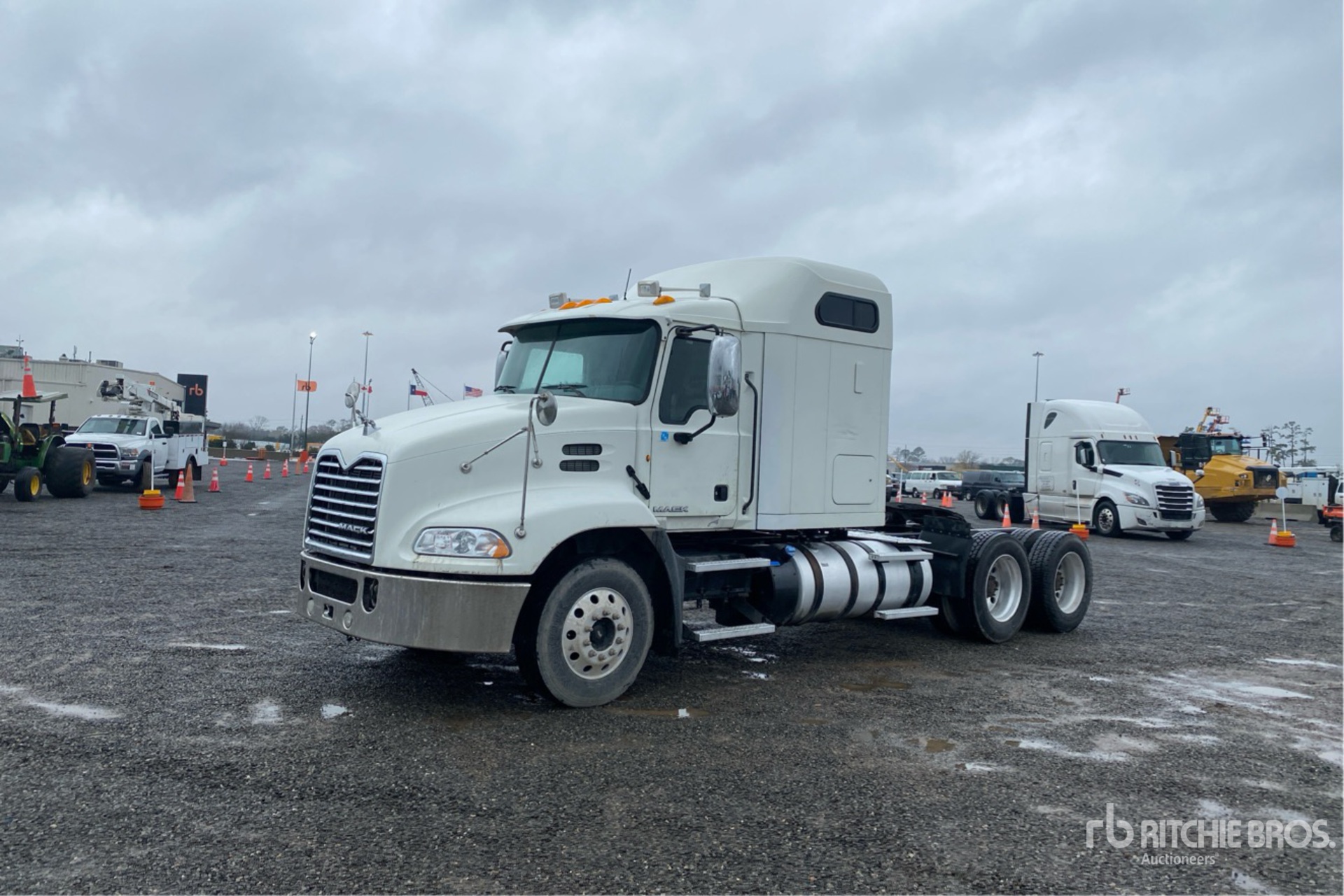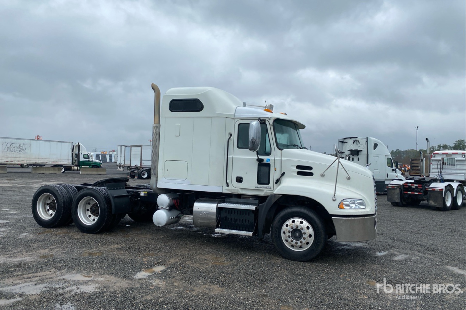 Mack MP7 10.8 L Diesel 395 hp Engine, 2013 US EPA Label, Requires Diesel Exhaust Fluid, 23859 Engine hrs, Engine Brake, Eaton Fuller 13-Speed Transmission, 12000 lb Front Axle, 40000 lb Rears, 52000 lb GVWR, Air Ride Cab, 70 in Sleeper Cab, Aluminum Wheels, 295/75R22.5 Front Tires, 285/75/22.5 Rear Tires, Air Ride Suspension, 216 in Wheelbase