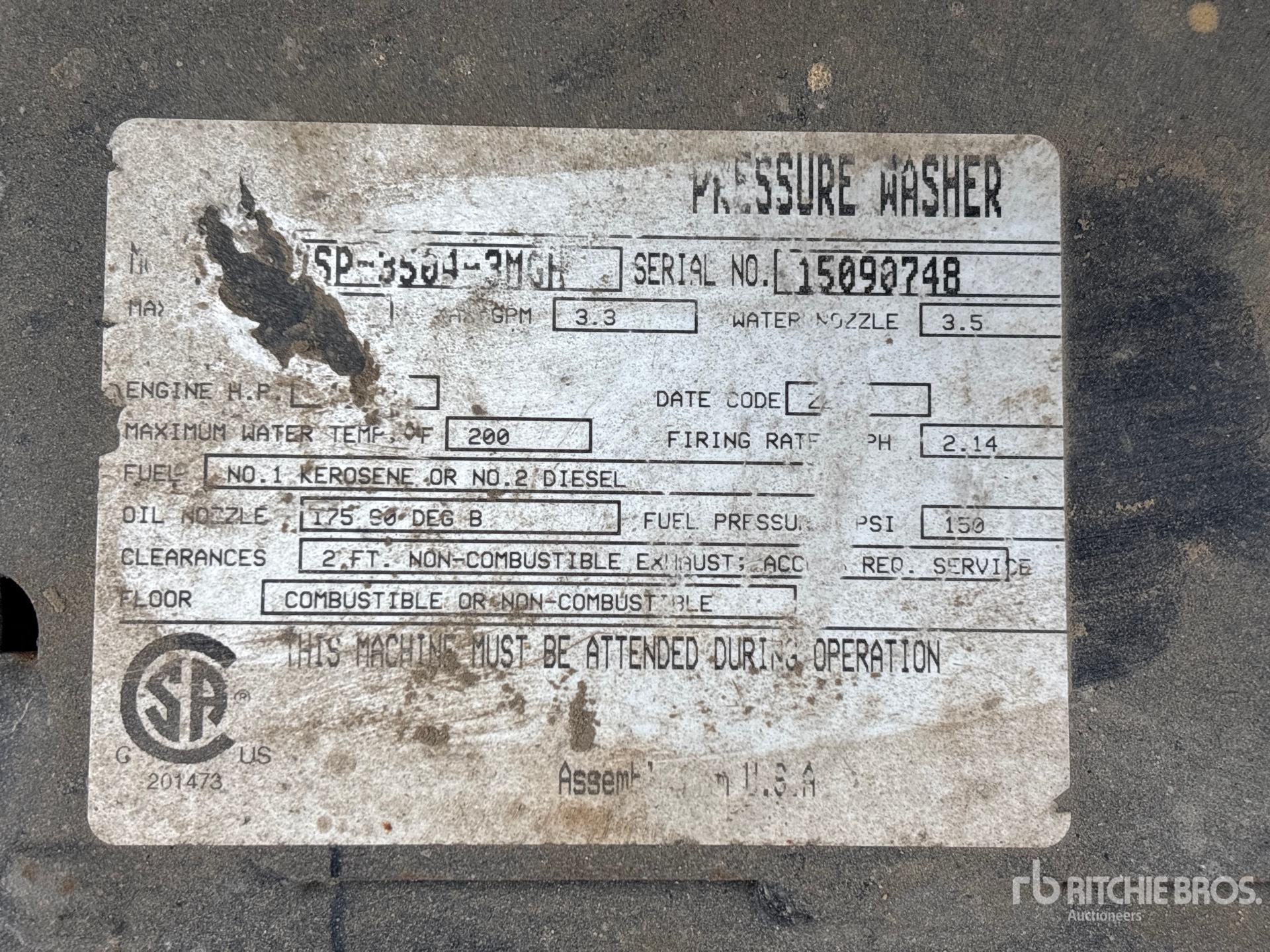 2014 Mi-T-M HW3501 Hot Water Pressure Washer
