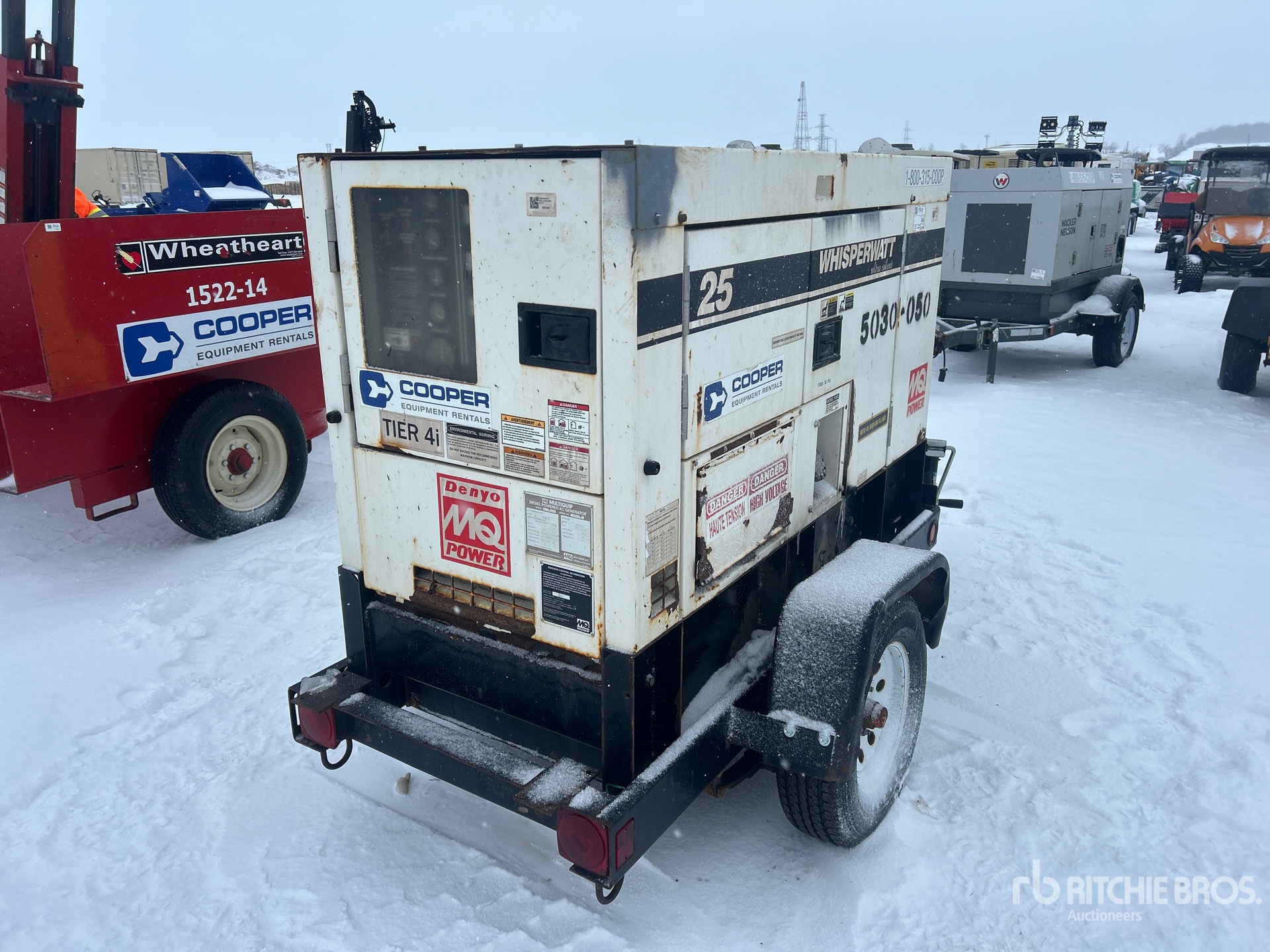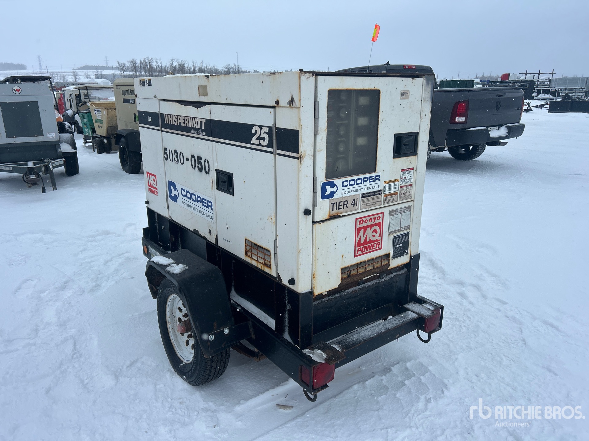 Isuzu 25.6 kW 2.1 L Diesel Engine, 25 kVA/20 kW Rated 3 Phase Output, 240 V / 480 V Rated Voltage, 14.4 kVA,/14.4 kW, Rated Single Phase Output, 240 V / 120 V Rated Voltage, 240 V & 120 V Receptacles, Lunette Ring Carrier Trailer