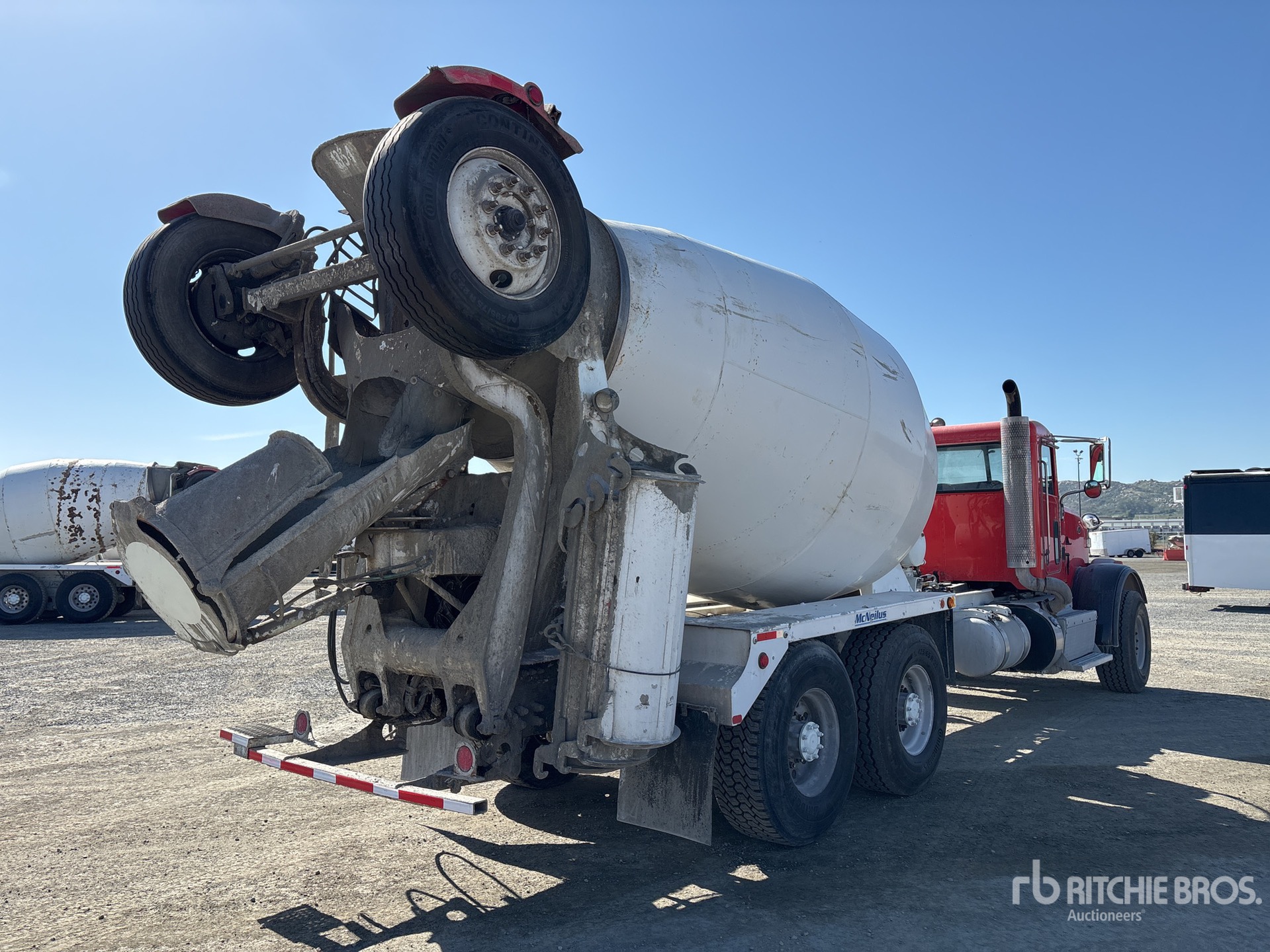Cummins ISX12 6 Cylinder 11.9 L Diesel 320 hp Engine, 2013 US EPA Label, Requires Diesel Exhaust Fluid, 22662 Engine hrs, Allison Automatic Transmission, 20000 lb Front Axle, 39000 lb Rears, 59000 lb GVWR, 425/65R22.5, Trailing Tag Axle, Dual Steering Boxes, Double Frame, Hendrickson Walking Beam Suspension, 252 in Wheelbase, PTO, McNeilus Mixer Unit, 3 Removable Chutes, Remote Control w/Cord