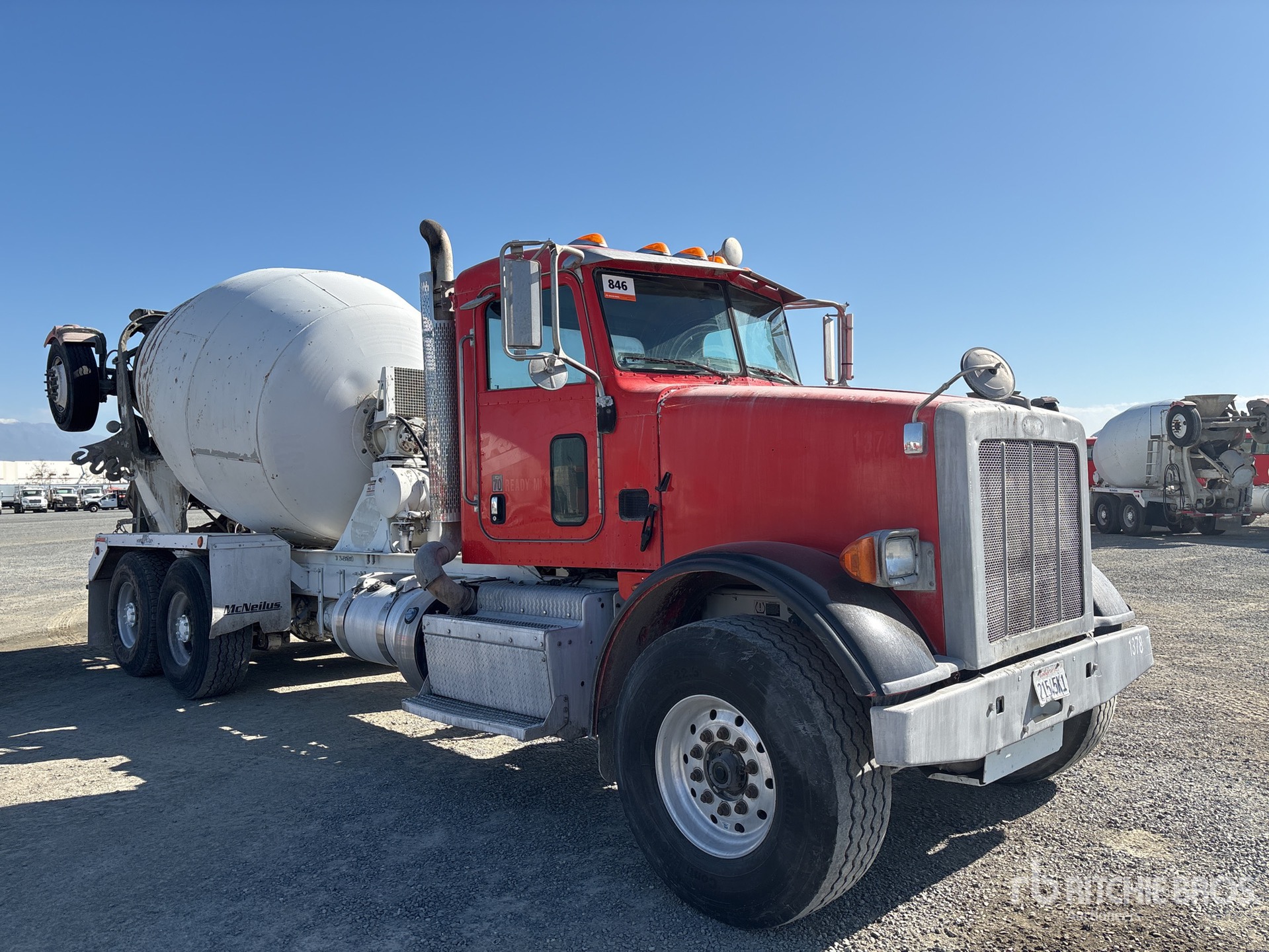 Cummins ISX12 6 Cylinder 11.9 L Diesel 320 hp Engine, 2013 US EPA Label, Requires Diesel Exhaust Fluid, 24075 Engine hrs, Allison Automatic Transmission, 20000 lb Front Axle, 39000 lb Rears, 59000 lb GVWR, 425/65R22.5, Trailing Tag Axle, Dual Steering Boxes, Double Frame, Hendrickson Walking Beam Suspension, 252 in Wheelbase, PTO, McNeilus Mixer Unit, Remote Control w/Cord
