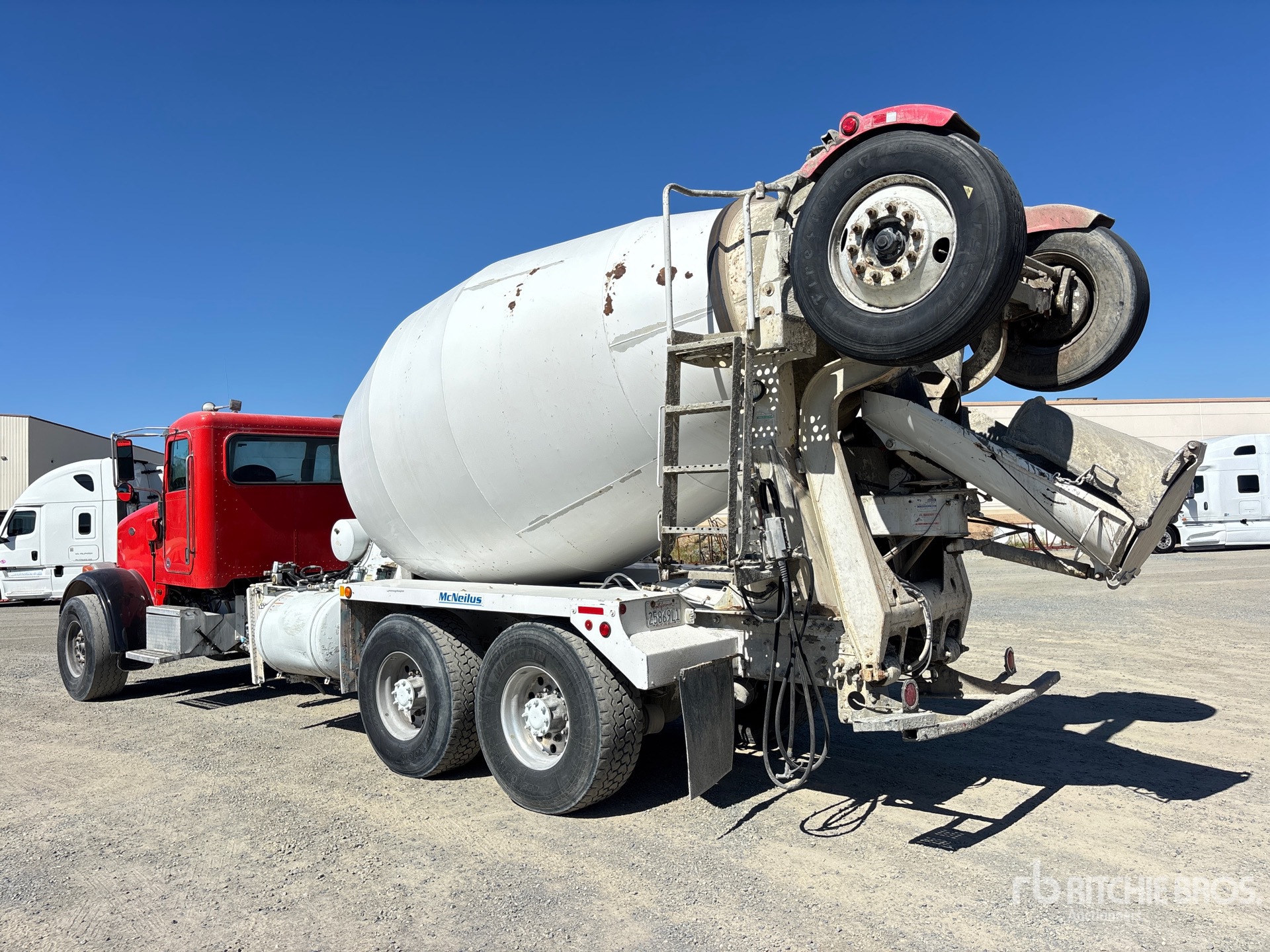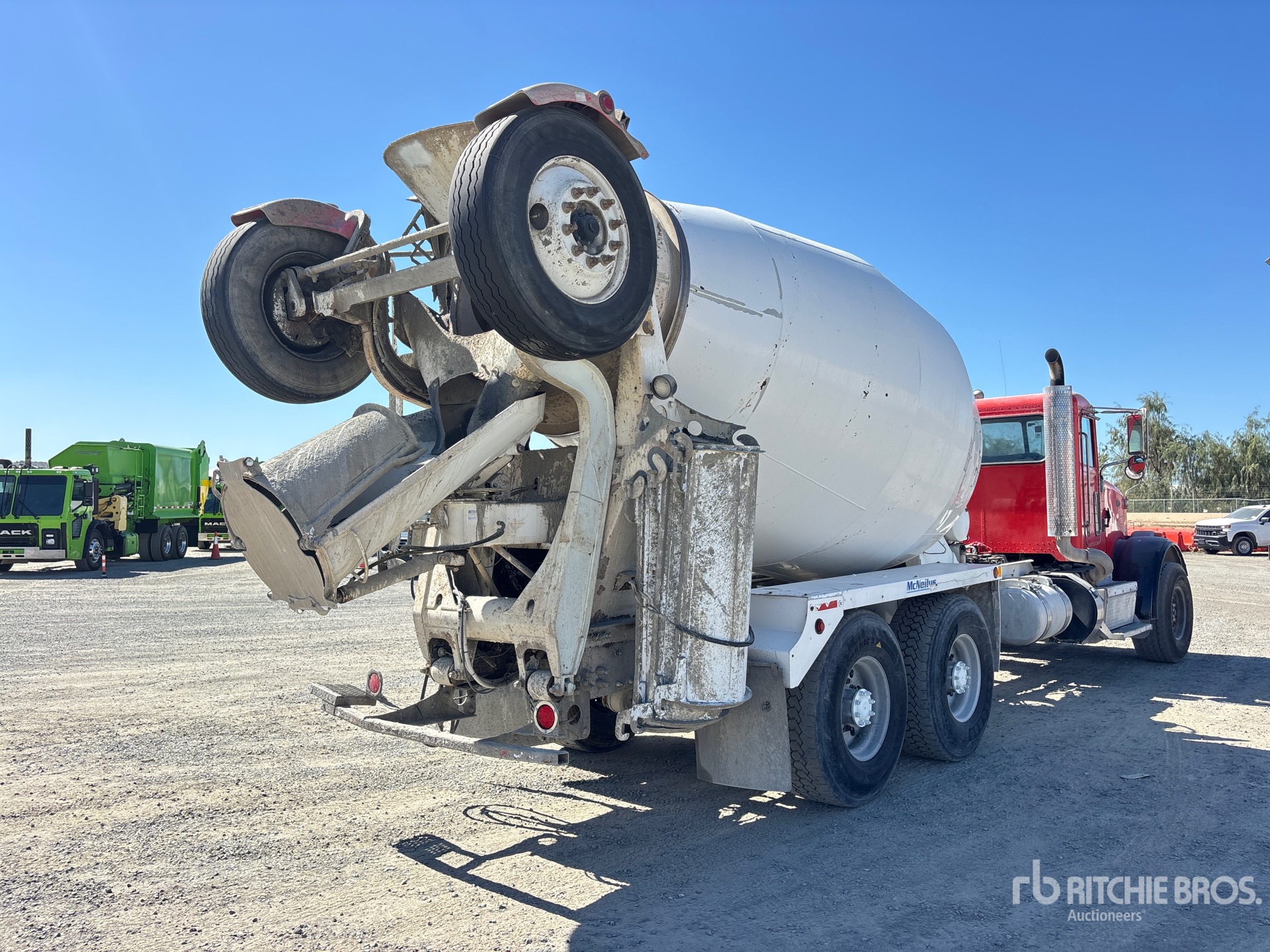 Cummins ISX 6 Cylinder Diesel Engine, Requires Diesel Exhaust Fluid, 26786 Engine hrs, Engine Brake, Allison Automatic Transmission, Differential Lock, 20000 lb Front Axle, 39000 lb Rears, 59000 lb GVWR, Aluminum Wheels, 425/65R22.5 Front Tires, 425/65R22.5 Super Singles Rear Tires, Steerable Air Lift Tag Axle, Trailing Tag Axle, Dual Steering Boxes, Spring Suspension, 251 in Wheelbase, PTO, McNeilus 10.5 cyd Mixer Unit, 3 Removable Chutes, Remote Control w/Cord