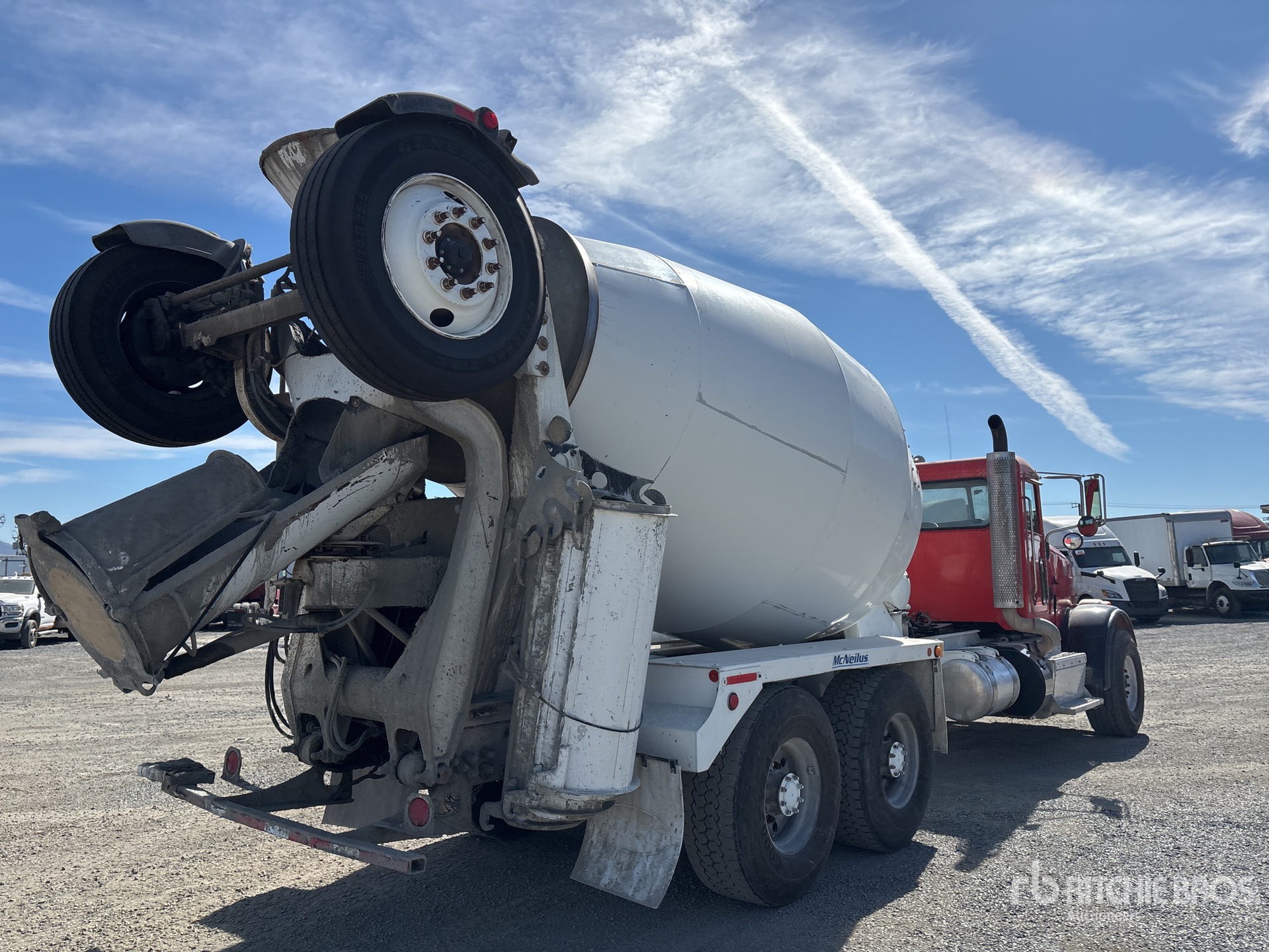 Cummins ISX12 6 Cylinder 11.9 L Diesel 320 hp Engine, 2013 US EPA Label, Requires Diesel Exhaust Fluid, 24686 Engine hrs, Allison Automatic Transmission, 20000 lb Front Axle, 52200 lb Rears, 72200 lb GVWR, 425/65R22.5, Air Lift Tag Axle, Trailing Tag Axle, Dual Steering Boxes, Walking Beam Suspension, 250 in Wheelbase, McNeilus Mixer Unit, 3 Removable Chutes, Remote Control w/Cord