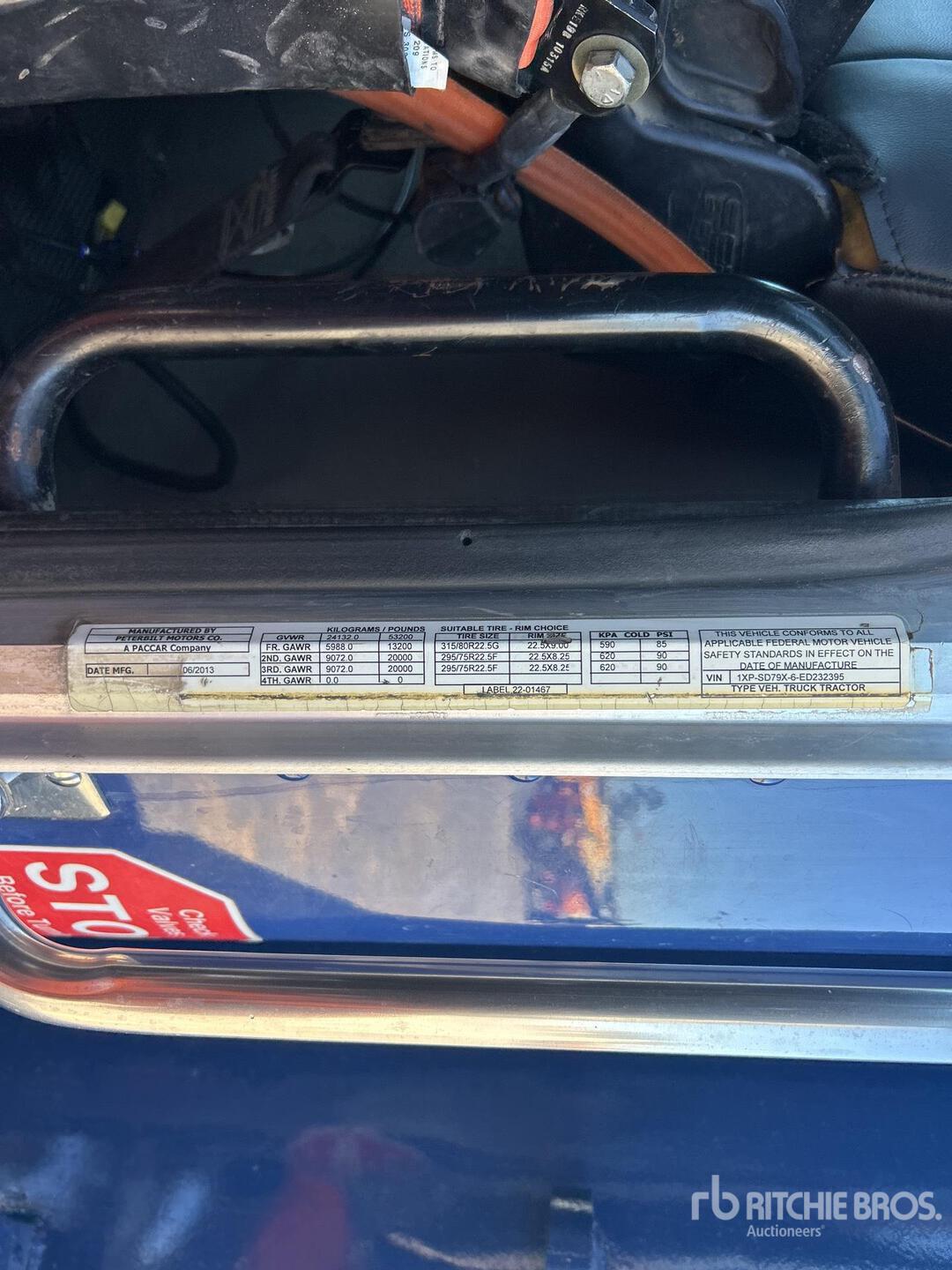 Cummins ISX12 6 Cylinder 11.9 L Diesel 385 hp Engine, 2013 US EPA Label, Requires Diesel Exhaust Fluid, 30184 Engine hrs, Eaton Fuller 8LL Manual Transmission, 13200 lb Front Axle, 40000 lb Rears, 53200 lb GVWR, Air Ride Cab, Aluminum Outer Wheels, 11R22.5, Air Trac Air Ride Suspension, 203 in Wheelbase, PTO, 14 ft 3 in Long x 5 ft 1 in High Steel Body, Round Bottom, Electric Roll Tarp