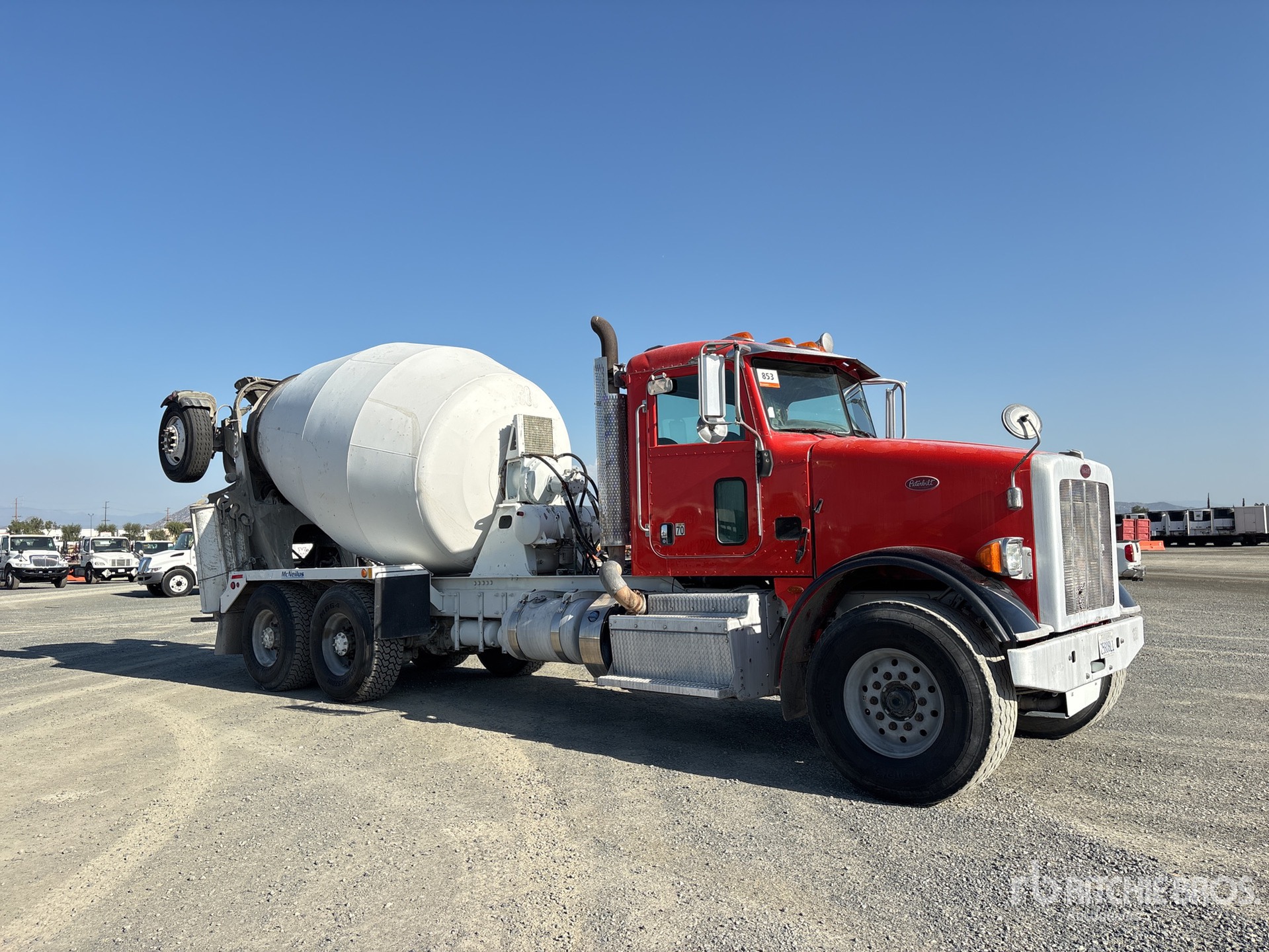 Cummins ISX12 6 Cylinder 11.9 L Diesel 320 hp Engine, 2013 US EPA Label, CARB Compliant, Requires Diesel Exhaust Fluid, 22974 Engine hrs, Engine Brake, Allison Automatic Transmission, 59000 lb GVWR, Air Ride Cab, Aluminum Wheels, 425/65R22.5 Front Tires, 425/65R22.5 Super Singles Rear Tires, Air Lift Tag Axle, Dual Steering Boxes, Hendrickson Walking Beam Suspension, 250 in Wheelbase, PTO, McNeilus 10.5 cyd Mixer Unit, 3 Removable Chutes, Remote Control w/Cord