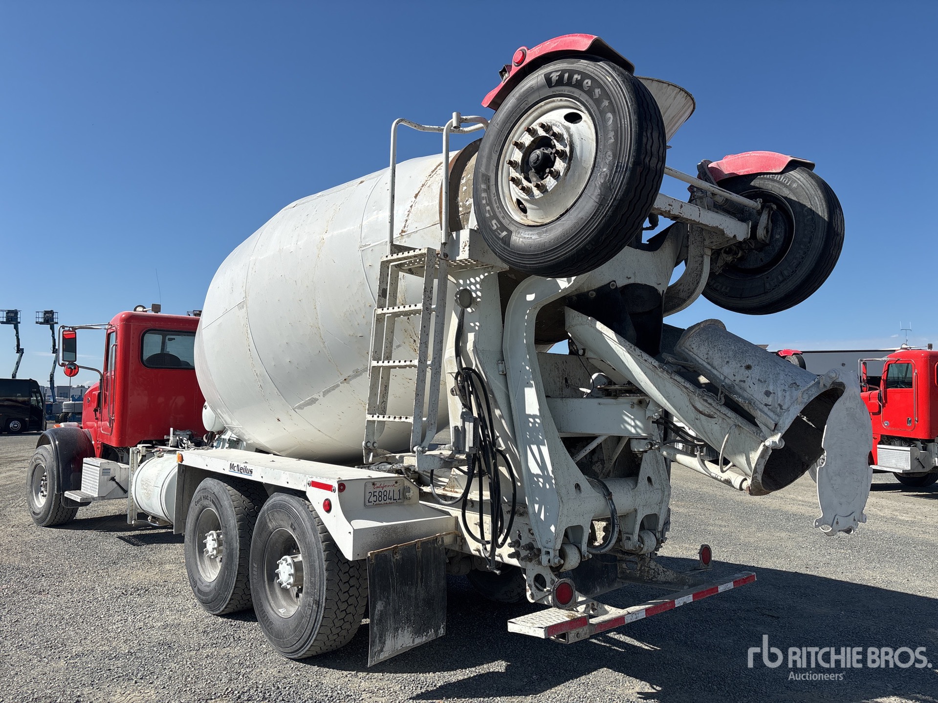 Cummins ISX12 6 Cylinder 11.9 L Diesel 320 hp Engine, 2013 US EPA Label, Requires Diesel Exhaust Fluid, 22700 Engine hrs, Allison Automatic Transmission, 20000 lb Front Axle, 39000 lb Rears, 59000 lb GVWR, 425/65R22.5, Trailing Tag Axle, Dual Steering Boxes, Double Frame, Hendrickson Walking Beam Suspension, 252 in Wheelbase, PTO, McNeilus Mixer Unit, 3 Removable Chutes, Remote Control w/Cord