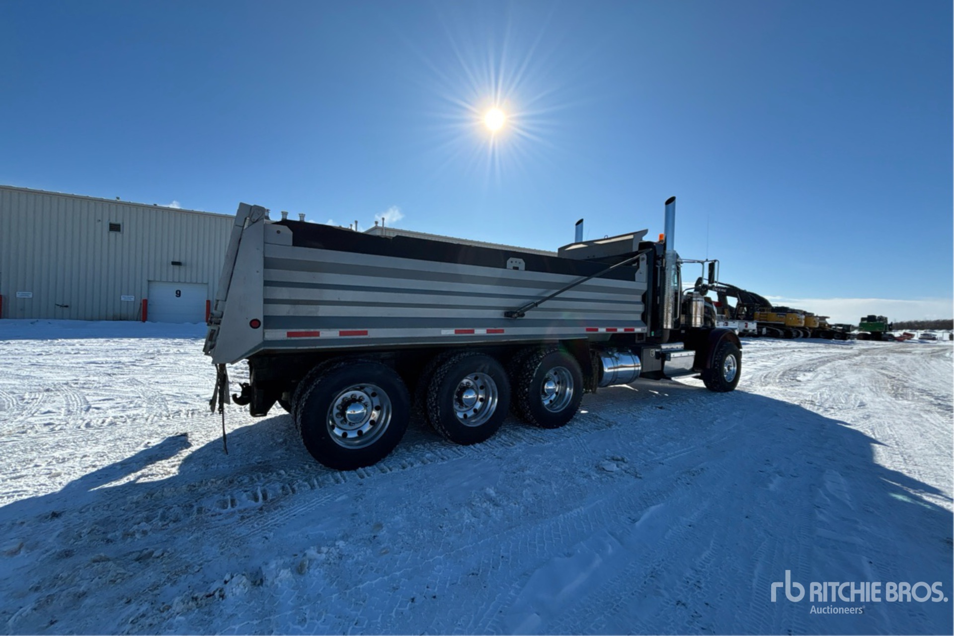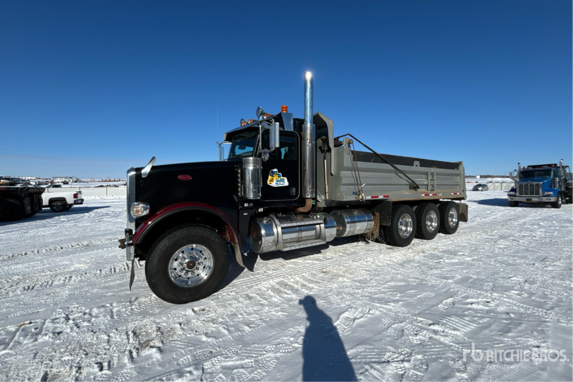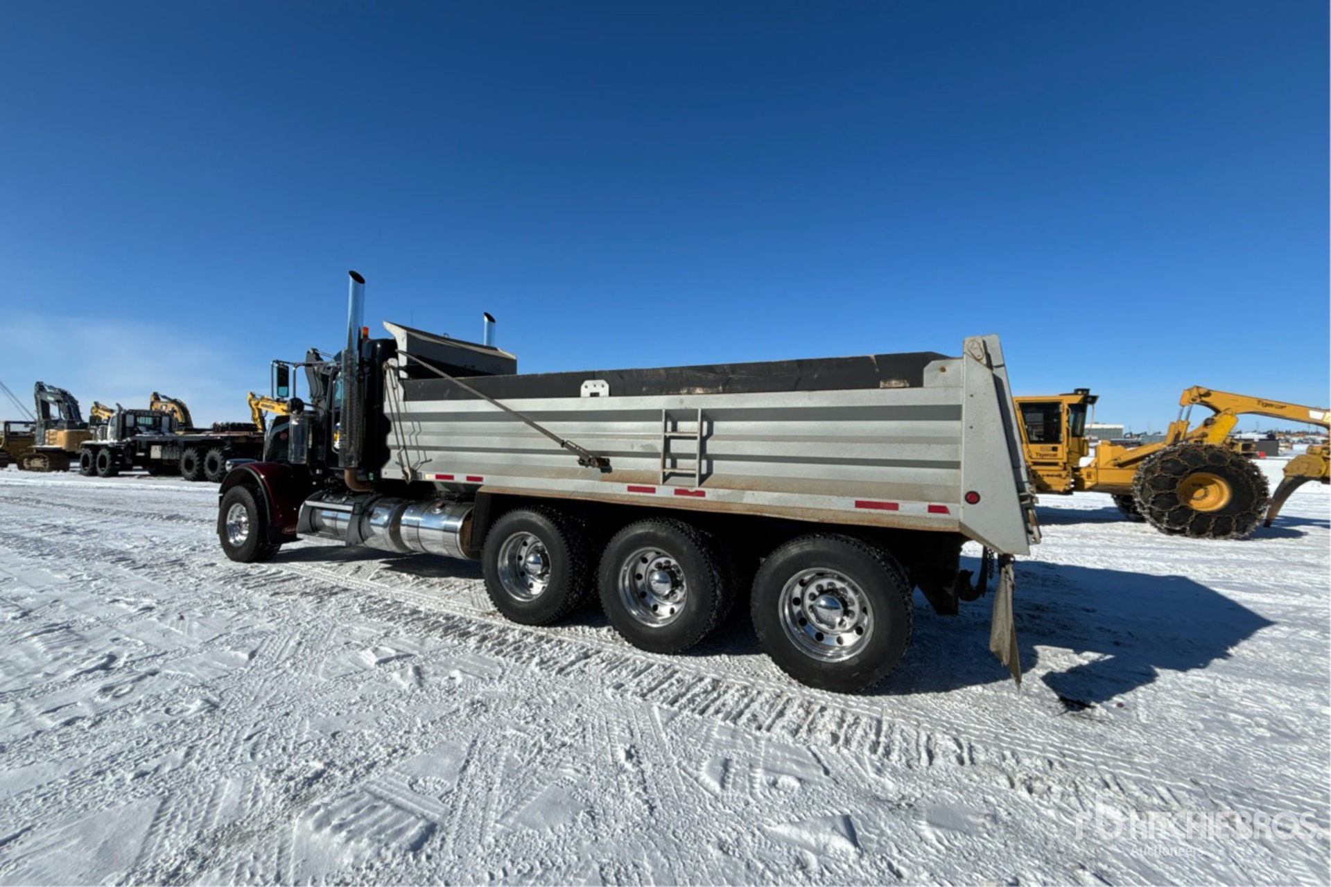Cummins ISX15 15 L Diesel 550 hp Engine, 2013 US EPA Label, CARB Compliant, 23452 Engine hrs, Engine Brake, Eaton Fuller 18-Speed Manual Transmission, Double Differential Locks, 20000 lb Front Axle, 64002 lb Rears, 84000 lb GVWR, Air Ride Cab, Aluminum Wheels, 425/65R22.5 Front Tires, 11R24.5 Rear Tires, Dual Steering Boxes, Double Frame, Air Ride Suspension, 262 in Wheelbase, PTO, 20 ft Long Steel Body, Manual Roll Tarp, Rear Hydraulics, Pintle Hitch