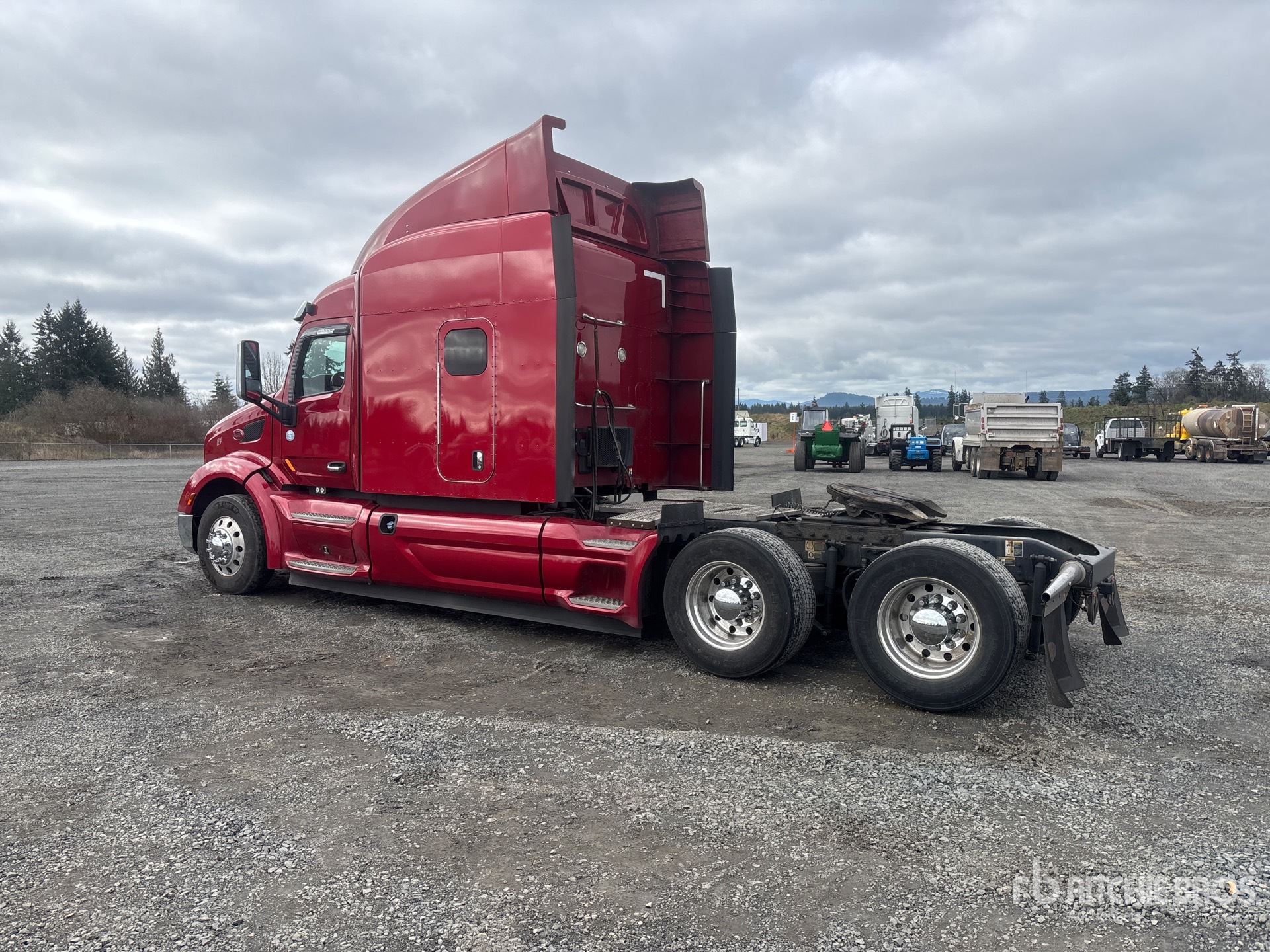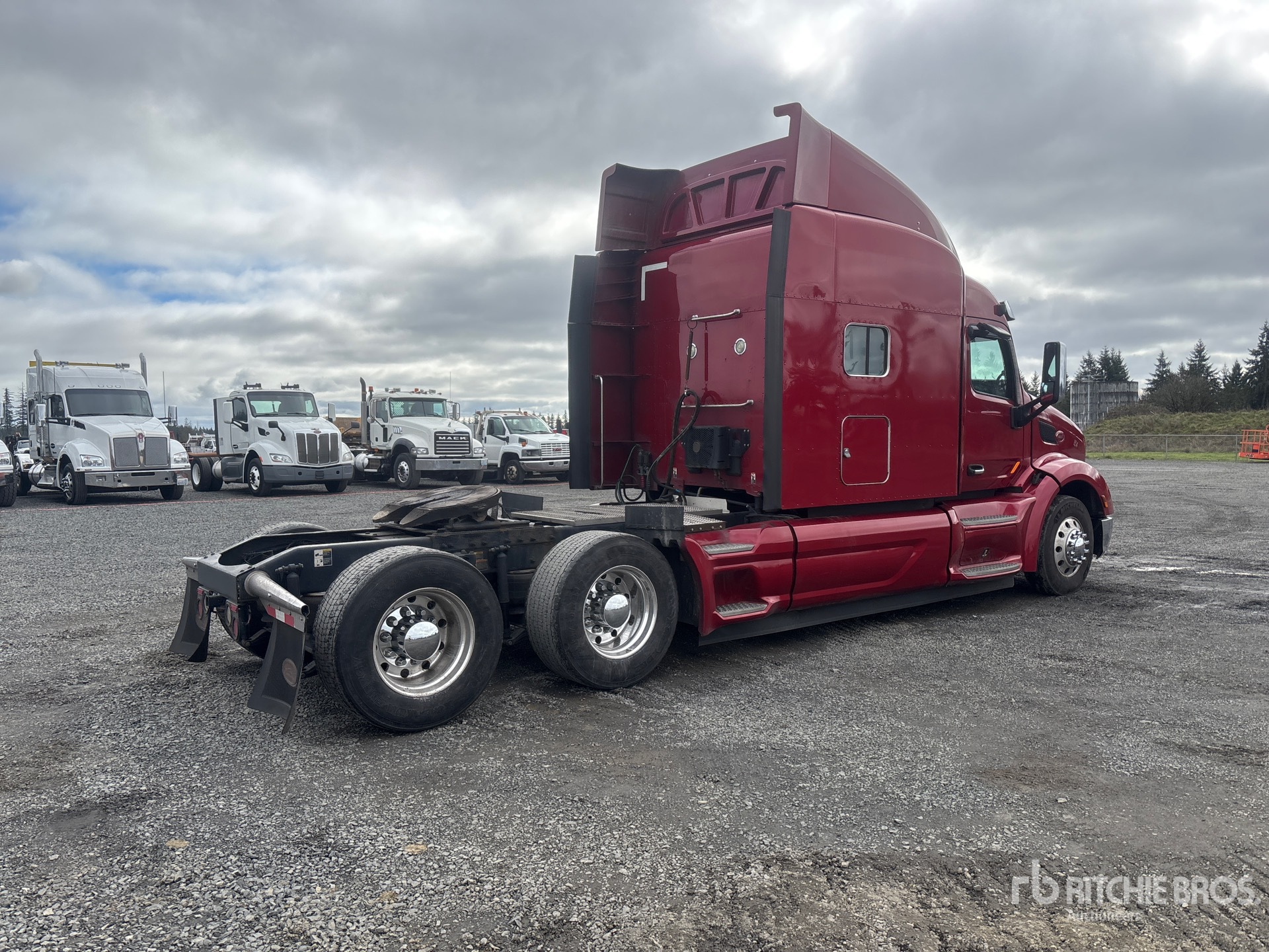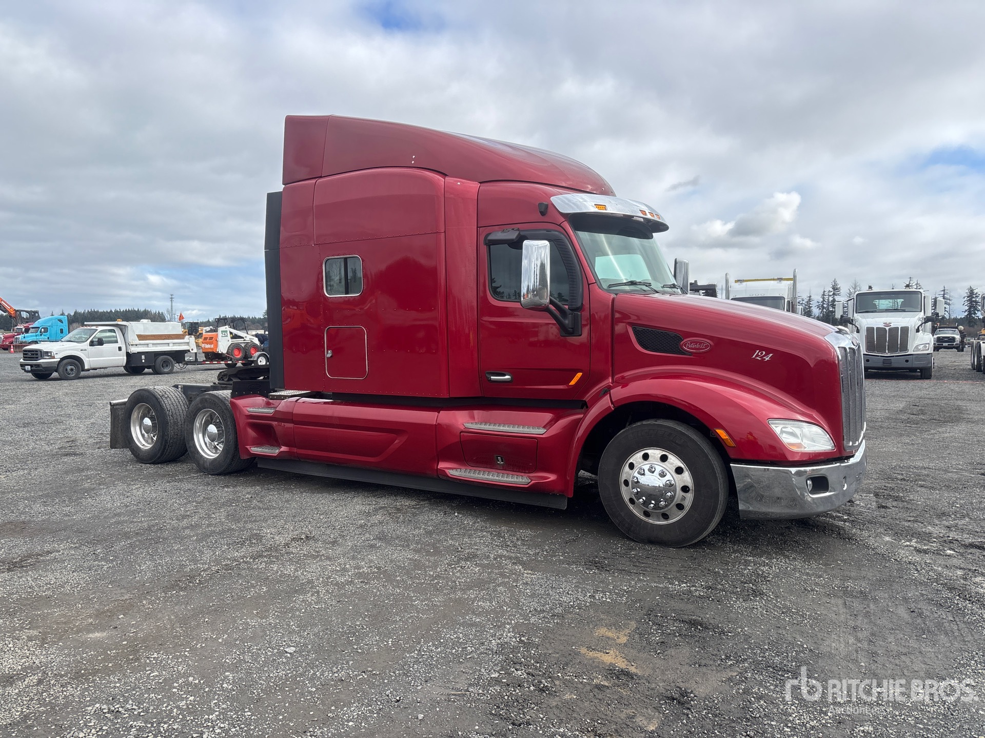 Paccar MX-13 375 hp Engine, 2013 US EPA Label, 14250 Engine hrs, Eaton Fuller Automated Transmission, 13200 lb Front Axle, 38000 lb Rears, 51200 lb GVWR, Engine Brake, Mid Roof Sleeper Cab, Bunk Beds, 246 in Wheelbase, Air Suspension, Aluminum Wheels, 295/75R22.5 Front Tires, 445/50R22.5 Super Singles Rear Tires, Air Assist Front Suspension, Air Sliding 5th Wheel, Dual Fuel Tanks