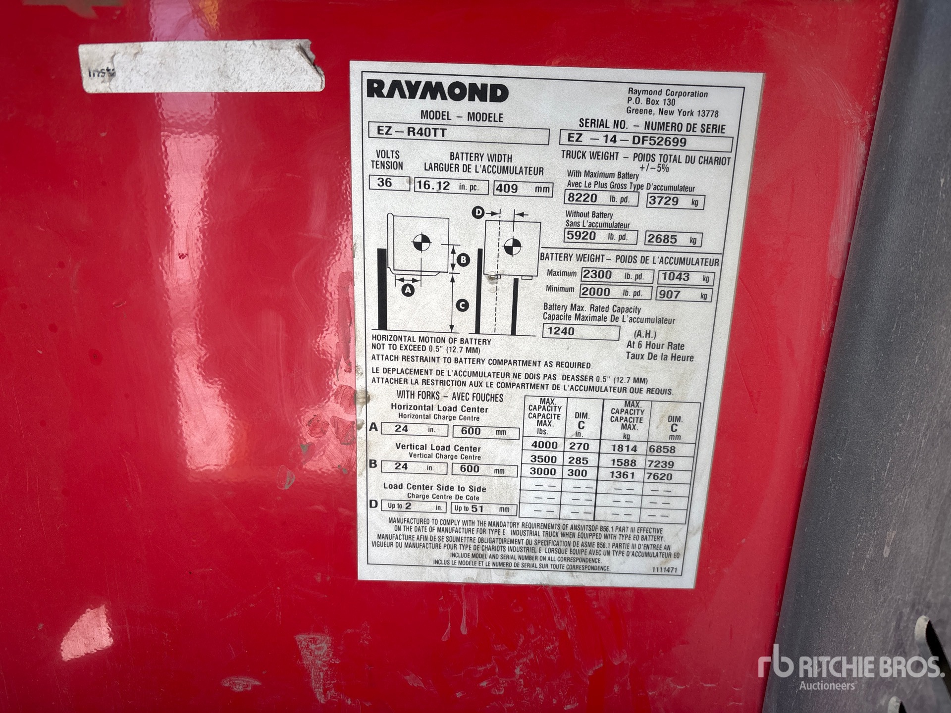 The detailed equipment information is limited in scope, and Ritchie Bros. Auctioneers has not inspected any aspects or components of the equipment other than those expressly set forth herein. Unless expressly stated, we make no representations or warranties, express or implied, concerning the equipment or its components, including without limitation any representations or warranties concerning functionality, conformity or compliance with any safety standard or requirement of any applicable authority or regulatory body, fitness for any particular purpose, or merchantability. You are strongly advised to perform your own detailed inspection of the equipment prior to bidding.