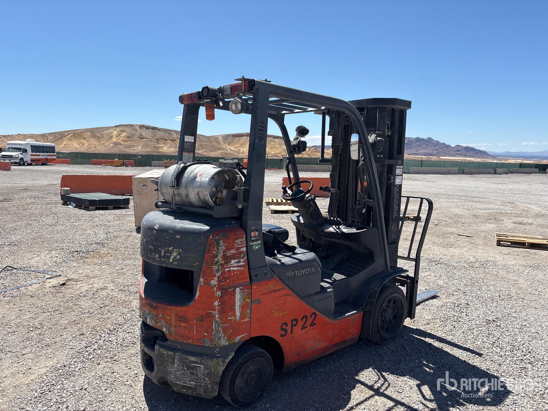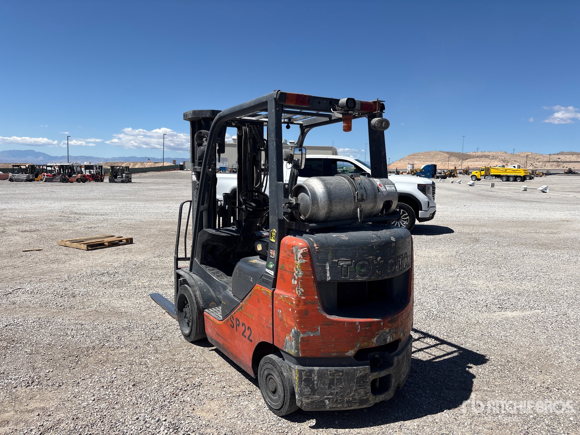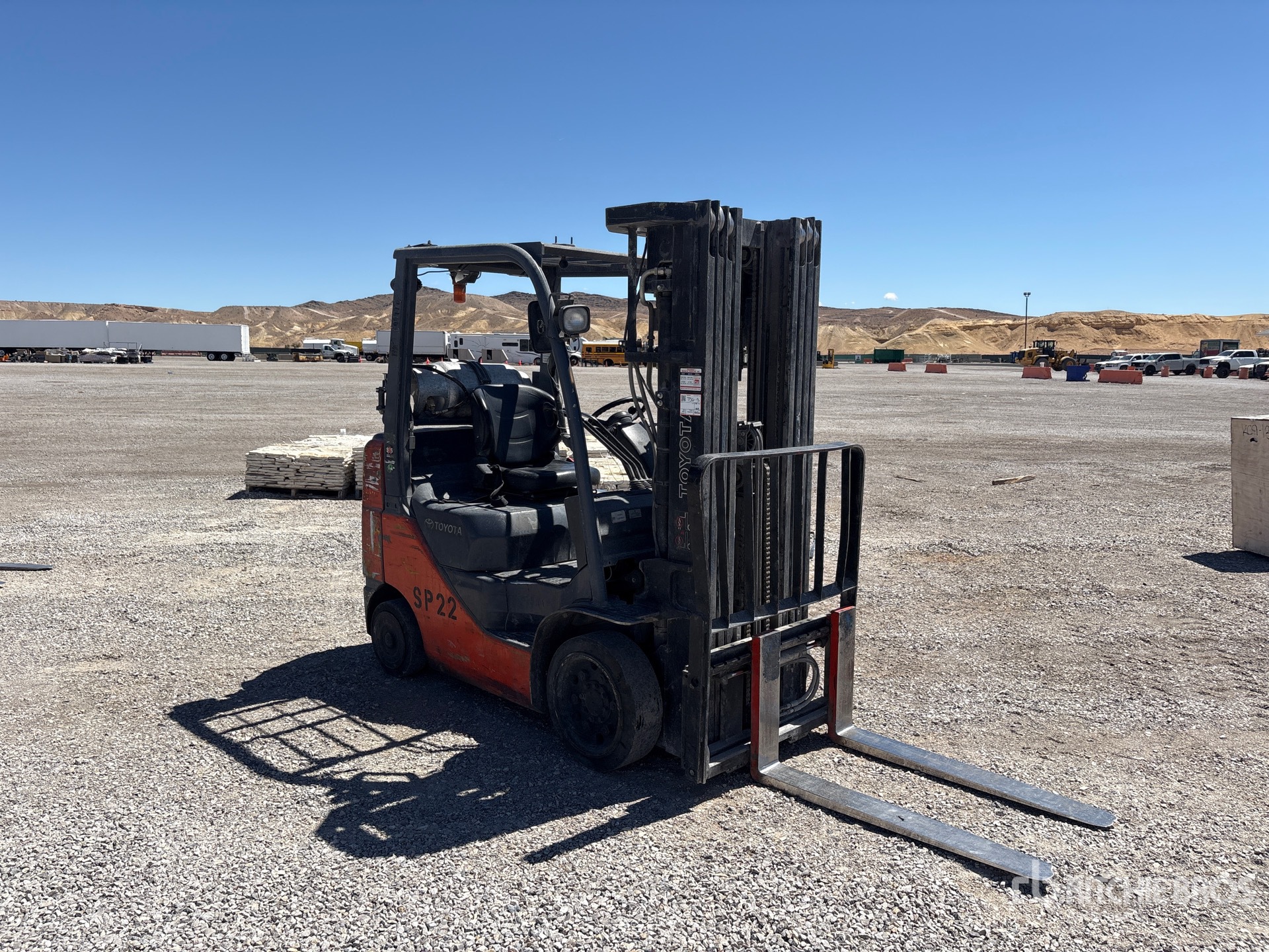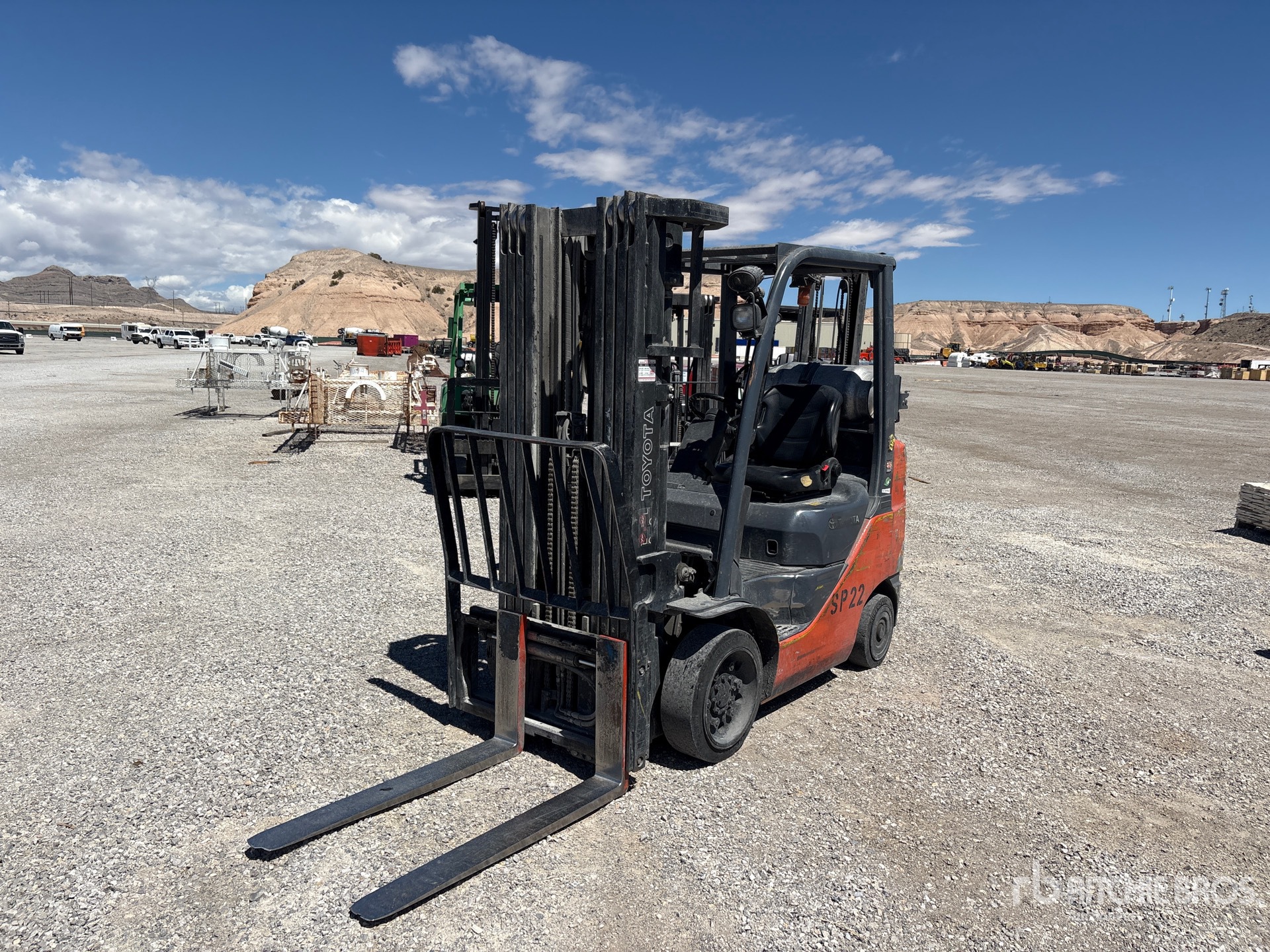 4 Stage Mast, 240 in Max Lift Height, 83 in Lowered Mast Height, 41 in Forks, Side Shift, Solid Pneumatic Tires, Toyota 4 Cylinder LPG Engine