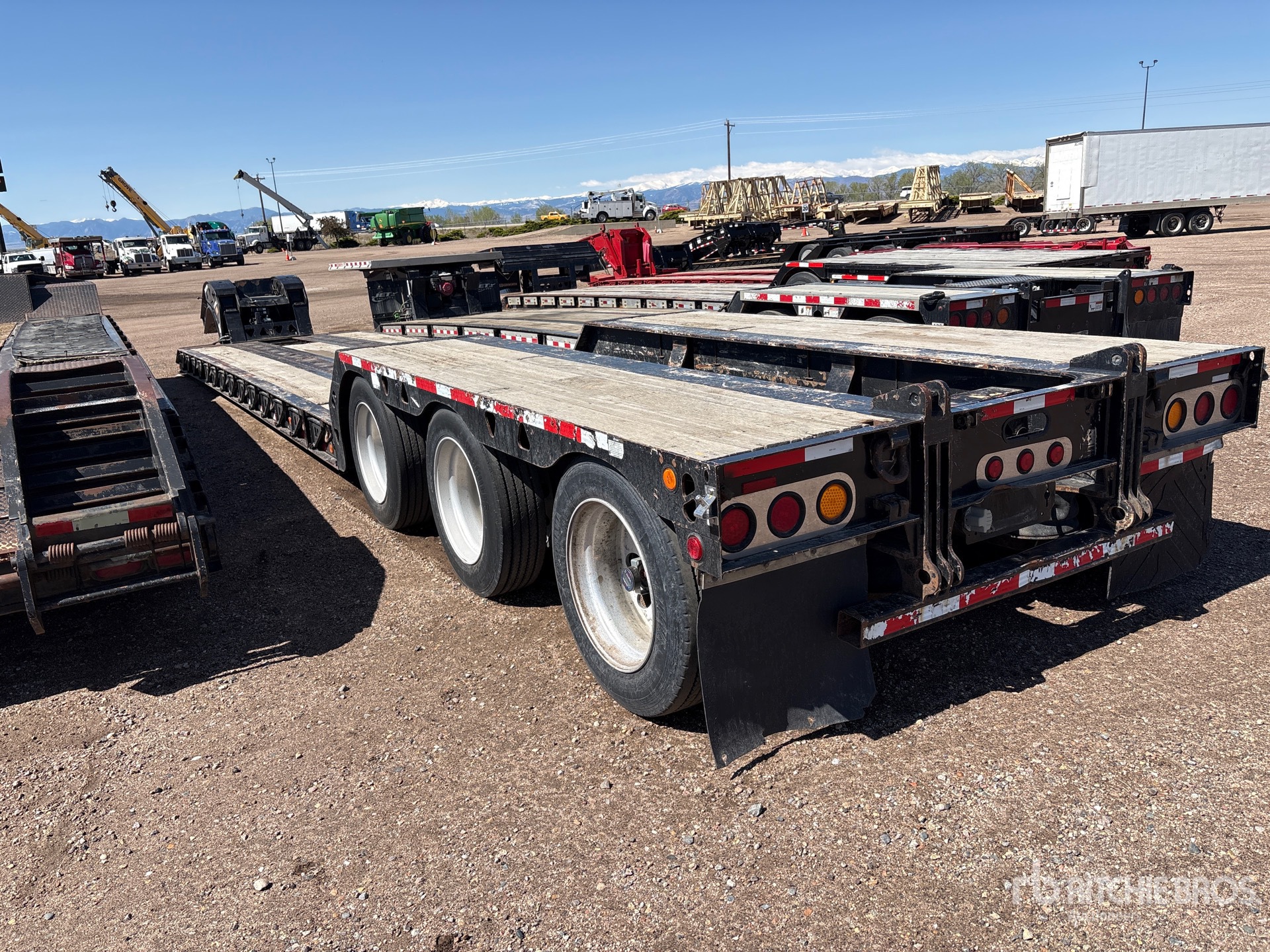 116700 lb GVWR, Hydraulic Removable Gooseneck, 33 ft 5 in x 102 in Main Deck, 120 mm Widening Width, Deck Over Tires, Folding Side Extensions, Air Ride Suspension, Plumbed for Booster Axle, Gasoline Driven Self Contained Hydraulic System