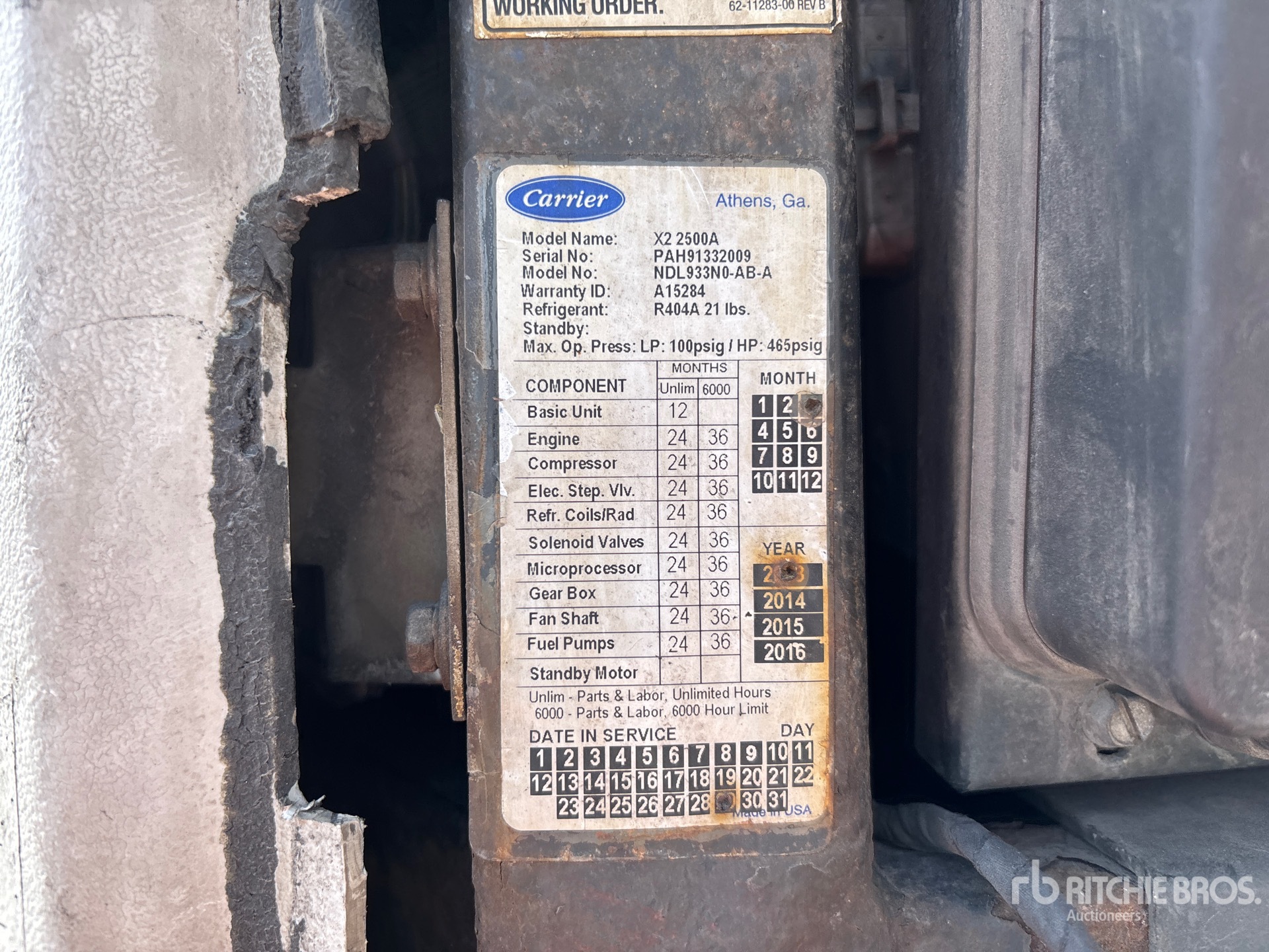 Refrigeration Unit Serial Number