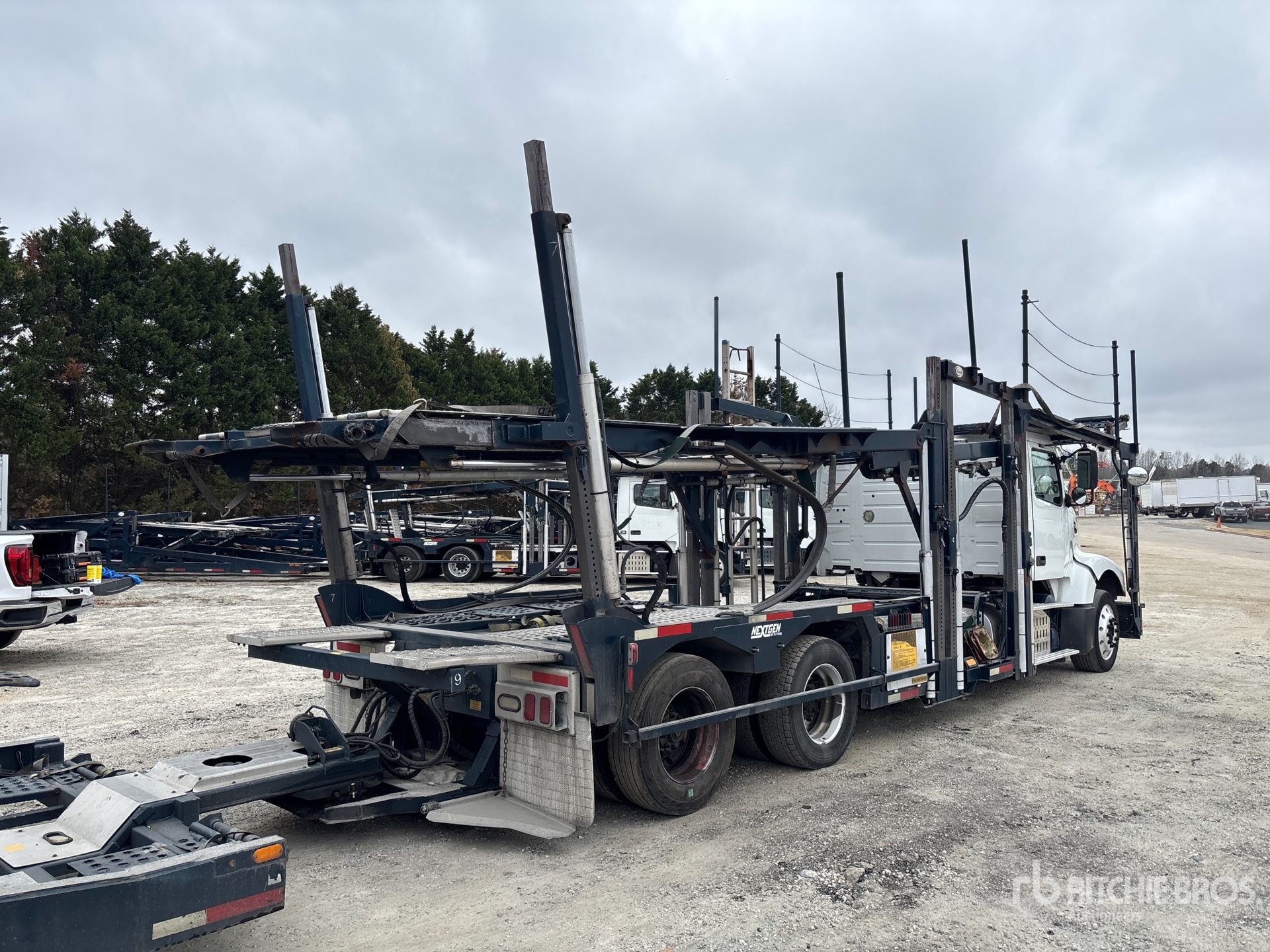 Volvo D11H404 6 Cylinder 10.8 L Diesel 405 hp Engine, 2013 US EPA Label, Requires Diesel Exhaust Fluid, 20688.2 Engine hrs, Engine Brake, Eaton Fuller FRO-14210C 10-Speed Manual Transmission, 14600 lb Front Axle, 38000 lb Rears, 3.07:1 Axle Ratio, 45000 lb GVWR, Aluminum Wheels, 295/60R22.5 Front Tires, 265/70R19.5 Rear Tires, Volvo Air Ride Suspension, 250 in Wheelbase, Hydraulic Lift, Soft Tie Downs, SOLD WITH - 2013 Cottrell CX-09LS2 T/A, Trailer S/N - 5E0AA1444EG508507, Soft Ties, Aluminum Wheels, 265/70R19.5 Tires