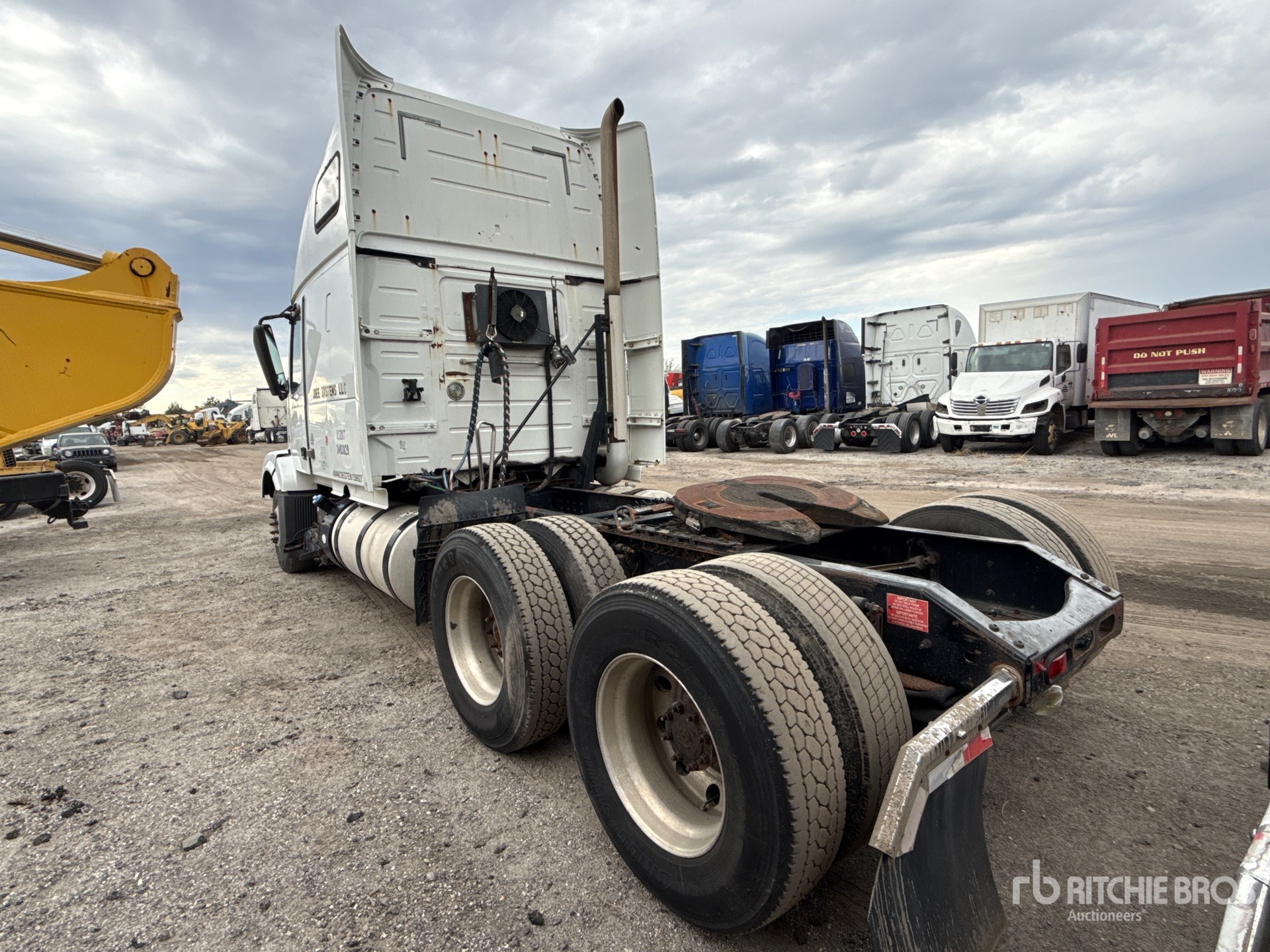 Volvo D13H 405 hp Engine, 2013 US EPA Label, 12350 lb Front Axle, 38000 lb Rears, 50350 lb GVWR, 61 in High Rise Sleeper Cab, Bunk Beds, 214 in Wheelbase, Air Suspension, Aluminum Outer Wheels, 295/75R22.5, Air Sliding 5th Wheel, Dual Fuel Tanks, Lowboy Ramps