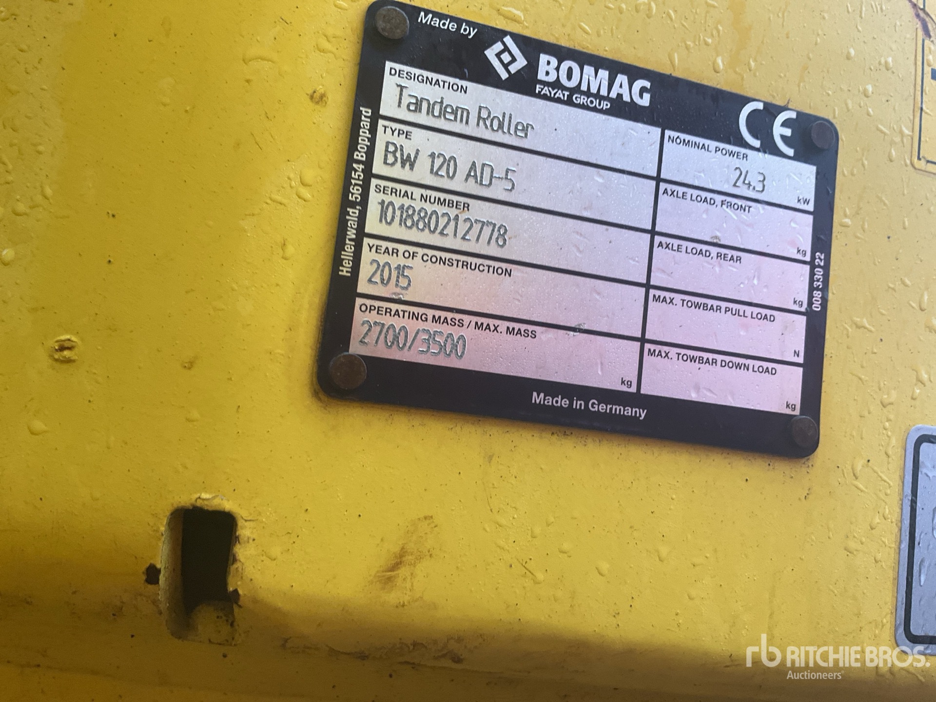 A qualified Ritchie Bros. employee collected detailed equipment information and performed functional tests on the key components of this asset. You, or a proxy, may also inspect any items on site prior to bidding on auction day.