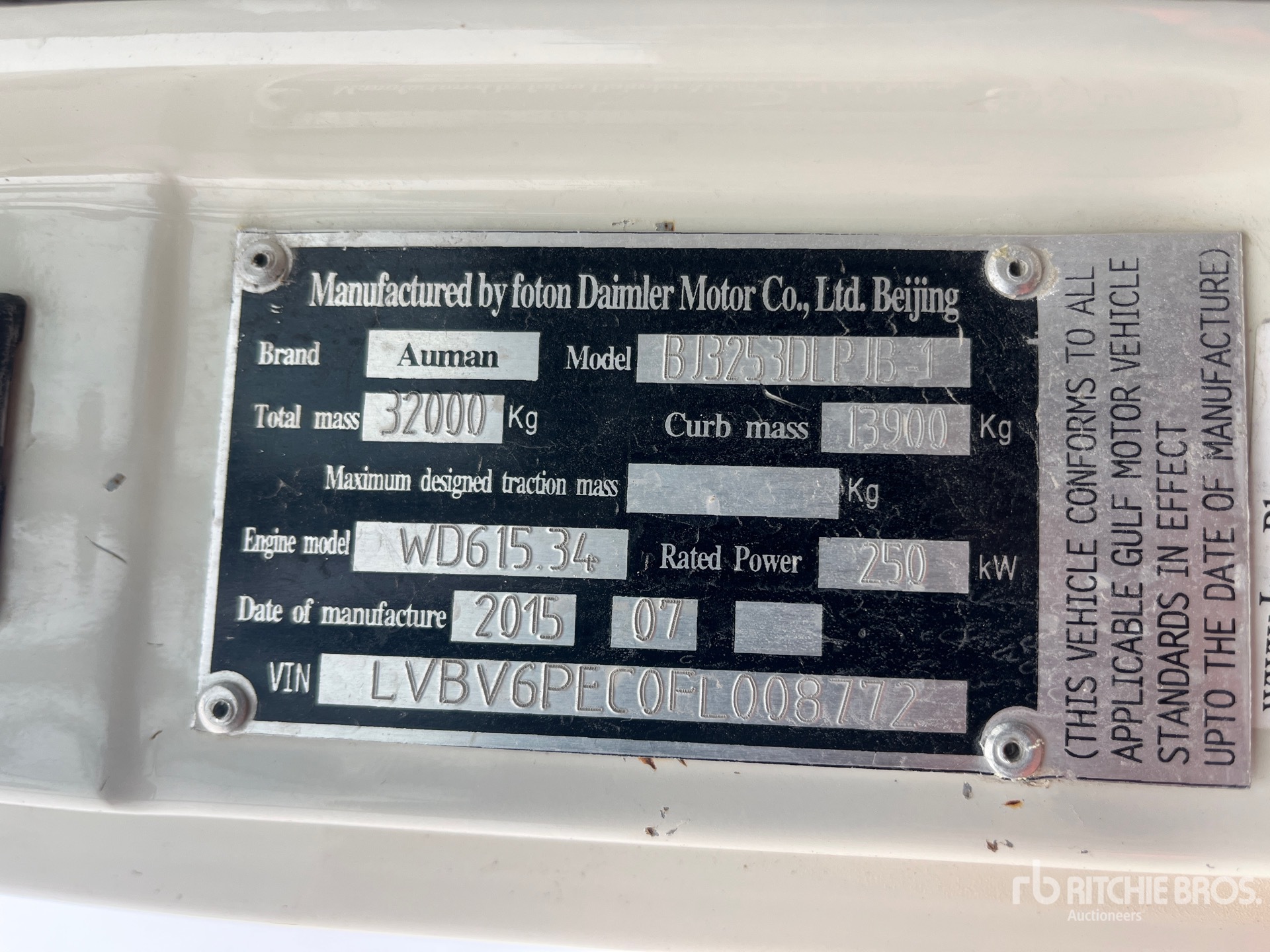 The detailed equipment information is limited in scope, and Ritchie Bros. Auctioneers has not inspected any aspects or components of the equipment other than those expressly set forth herein. Unless expressly stated, we make no representations or warranties, express or implied, concerning the equipment or its components, including without limitation any representations or warranties concerning functionality, conformity or compliance with any safety standard or requirement of any applicable authority or regulatory body, fitness for any particular purpose, or merchantability. You are strongly advised to perform your own detailed inspection of the equipment prior to bidding.