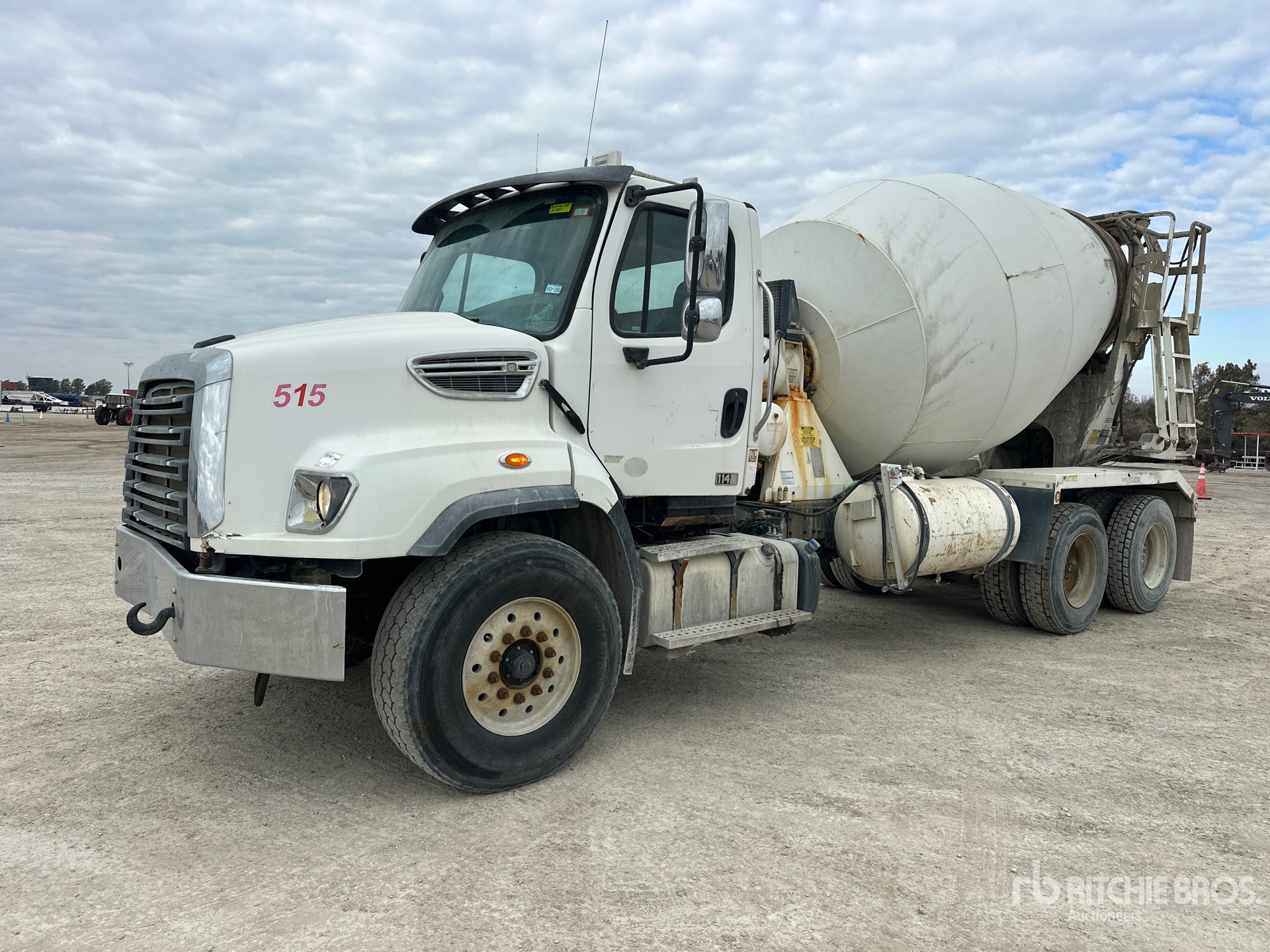 Detroit DD13 6 Cylinder 12.8 L Diesel 410 hp Engine, Requires Diesel Exhaust Fluid, 18239 Engine hrs, Engine Brake, Allison 4500 Automatic Transmission, Differential Lock, 22000 lb Front Axle, 46000 lb Rears, Meritor RT-46-160 Drive Axles, 4.89:1 Axle Ratio, 68000 lb GVWR, Air Ride Cab, Aluminum Front Wheels, 425/65R22.5 Front Tires, 11R22.5 Rear Tires, Dual Steering Boxes, Double Frame, 230 in Wheelbase, PTO, Beck Mixer Unit, 3 Removable Chutes