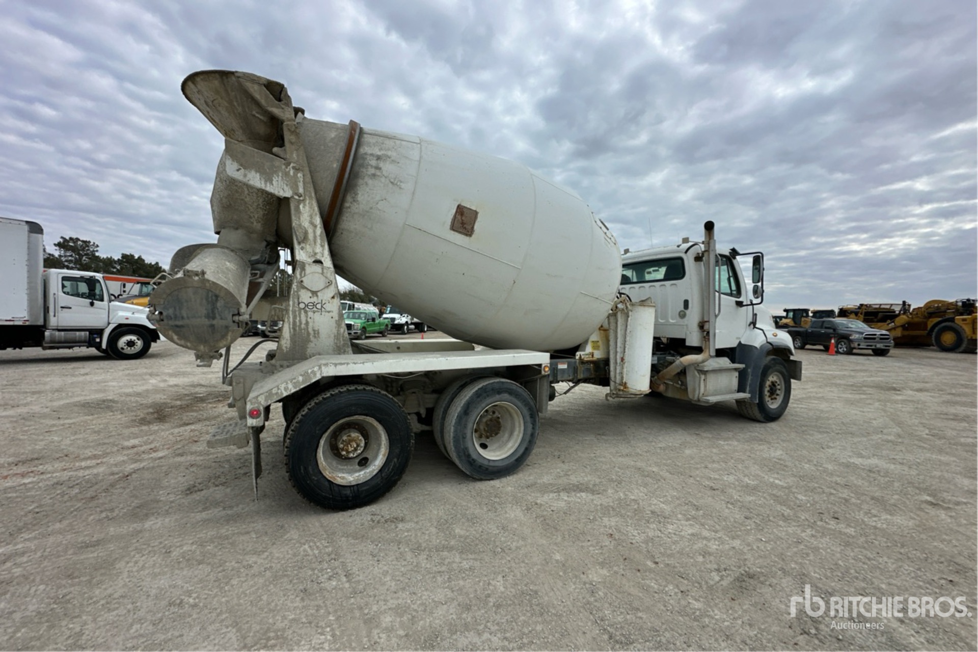 Detroit DD13 6 Cylinder 12.8 L Diesel 410 hp Engine, Requires Diesel Exhaust Fluid, 18239 Engine hrs, Engine Brake, Allison 4500 Automatic Transmission, Differential Lock, 22000 lb Front Axle, 46000 lb Rears, Meritor RT-46-160 Drive Axles, 4.89:1 Axle Ratio, 68000 lb GVWR, Air Ride Cab, Aluminum Front Wheels, 425/65R22.5 Front Tires, 11R22.5 Rear Tires, Dual Steering Boxes, Double Frame, 230 in Wheelbase, PTO, Beck Mixer Unit, 3 Removable Chutes, DD13, Allison 4500 Automatic, 10.5 yd Beck Drum