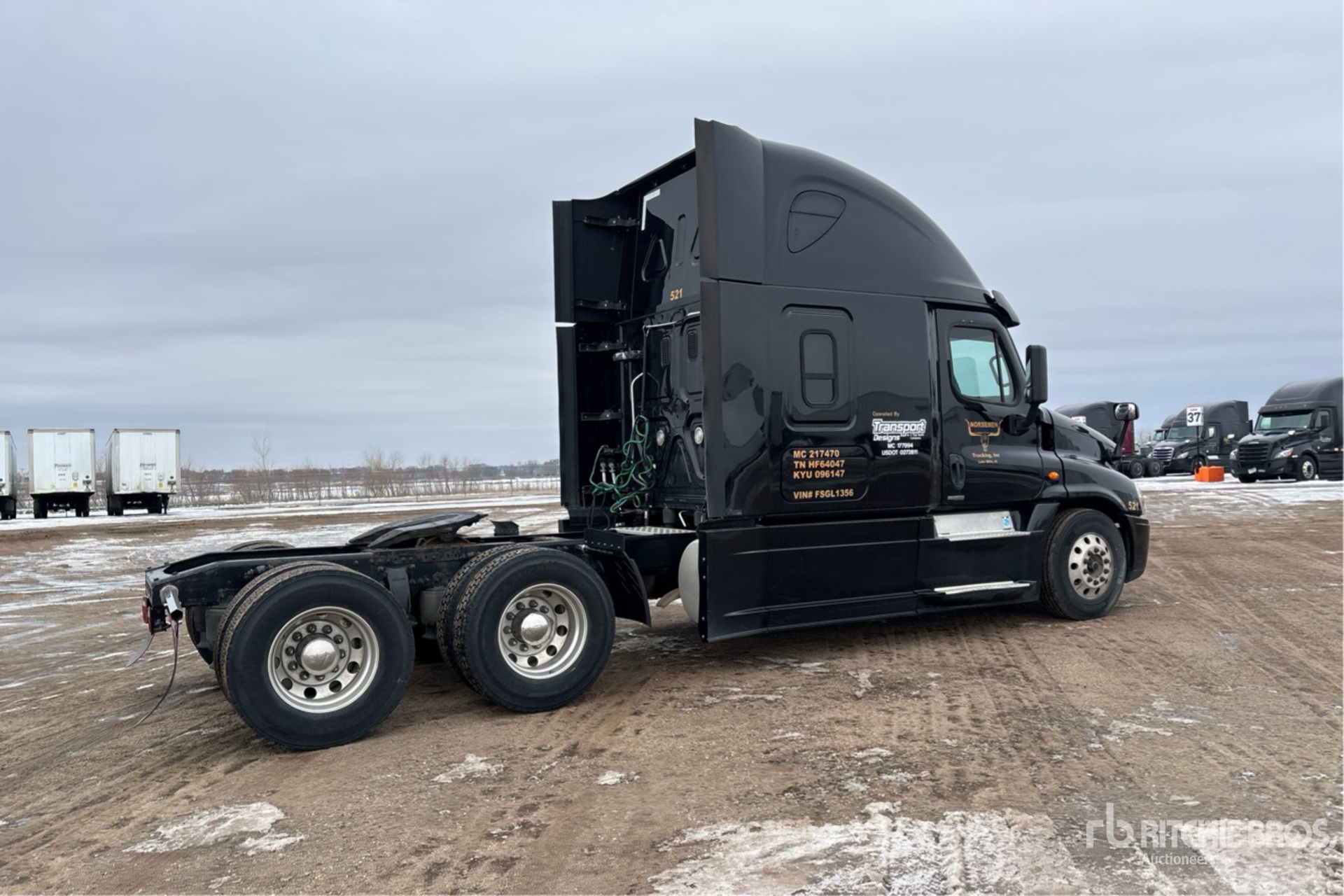 Located in Lane 26 Spot 32, Detroit DD15 455 hp Engine, 2014 US EPA Label, 20771 Engine hrs, Detroit DT12-DA-1650 12-Speed Automated Transmission, 13300 lb Front Axle, 40000 lb Rears, 53300 lb GVWR, Engine Brake, 70 in High Rise Sleeper Cab, 232 in Wheelbase, Air Suspension, Aluminum Wheels, 295/75R22.5 Front Tires, 275/80R22.5 Rear Tires, Dual Fuel Tanks