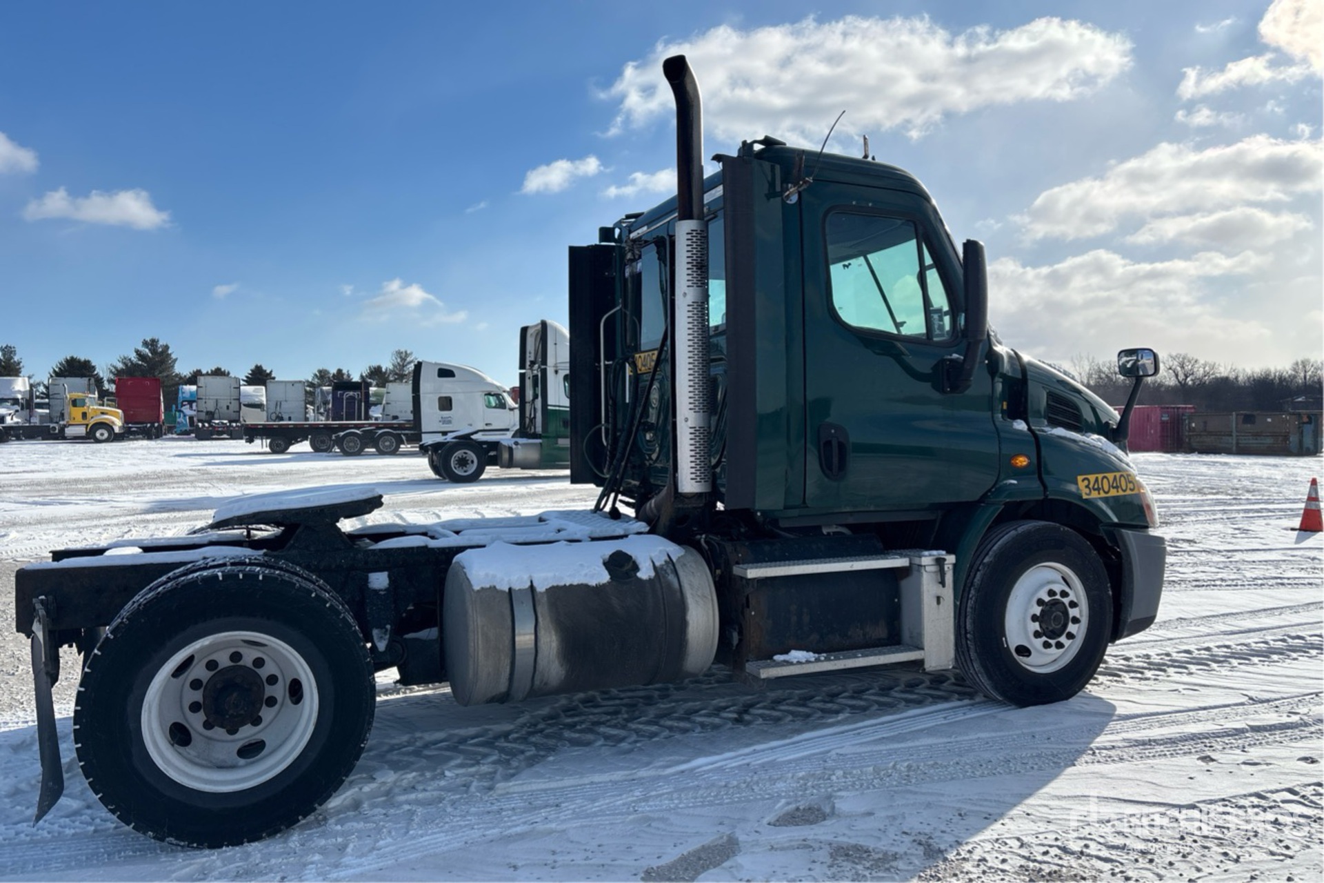 Detroit DD13 410 hp Engine, 2014 US EPA Label, 21267 Engine hrs, Eaton Fuller FRW-15210B 10-Speed Manual Transmission, 12000 lb Front Axle, 21000 lb Rears, 33000 lb GVWR, 156 in Wheelbase, Air Suspension, 275/80R22.5 Front Tires, 295/75R22.5 Rear Tires, Dual Fuel Tanks