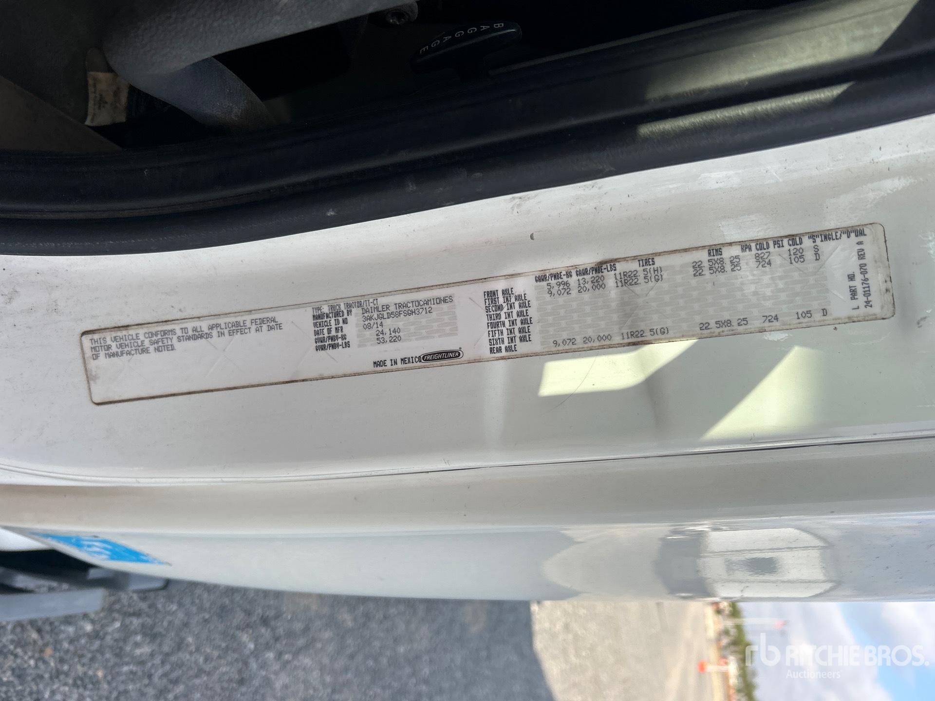 Located in Lane 27 Spot 26, Detroit DD15 455 hp Engine, 2014 US EPA Label, 17399 Engine hrs, Detroit DT12-1650-OH1 12-Speed Automated Transmission, 13220 lb Front Axle, 40000 lb Rears, 53220 lb GVWR, Engine Brake, 70 in High Rise Sleeper Cab, Bunk Beds, 228 in Wheelbase, Air Suspension, Aluminum Wheels, 11R22.5, Air Sliding 5th Wheel, Dual Fuel Tanks