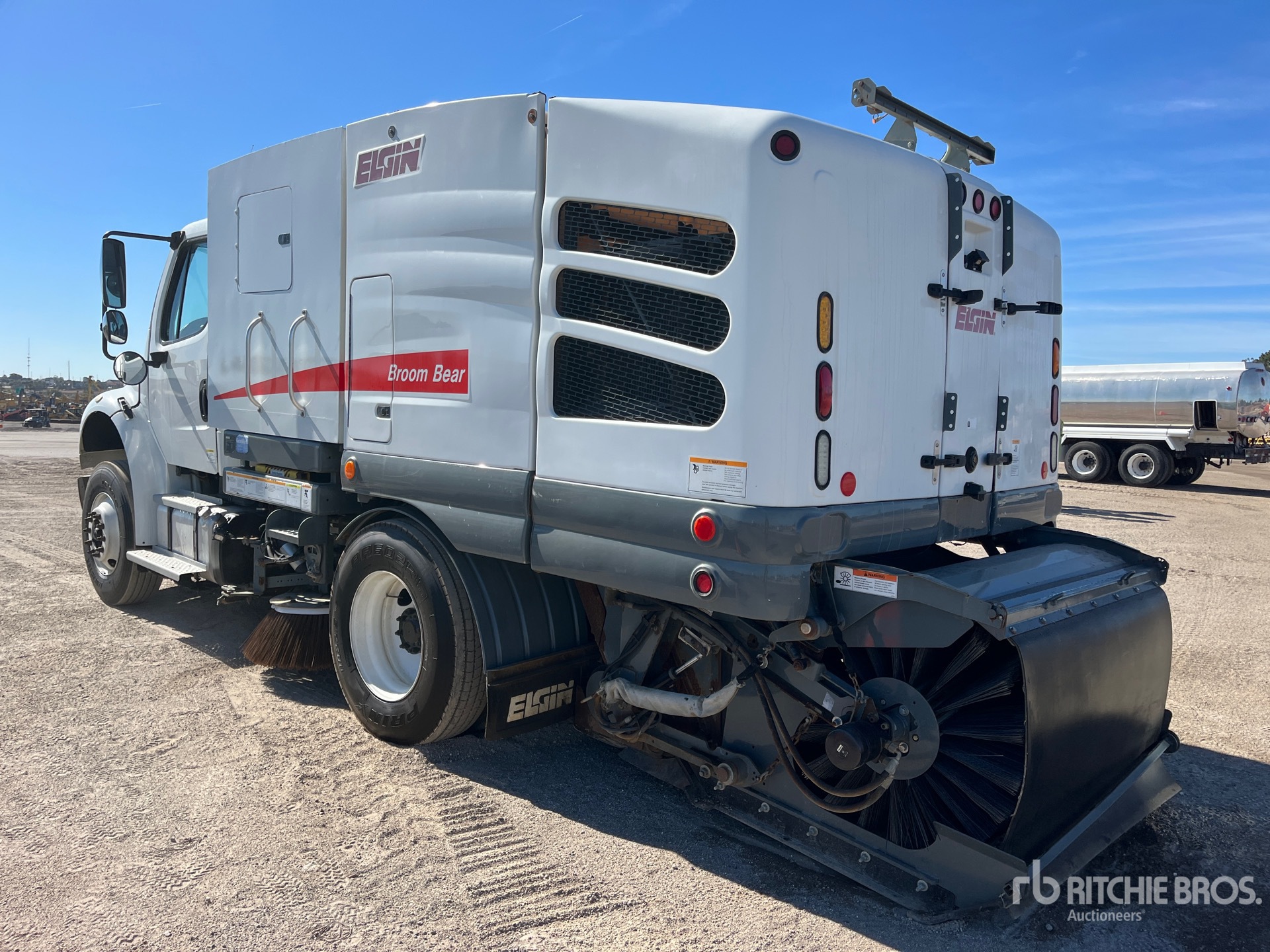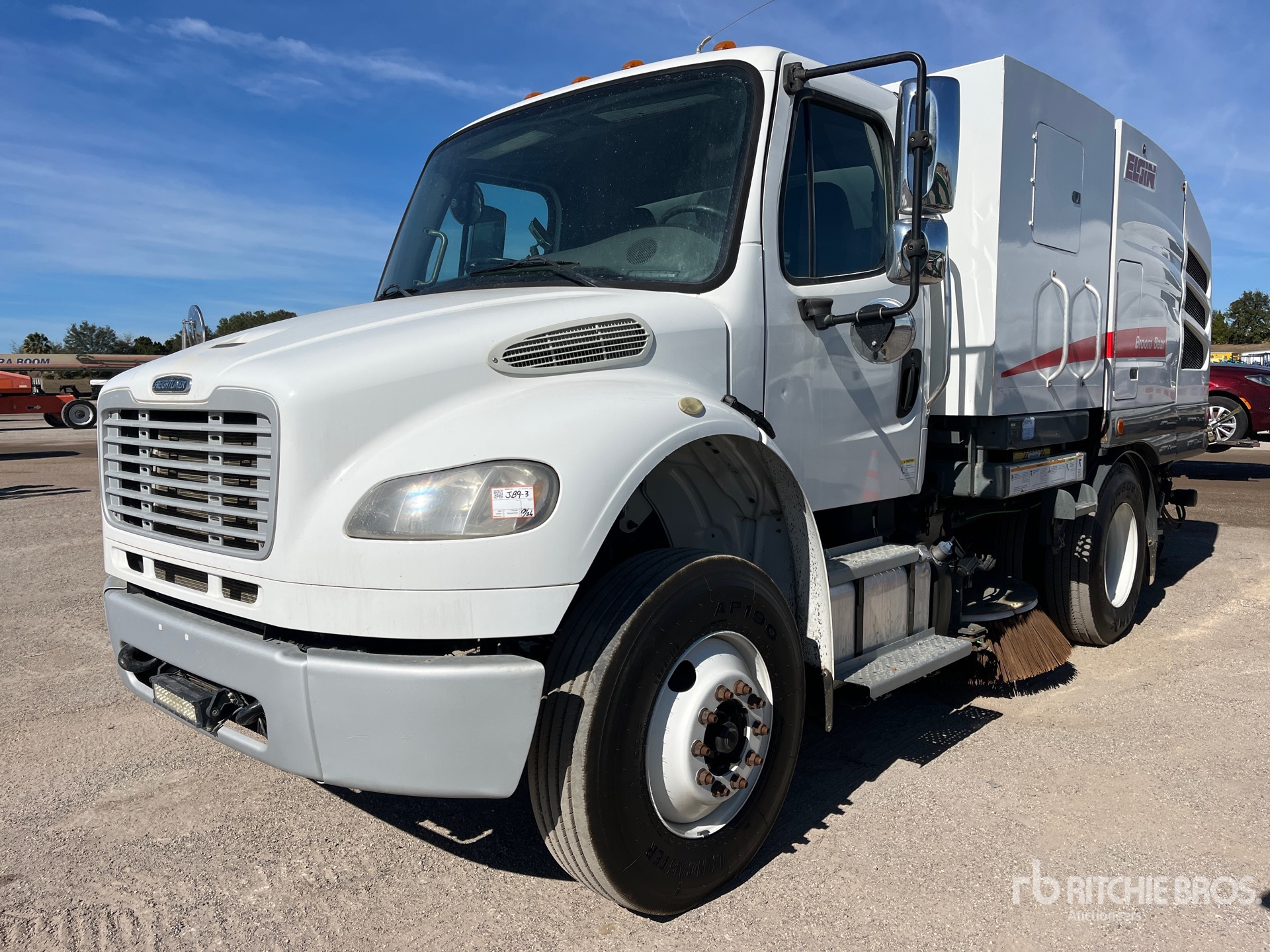 Cummins 6 Cylinder Diesel 260 hp Engine, Requires Diesel Exhaust Fluid, 14478 Engine hrs, Allison 3500 Automatic Transmission, 10000 lb Front Axle, 23000 lb Rears, Dana Drive Axles, 6.17:1 Axle Ratio, 33000 lb GVWR, 11R22.5, Air Ride Suspension, 145 in Wheelbase, PTO, Mechanical Broom Sweeper, Dual Controls, 60 in Rear Broom, Gutter Brooms, Material Elevator, Hydraulic Dump, Rear-View Camera