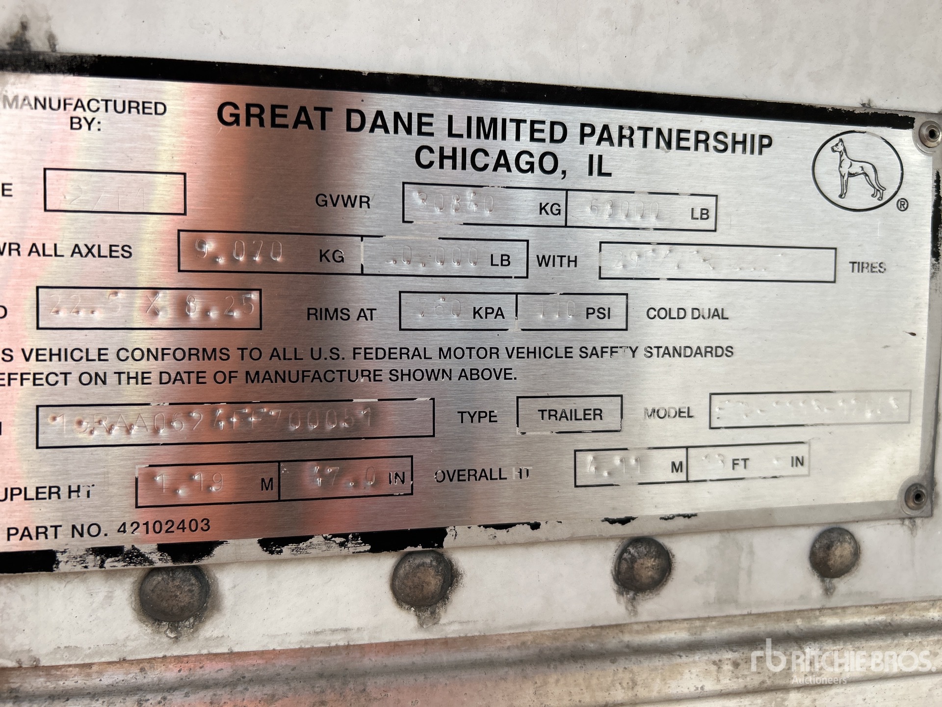 The detailed equipment information is limited in scope, and Ritchie Bros. Auctioneers has not inspected any aspects or components of the equipment other than those expressly set forth herein. Unless expressly stated, we make no representations or warranties, express or implied, concerning the equipment or its components, including without limitation any representations or warranties concerning functionality, conformity or compliance with any safety standard or requirement of any applicable authority or regulatory body, fitness for any particular purpose, or merchantability. You are strongly advised to perform your own detailed inspection of the equipment prior to bidding.