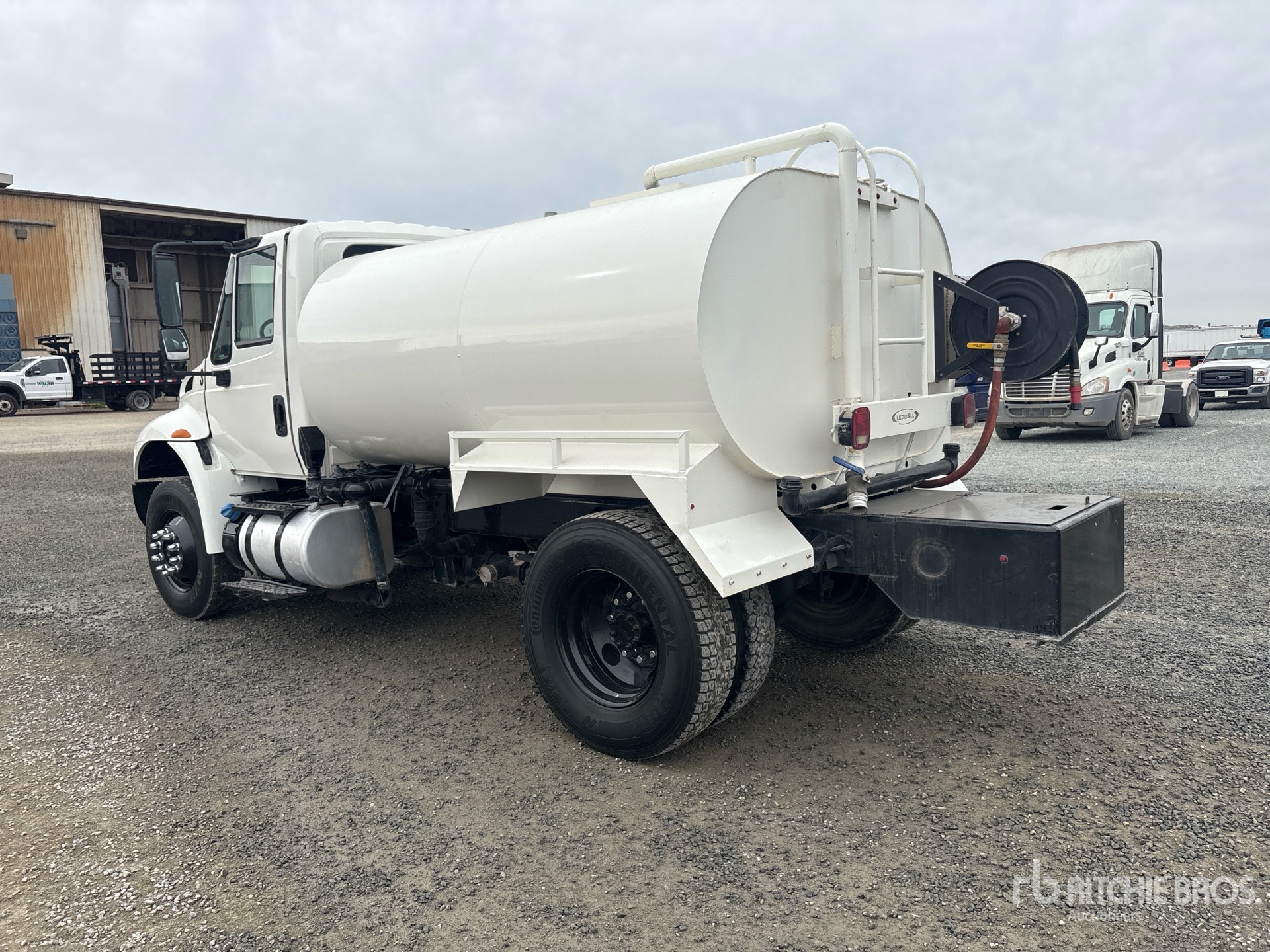 Located in Lane 9 Spot 42, Cummins B6.7 6 Cylinder 6.7 L Diesel 200 hp Engine, 2014 US EPA Label, Requires Diesel Exhaust Fluid, Allison 10-Speed Automatic Transmission, 13000 lb Front Axle, 20000 lb Rears, 33000 lb GVWR, 11R22.5, Spring Suspension, 163 in Wheelbase, PTO, Ledwell 2000 gal Steel Tank, Berkley PTO Driven Pump, 5 ft 4 in, Spray Bar, Hose Reel, Front Spray, Rear Spray, Side Spray