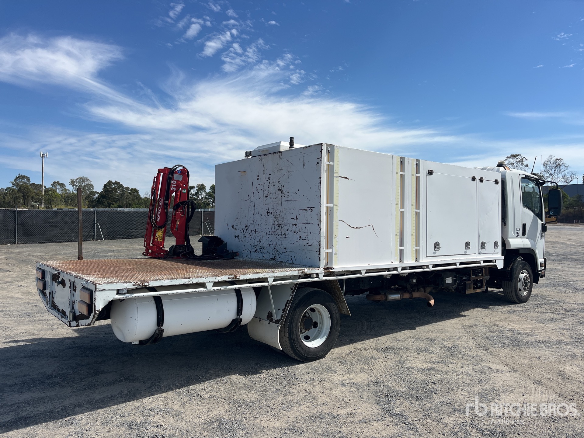 6 Cylinder Diesel 235 hp Engine, 15109 Engine hrs, Exhaust Brake, Automatic Transmission, 235/75R17.5, Spring Suspension, 5150 mm Wheelbase, Self Bunded Storage Tank 4000 mm Body, 3600 L Diesel Tank, ( 3 ) 340 L Oil Tanks, ( 1 ) 340 L Waste Oil Tank, ( 6 ) Hose Reels, Grease Barrel, Oil Recovery System, SMAC Diesel Air Compressor, Air Hose Reel, 2016 Ferrari 310 Rear Mounted 800 kg Capacity Hydraulic Crane, Alloy Petrol Tank w/ Hose Reel, 2250 mm Steel Tray, GVM 11 t