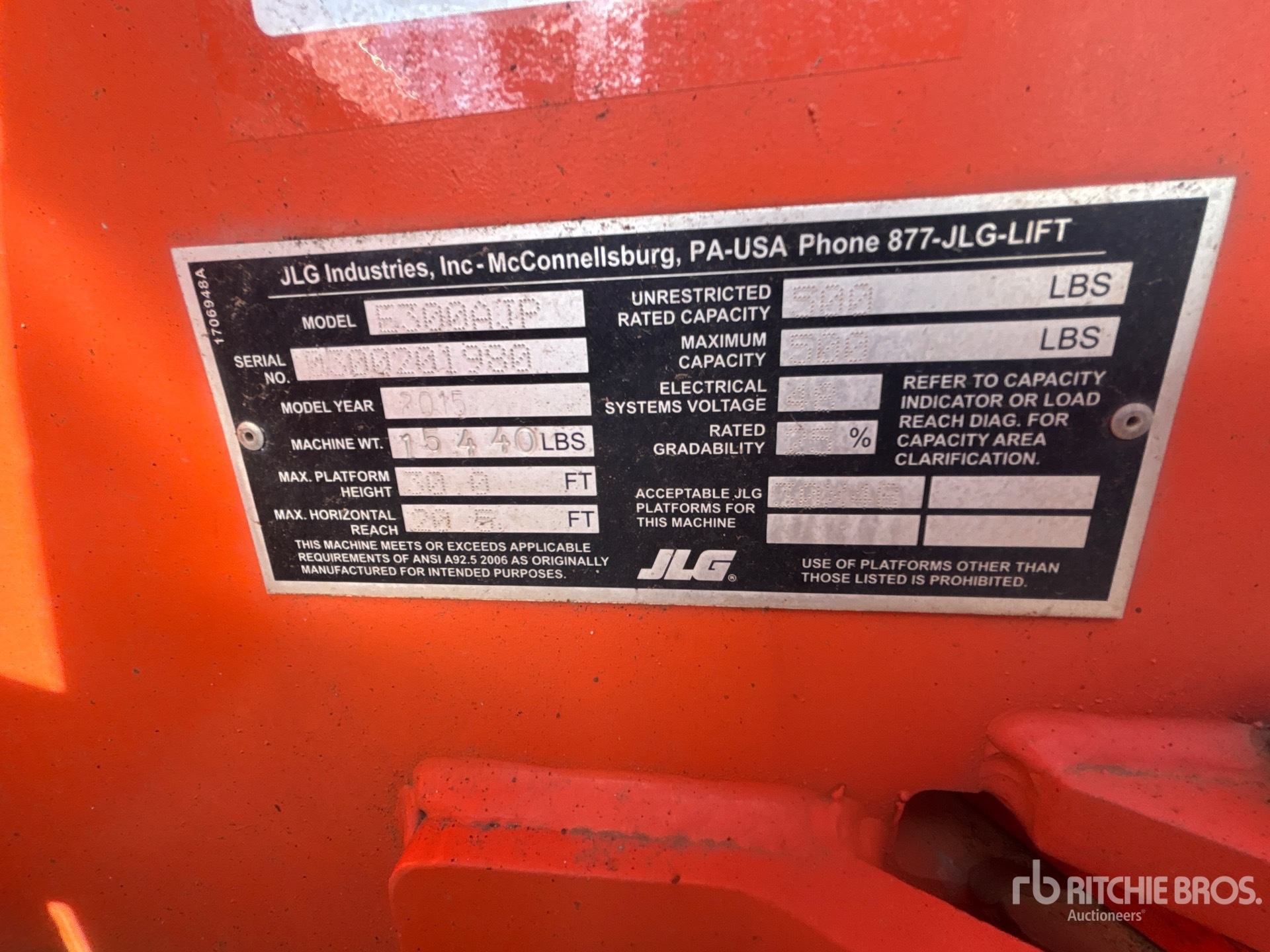 30 ft Max Platform Height, 500 lb Max Weight Capacity, Jib, Power to Platform, 25x7-12 Non-Marking Tires