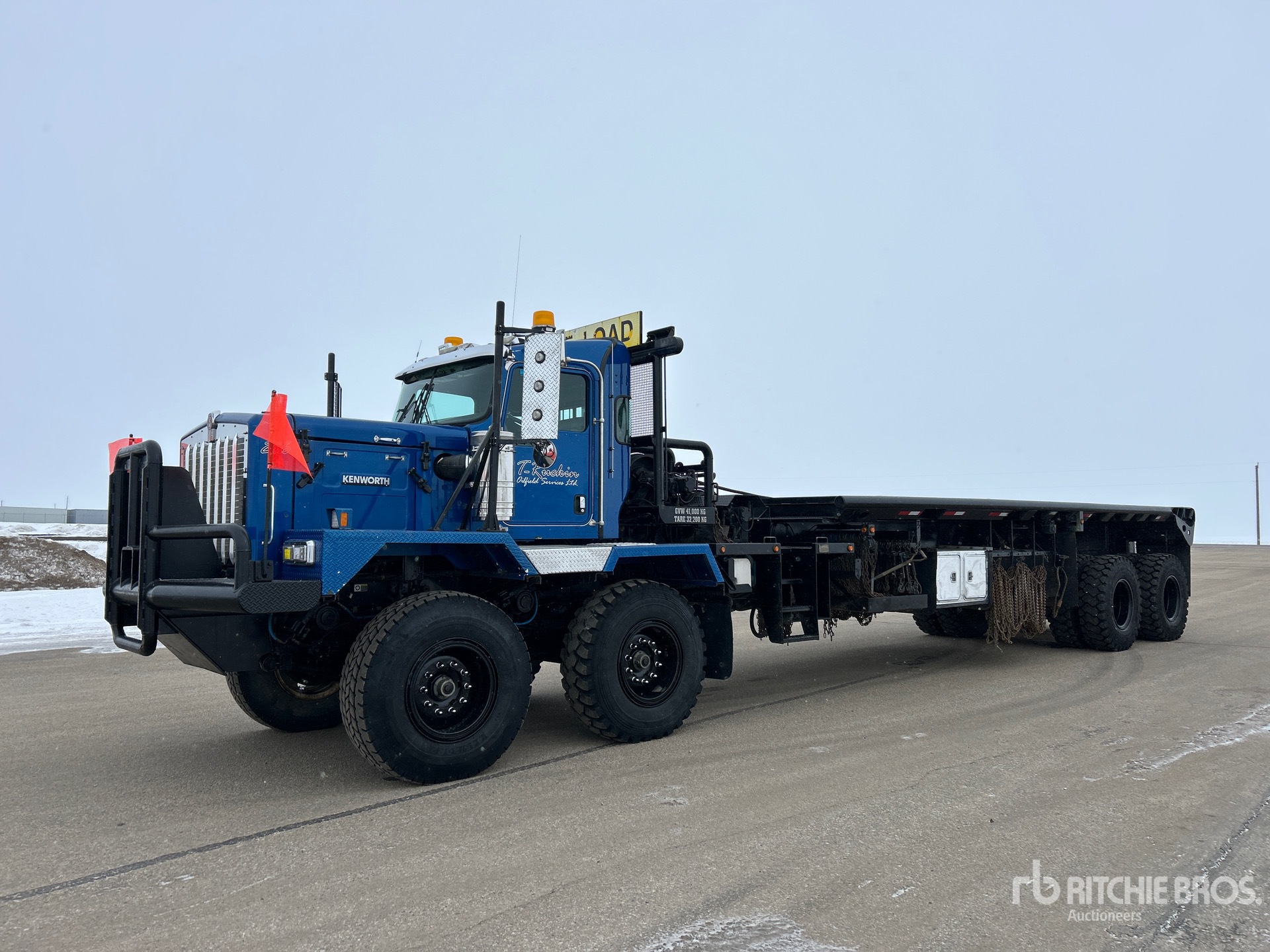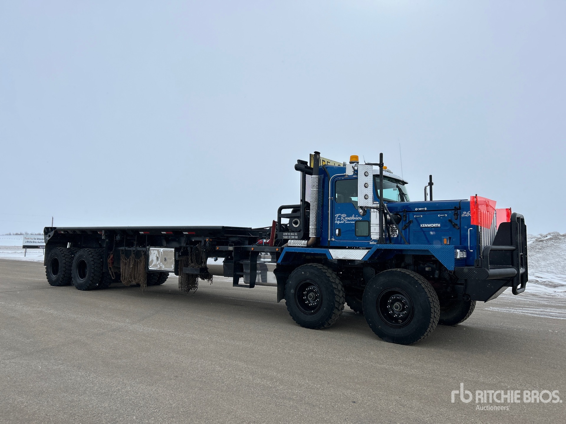 Cummins ISX15 15 L Diesel 550 hp Engine, Engine Coolant Heater, Positive Air Shutoff, 18069 Engine hrs, Engine Brake, Eaton Fuller RTLO-18918B 18-Speed Manual Transmission, 4-Speed Auxiliary Transmission, Double Differential Locks, 40000 lb Front Axle, 44906 kg Rears, Kessler D91 100000 lb Planetary Drive Axles, 9.99:1 Axle Ratio, 62084 lb GVWR, 445/80/25 Front Tires, 14.00R25 Rear Tires, Dual Steering Boxes, Double Frame, Rubber over Walking Beam Suspension, 430 in Wheelbase, PTO, 30 ft x 120 in Bed, Center Roll, Live Roll, Tulsa RN130 Hydraulic Winch, Tulsa RN65 Winch, Flip-Over 5th-Wheel, Rearview Camera, Complete-Dispersal-for-T-Ruckin-Oilfield-Services-Ltd