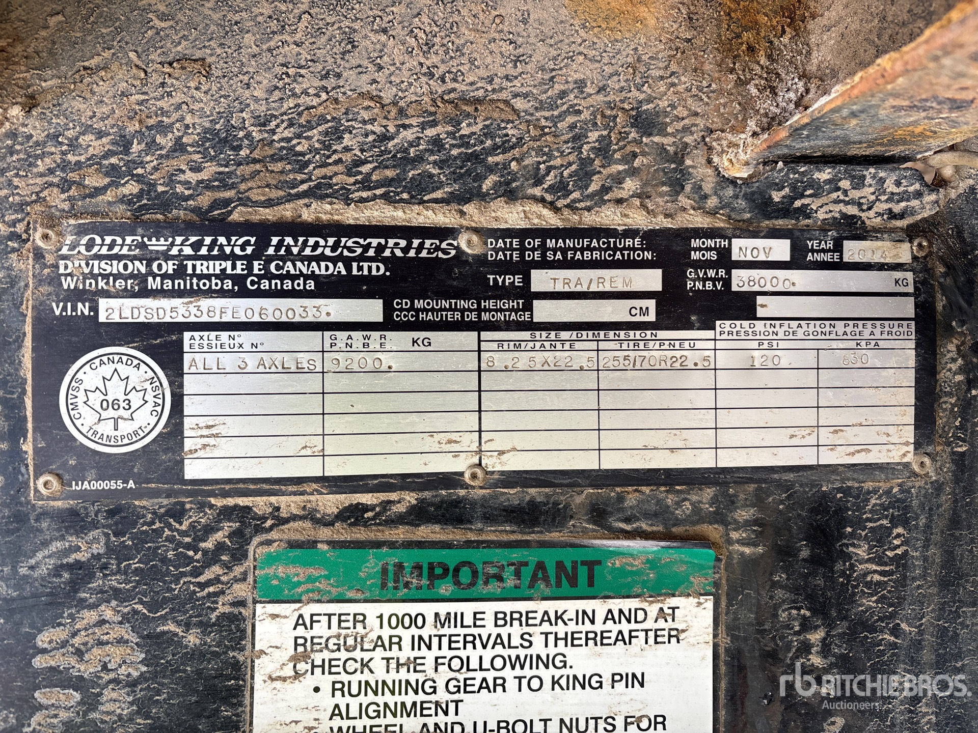 The detailed equipment information is limited in scope, and Ritchie Bros. Auctioneers has not inspected any aspects or components of the equipment other than those expressly set forth herein. Unless expressly stated, we make no representations or warranties, express or implied, concerning the equipment or its components, including without limitation any representations or warranties concerning functionality, conformity or compliance with any safety standard or requirement of any applicable authority or regulatory body, fitness for any particular purpose, or merchantability. You are strongly advised to perform your own detailed inspection of the equipment prior to bidding.